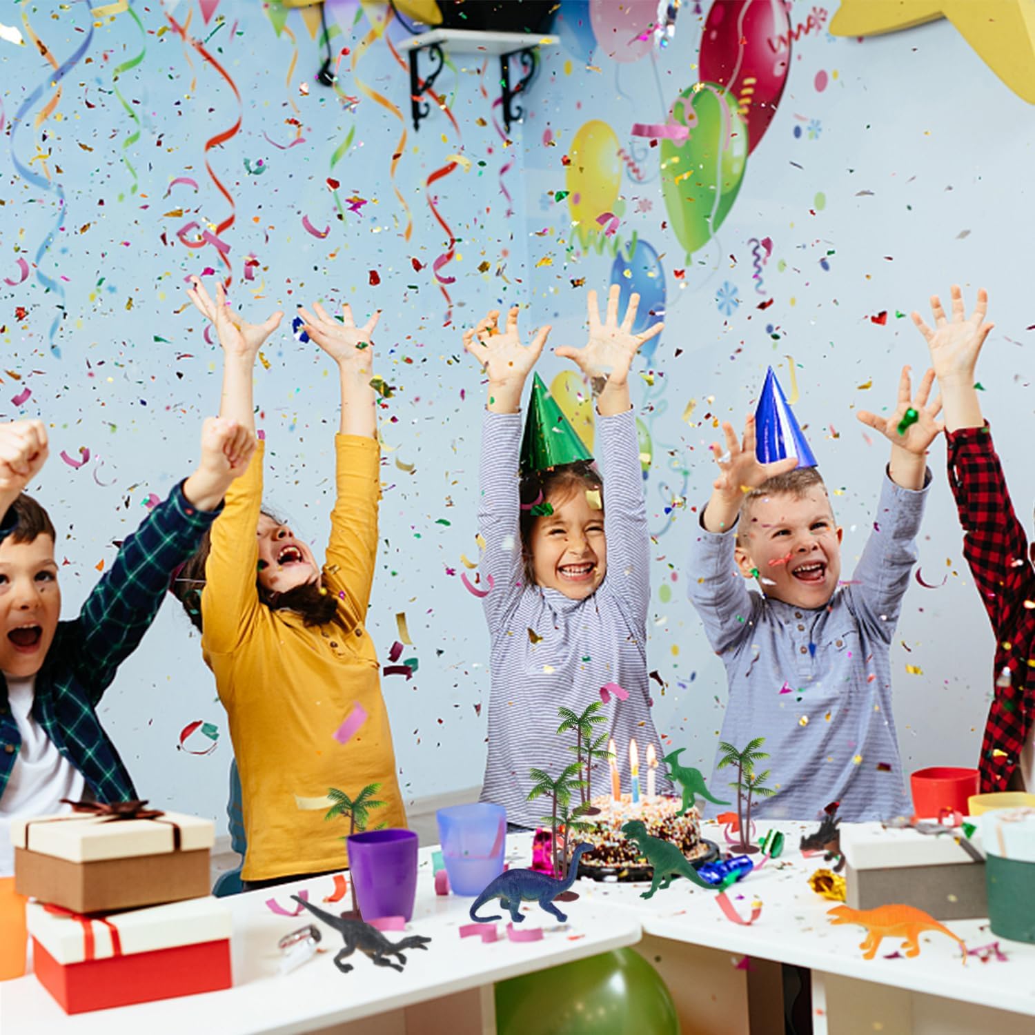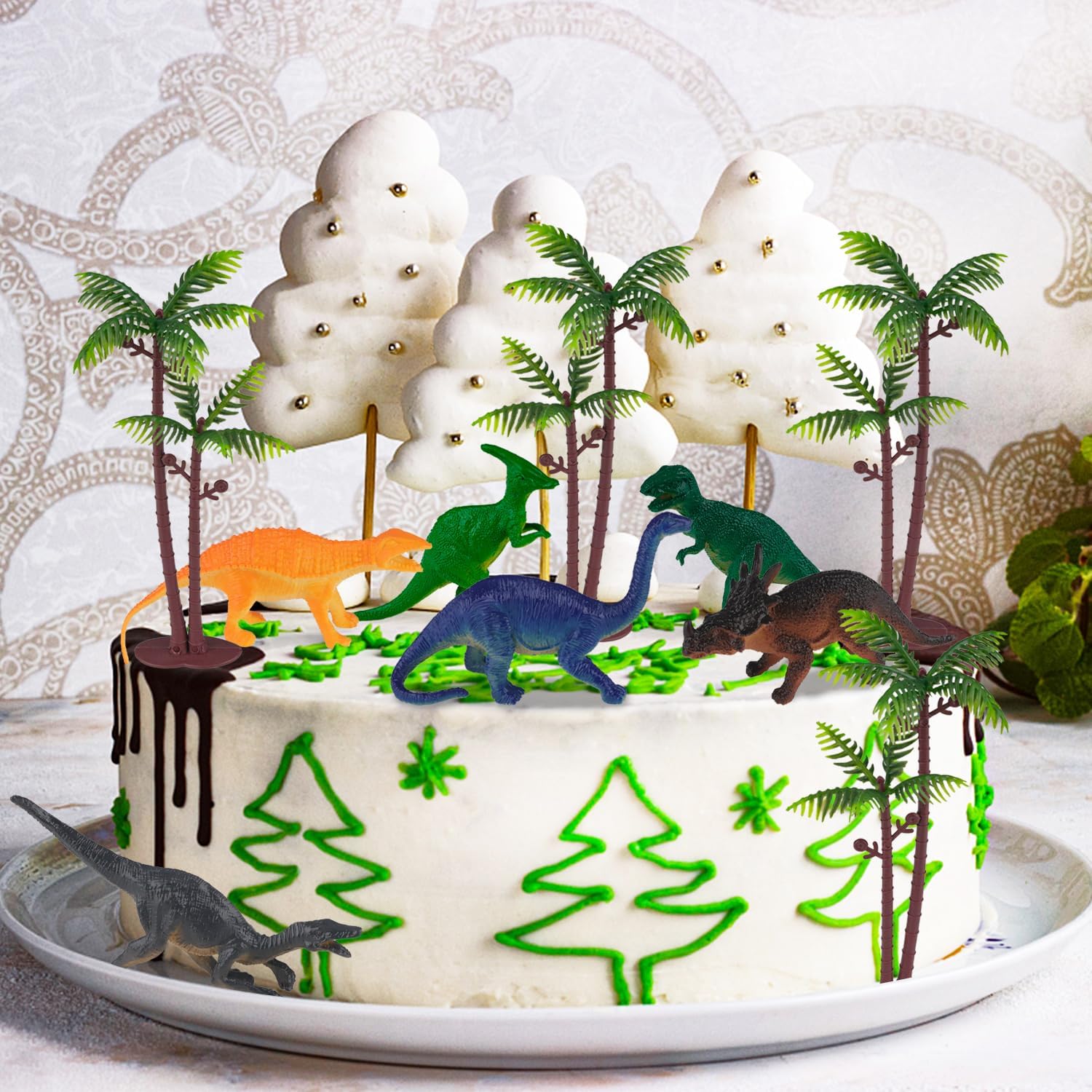 Decorazione torta dinosauro: 4 alberi, 6 mini dinosauri. Metti in mostra la tua torta con il nostro topper per torta di compleanno. Questo cake topper a tema giungla può stimolare l'immaginazione dei bambini e i tuoi bambini li adoreranno. Alta qualità: i toppers per torta di compleanno dei nostri bambini sono realizzati in plastica di alta qualità, rispettosi dell'ambiente, sicuri e non tossici, sono di colore brillante, molto adatti per il compleanno dei bambini. Può essere riutilizzato dopo la pulizia e può anche essere usato come un giocattolo di dinosauro, anch'esso molto apprezzato dai bambini. Festa a tema dinosauri della foresta: le decorazioni della nostra torta di compleanno per bambini si basano sul tema dei dinosauri più popolare al momento, i toppers per torta dei nostri bambini danno vita a personaggi di dinosauri misteriosi e sognanti, accorciano la distanza tra bambini e personaggi di dinosauri, rendono la nostra decorazione di torta di dinosauri profondamente amata dai bambini. Facile da usare: la decorazione della torta di buon compleanno è molto facile da usare, tu e i tuoi bambini potete inserire la decorazione della torta di buon compleanno direttamente sulle torte e sui dessert per decorarli secondo le vostre preferenze, in modo da poter non solo decorare un'atmosfera di festa unica, ma anche aumentare l'interazione tra te e i tuoi bambini. Ampi usi: la decorazione della torta dei dinosauri è adatta a tutte le tue occasioni preferite come i dinosauri. Sono perfetti per feste di compleanno, feste di dinosauri, ecc. Questo set di figurine di dinosauri è un regalo ideale per bambini e amanti dei dinosauri, adatto per feste di compleanno, regali di Natale o premi in classe.