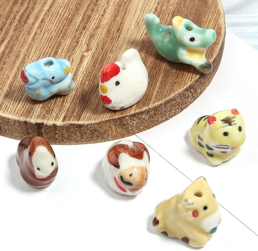 Perline sfuse in ceramica a forma di animale con fori per un facile utilizzo, dimensioni delle perline: 13x20 mm, 16x14 mm, 20x17 mm, ecc., diametro del foro: circa 2 mm, 10 pezzi/confezione Queste perle di porcellana dipinte a mano sono progettate a forma di animali, delicate e carine, con colori intensi, rendendo i tuoi gioielli fai da te più giocosi e unici Queste perline di ceramica a forma di animale possono essere abbinate a perline di cristallo, perline con lettere, perline o altre perline distanziatrici, oppure utilizzate come decorazioni pendenti per creare bellissimi braccialetti Queste perle a forma di animale sono realizzate in ceramica con una superficie liscia e lucida, non facili da rompere o sbiadire, comode da indossare e possono essere utilizzate a lungo Queste perline sfuse in ceramica smaltata sono versatili e perfette per realizzare braccialetti di perline, collane, orecchini, ciondoli, portachiavi, creazione di gioielli e vari lavori artigianali fai da te