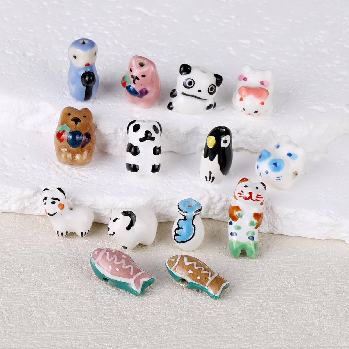 Perline sfuse in ceramica a forma di animale con fori per infilare per un facile utilizzo, dimensioni delle perline: 14x17 mm, 16x18 mm, 12x26 mm, ecc., diametro del foro: circa 2 mm, 10 pezzi/confezione Queste perle di porcellana dipinte a mano sono progettate a forma di animali, delicate e carine, con colori intensi, rendendo i tuoi gioielli fai da te più giocosi e unici Queste perline di ceramica a forma di animale possono essere abbinate a perline di cristallo, perline con lettere, perline o altre perline distanziatrici, oppure utilizzate come decorazioni pendenti per creare bellissimi braccialetti Queste perle a forma di animale sono realizzate in ceramica con una superficie liscia e lucida, non facili da rompere o sbiadire, comode da indossare e possono essere utilizzate a lungo Queste perline sfuse in ceramica smaltata sono versatili e perfette per realizzare braccialetti di perline, collane, orecchini, ciondoli, portachiavi, creazione di gioielli e vari lavori artigianali fai da te