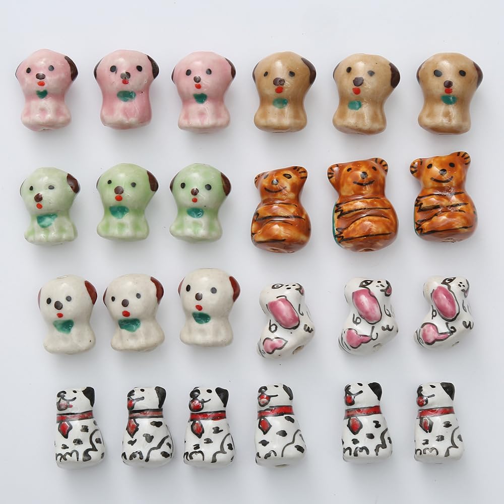 Perline sfuse in ceramica a forma di animale con fori per infilare per un facile utilizzo, dimensioni delle perline: 13x19 mm, 15x18 mm, 15x16 mm, ecc., diametro del foro: circa 2 mm, 10 pezzi/confezione Queste perle di porcellana dipinte a mano sono progettate a forma di animali, delicate e carine, con colori intensi, rendendo i tuoi gioielli fai da te più giocosi e unici Queste perline di ceramica a forma di animale possono essere abbinate a perline di cristallo, perline con lettere, perline o altre perline distanziatrici, oppure utilizzate come decorazioni pendenti per creare bellissimi braccialetti Queste perle a forma di animale sono realizzate in ceramica con una superficie liscia e lucida, non facili da rompere o sbiadire, comode da indossare e possono essere utilizzate a lungo Queste perline sfuse in ceramica smaltata sono versatili e perfette per realizzare braccialetti di perline, collane, orecchini, ciondoli, portachiavi, creazione di gioielli e vari lavori artigianali fai da te
