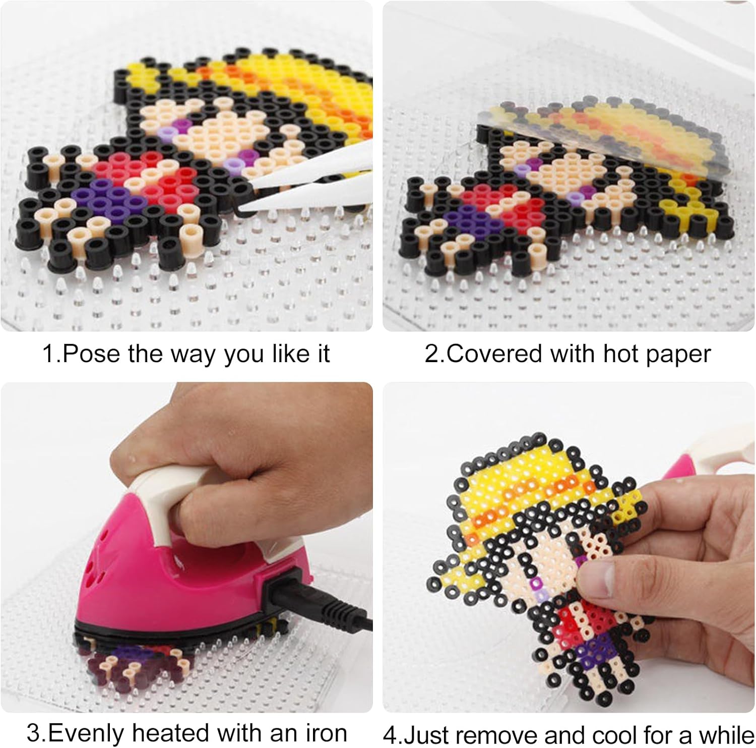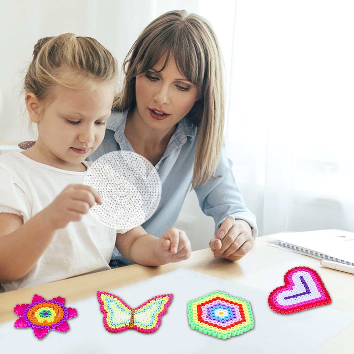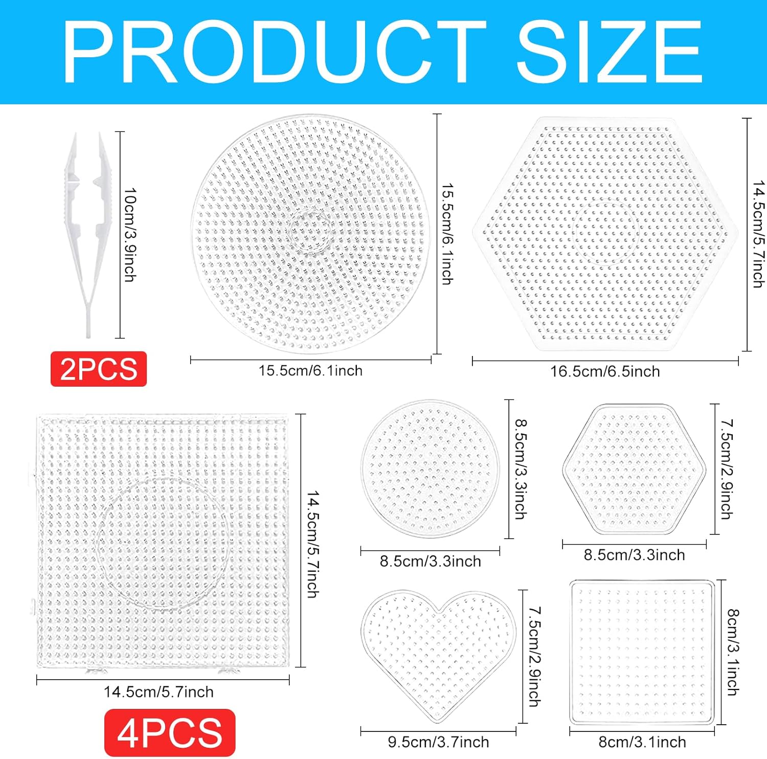 Piastre da stirare su perline da 10 pezzi, set di piastre da stirare su perline, modelli grandi da stirare su perline, puzzle fai da te con forme chiare con 2 clip bianche Perlina artigianale Prodotto per ufficio
