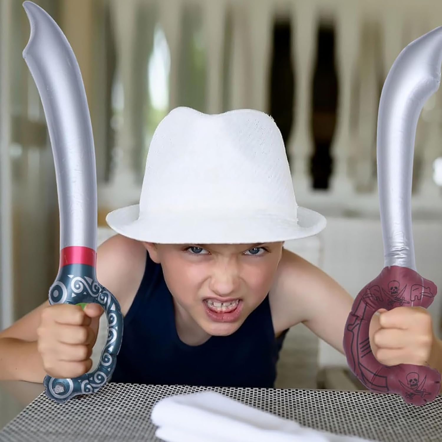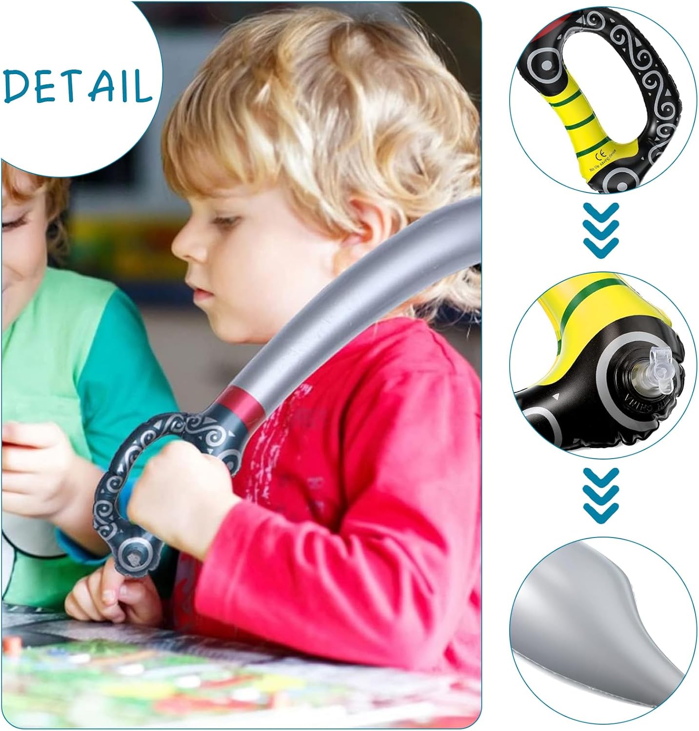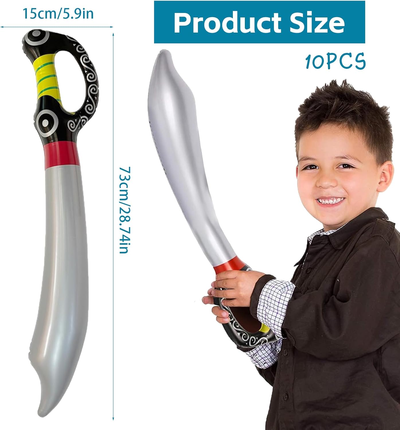 Riceverai: Riceverai 11 pezzi di spada giocattolo come mostrato nell'immagine. Il numero di spada è sufficiente per soddisfare le tue esigenze quotidiane di gioco e decorazione per feste. Ha solo bisogno di un semplice gonfiaggio per diventare un spade giocattolo. Il metodo di utilizzo è semplice e il pirati spade gonfiato non è facile da causare lesioni accidentali durante il gioco Materiali di Alta Qualità: Pirata spade è realizzato in materiale PVC di alta qualità, impermeabile e durevole, splendidamente stampato e non facile da rompere o deformare. Il gonfiabile per bambini è leggero e robusto e puoi usare il armi giocattolo per molto tempo. La struttura gonfiabile del giocattolo evita l'uso di parti dure, assicurando che non causerà alcun danno all'utente durante l'uso Forma di Spada Fantastica: L'aspetto di spada giocattolo è fantastico e individuale, spade giocattolo non può essere utilizzato solo come oggetti di scena o decorazioni. Spada giocattolo può portare un fantastico effetto decorativo alla tua festa, rendendo la tua festa interessante e attraente. Spada giocattolo può regalarti un sacco di divertimento e lasciare una profonda impressione su di loro Riutilizzabile: Spade giocattolo è dotato di una valvola di gonfiaggio, che ti consente di gonfiarlo e sgonfiarlo facilmente. Dopo aver finito di usare spade giocattolo , puoi sgonfiare spade giocattolo e può essere piegato per riporlo, il che è molto comodo e non occuperà spazio. Il vero e vivido spade giocattolo ti fornirà ricordi interessanti e indimenticabili Ampia Applicazione: Spada giocattolo è adatto per feste a tema di gioco di ruolo, feste a tema pirata, feste di compleanno, feste di laurea, feste estive in piscina, ecc., Spada giocattolo è il giocattolo perfetto per aggiungere eccitazione e divertimento al tempo di gioco di tuo figlio, i bambini possono avere emozionanti competizioni di duello alla festa e provare il divertimento di oscillare la spada