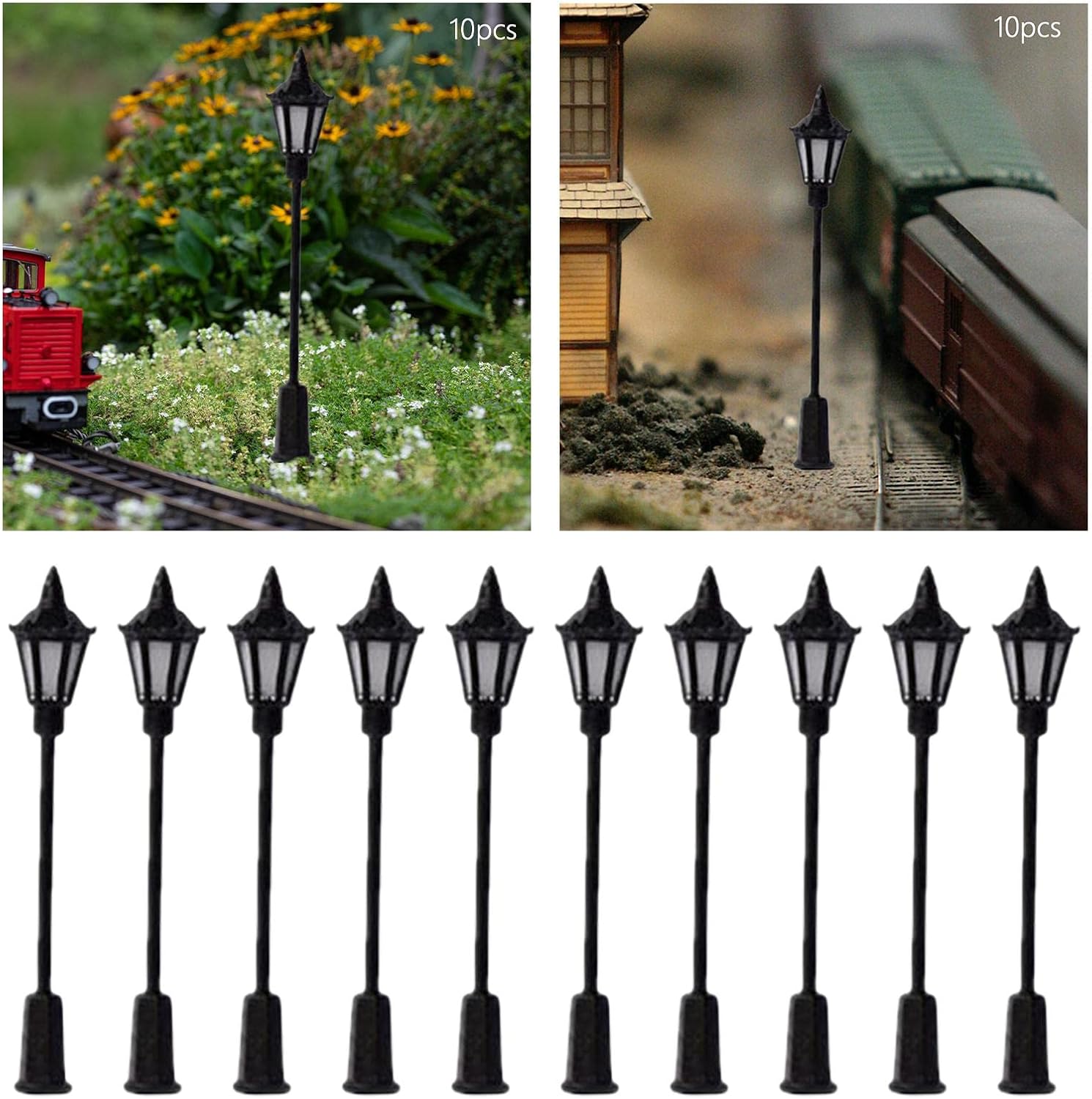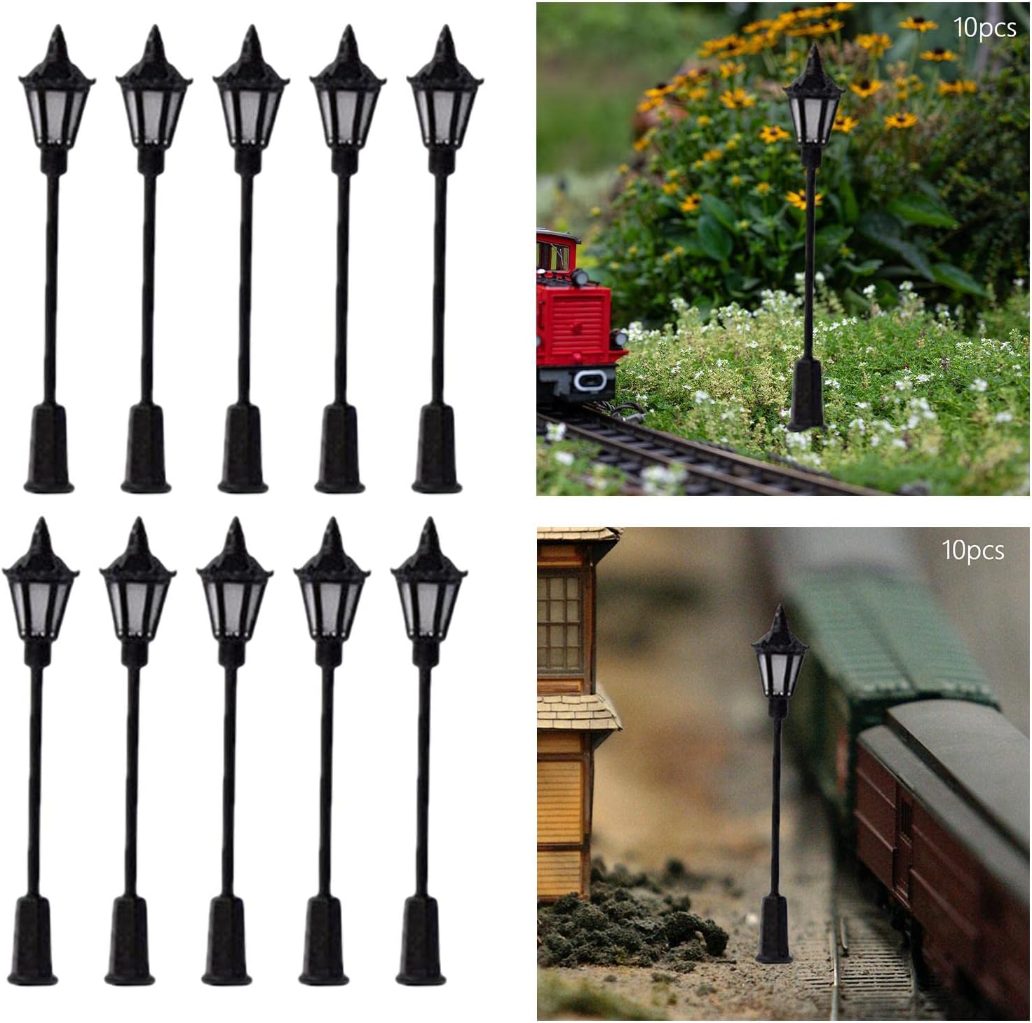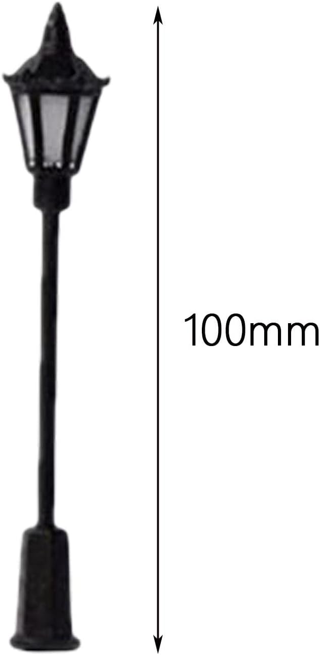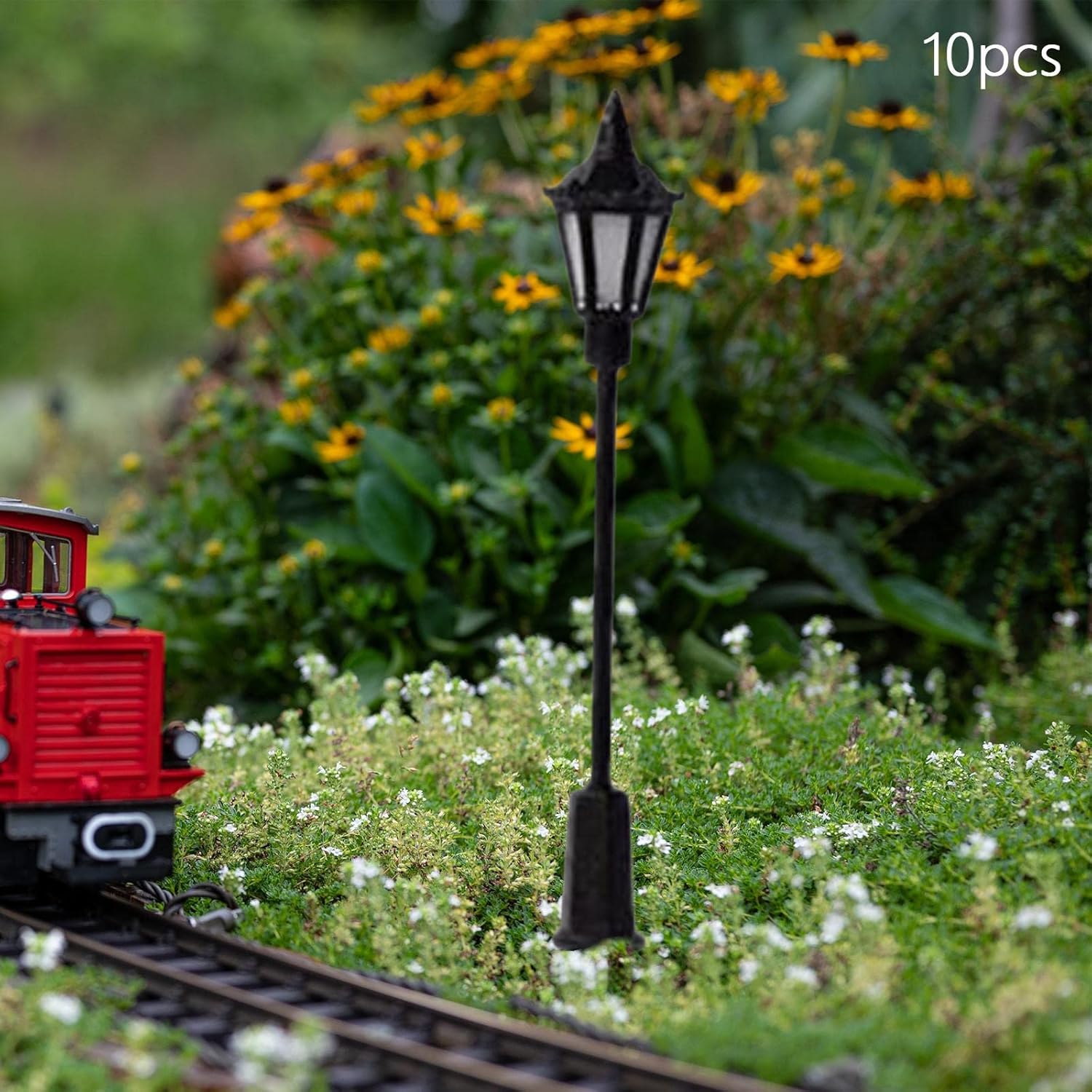 Materiale: realizzato in materiale di alta qualità, non facile da danneggiare, resistente Nota: è necessario collegare l'alimentazione a 6 V, il lampione in miniatura si accenderà Decorazione: questa lampada da giardino è molto adatta per l'abbellimento in miniatura, la decorazione della tavola di sabbia Lampioni stradali micro paesaggistici: lampioni stradali con lampada per treni ferroviari in scala da 10 pezzi Regalo: è il miglior regalo per gli amanti dei modelli in miniatura o per gli amanti del micro paesaggio