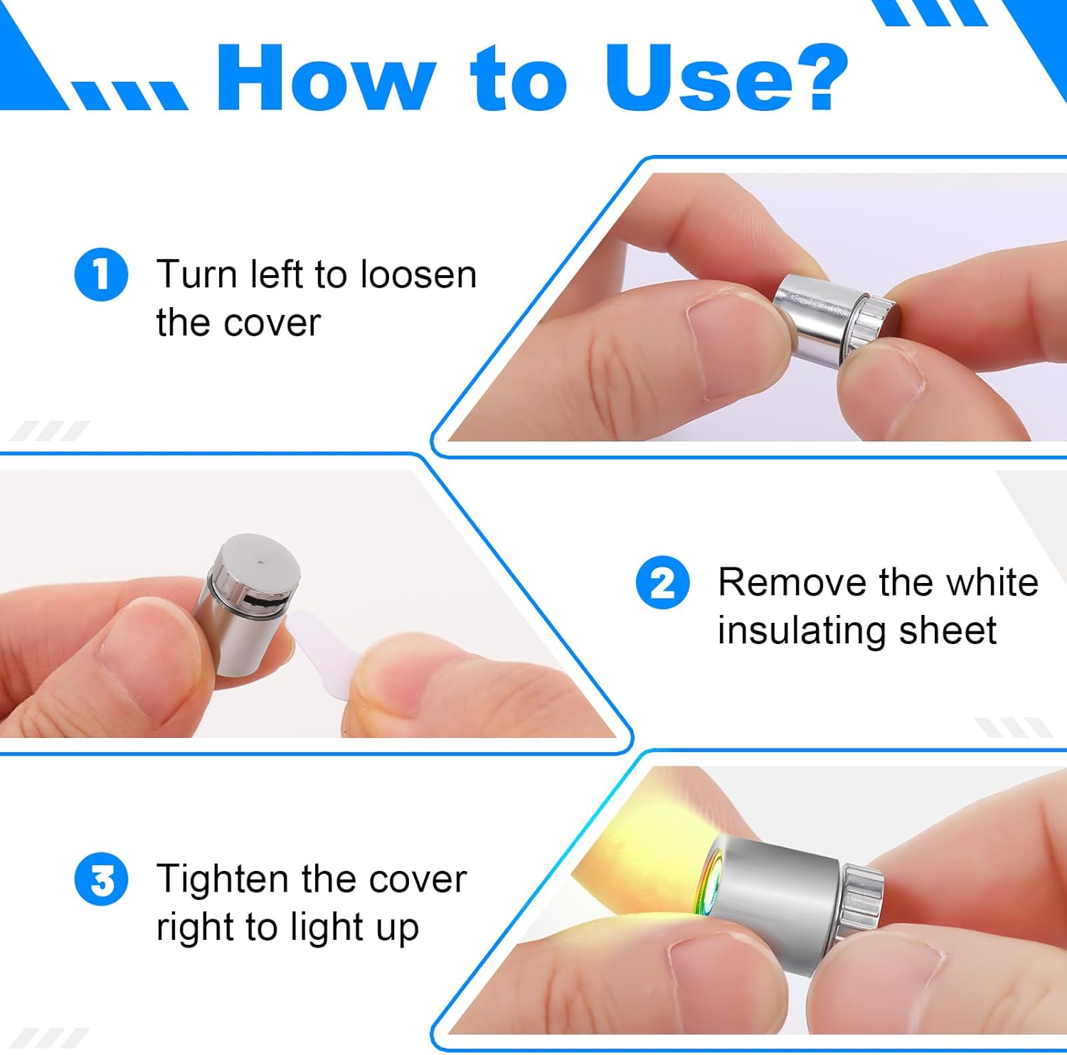 💡【Mini luci】Questo set include 10 mini luci LED (batterie incluse) e 10 adesivi rotondi (diametro 1 cm). Le piccole luci LED lampeggiano lentamente in diversi colori, emettendo un bagliore misterioso e sognante che illumina istantaneamente l'atmosfera. ✨【Compatto e leggero】La luce misura circa 1,5 x 1 cm, il che la rende leggera e compatta. L'elegante involucro argentato è versatile e si integra perfettamente in qualsiasi arredamento, aggiungendo un tocco di eleganza e raffinatezza a qualsiasi ambiente. 💡【Facile da usare】Facile da accendere: ruotare la base, estrarre il pezzo isolante bianco, quindi ruotarlo in senso antiorario per stringerlo e accendere la luce. Per chiudere, è sufficiente reinserire la linguetta. Non sono necessari attrezzi, il che lo rende facile da usare. ✨【Materiali di alta qualità】I materiali di alta qualità sono durevoli e resistenti a crepe e deformazioni. Rimangono in buone condizioni anche dopo un uso ripetuto e garantiscono un'illuminazione duratura dei tuoi oggetti decorativi. 🎉【Usi versatili】Le mini luci a LED non sono adatte solo per case delle bambole, lanterne di carta, palloncini e luci per casette di pan di zenzero, ma possono anche essere utilizzate per decorare stanze, feste, compleanni o altri eventi. Che si tratti di lavori creativi o di creare un'atmosfera, sono facili da applicare.