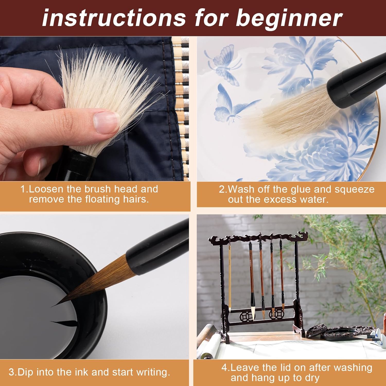 La confezione contiene 10 pennelli per calligrafia cinese e 1 astuccio per pennelli. L'astuccio a pennello aiuta a riporre le penne per la scrittura. 10 pennelli di dimensioni diverse per scritture piccole/medie/grandi. Ottimo per i principianti per imparare la calligrafia. Questo set di pennelli è adatto ai principianti per esercitarsi nel disegno/scrittura, in particolare nell'acquerello, nella calligrafia cinese, negli schizzi e nella pittura a olio. Che siate professionisti o dilettanti, potete controllare questa spazzola molto bene. I pennelli cinesi sono strumenti calligrafici unici e sono ideali sia per uso personale che per i regali.