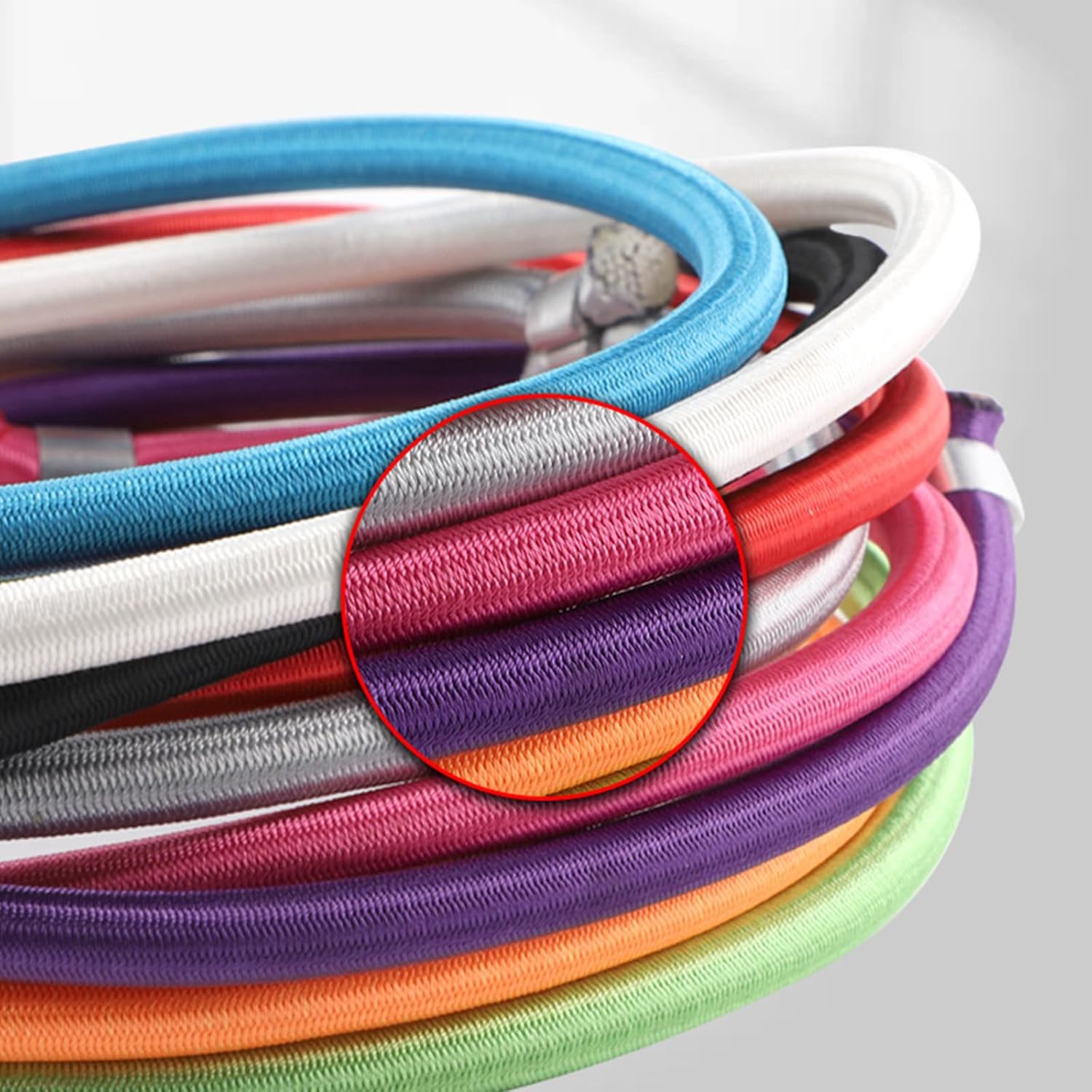 Adatto per la maggior parte dei trampolini, trampolino per interni, trampolino per bambini, trampolino per adulti Realizzato in lattice elastico, design ispessito, elasticità ad alta resistenza e non facile da rompere, durevole e resistente all'usura Facile da usare: rimuovere la corda danneggiata del trampolino Bungee e infilare facilmente il passante Bungee attraverso gli occhielli del telone trampolino Adatto per trampolino palestra. Con cavo elastico, nessun rumore La corda Bungee con un diametro di 8 mm garantisce una sospensione delicata sulle articolazioni, riduce al minimo il rumore e garantisce una maggiore stabilità