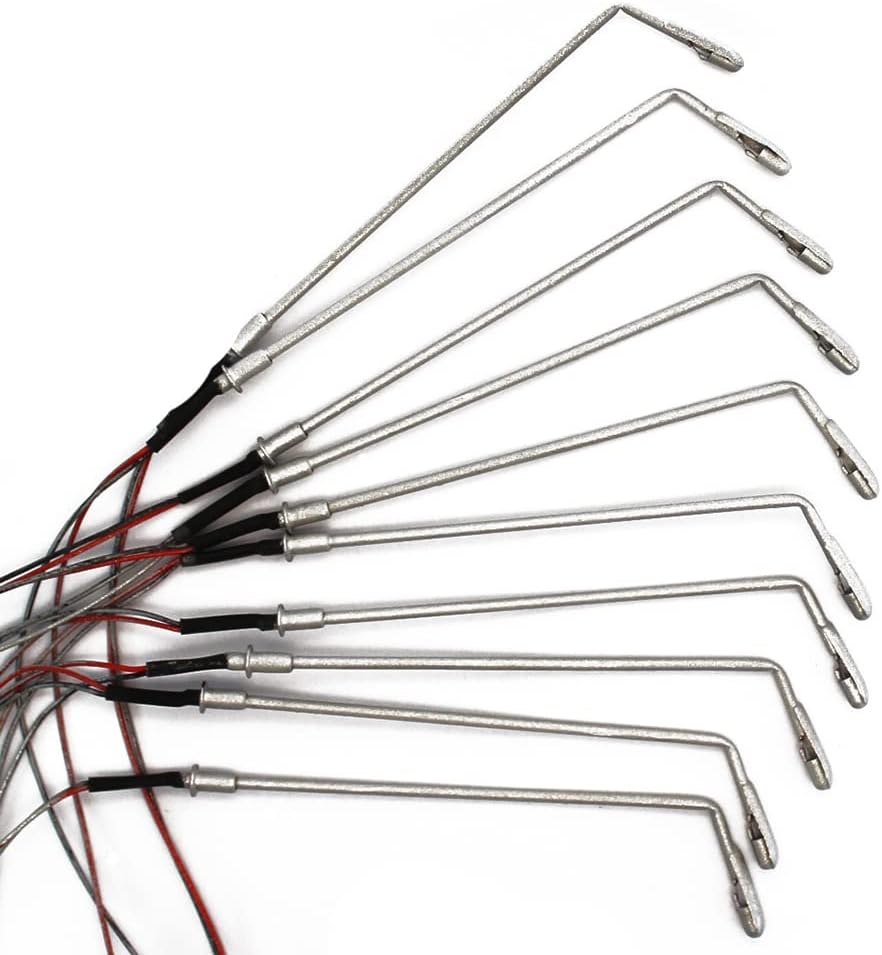 Lampada a frusta LED H0 verniciata argento, adatta per un massimo di 3 volt CC e fornisce una luce bianca fredda. Confezione da 10 luci a frusta a LED per paesaggistica HO