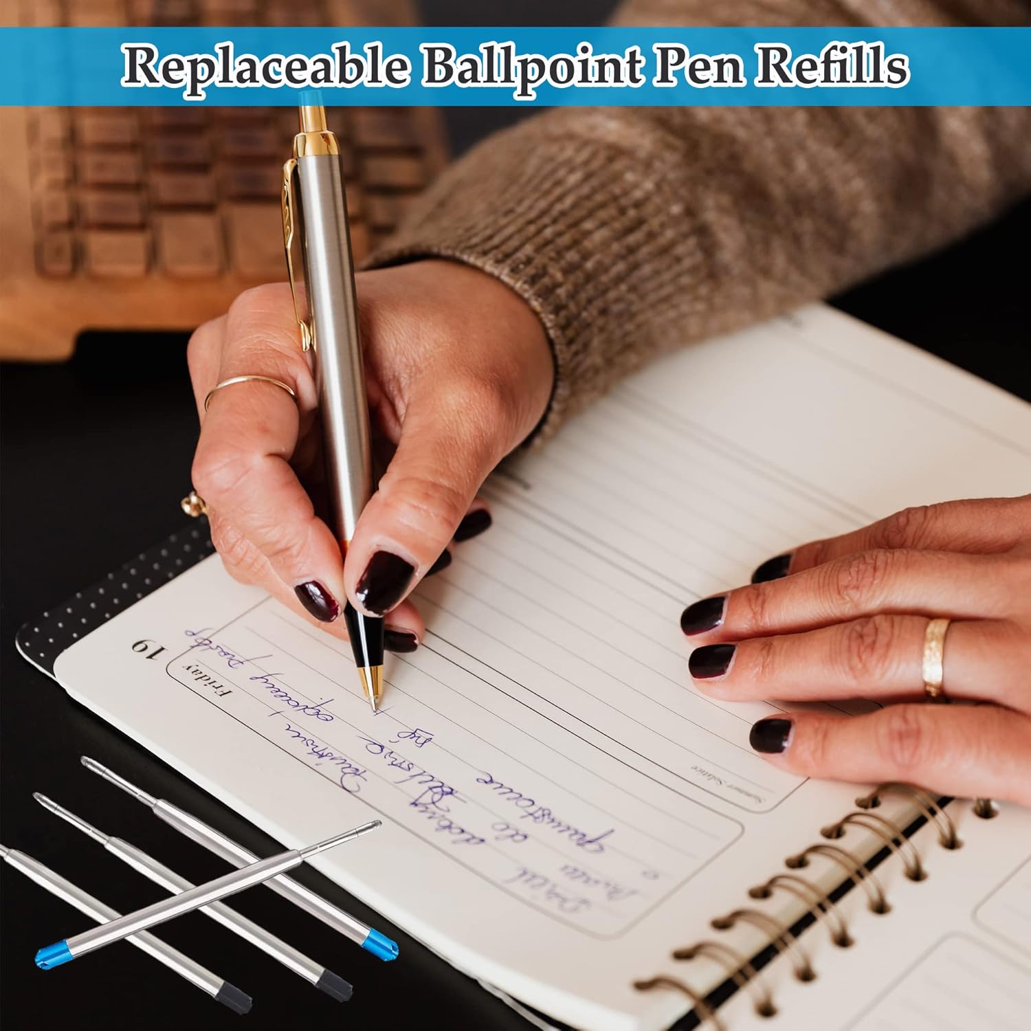 【Il pacchetto contiene】La confezione contiene 5 ricariche a sfera nere / 5 ricariche a sfera blu, ciascuna lunga 9,9 cm, punta centrale da 1,0 mm per una scrittura fluida.