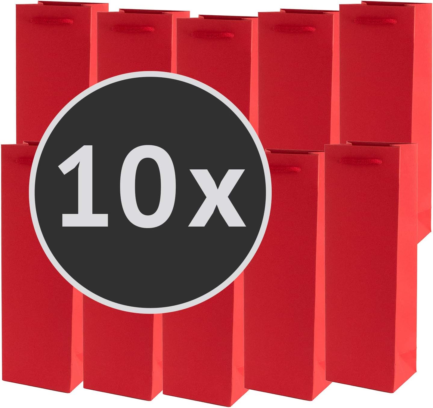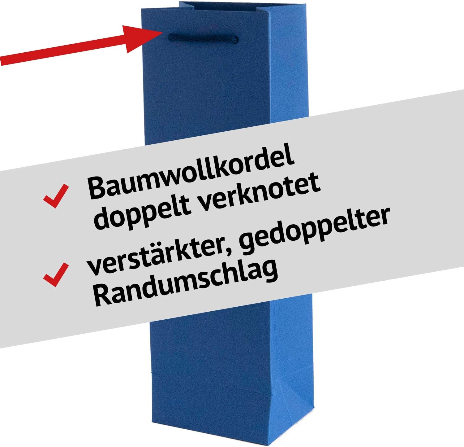 🍇 Eleganti borse per vino di qualità premium con una sensazione leggermente vellutata, realizzate in carta kraft riciclata al 100% ecologica 🍇 Borse per bottiglie fatte a mano con 2 robuste corde di trasporto individuali con 4 nodi in cotone 🍇 La confezione della bottiglia è realizzata in modo eccellente e incollata con cura. 🍇 La borsa per bottiglie ha un fondo in cartone extra incollato per rinforzarla - protegge dalla rottura del contenuto 🍇 Busta rinforzata con doppio bordo con cartone integrato - protegge dai cordoni che vengono strappati 🍇 Borsa per vino per tutte le occasioni regalo come Natale, Pasqua, compleanni, feste 🍇 Bellissima borsa regalo per vino, spumante, champagne, birra, prelibatezze e altri regali 🍇 Dettagli del prodotto Confezione per vino: Dimensioni: (A x L x L): 370 x 120 x 90 mm Peso per sacchetto di vino: 0,059 KG/pezzo Confezione: 10 pezzi Carta: 220 gr. Carta kraft riciclata Made in Germany, lavorazione finale a mano in Italia, consegna secondo la descrizione dell'articolo senza decorazioni