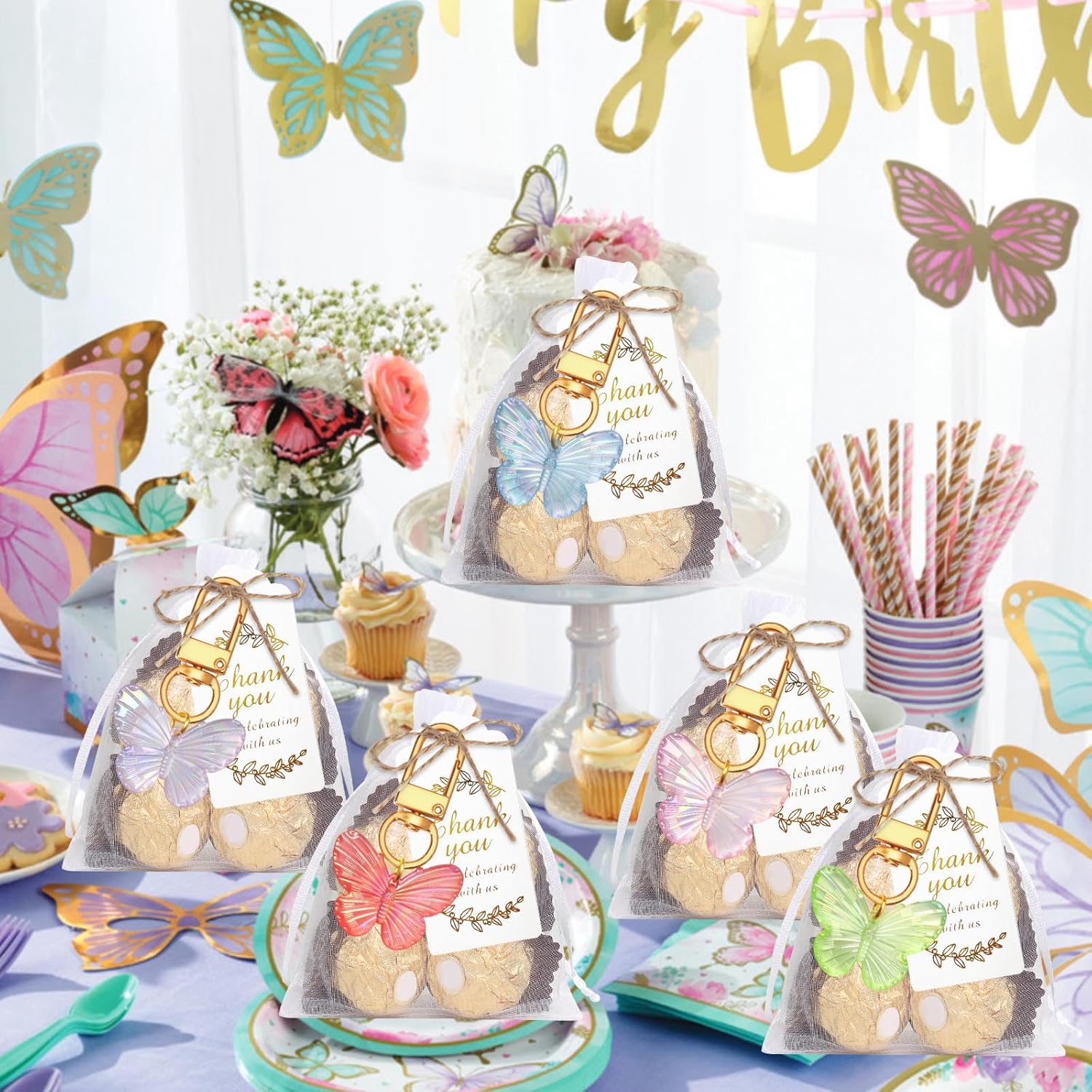 1. Contenuto della confezione: 10 set di bomboniere per feste a farfalla, il pacchetto include portachiavi 10 × farfalla, borsa organza 10 × bianca, tag 10 × grazie, quantità sufficiente in grado di soddisfare le vostre esigenze per diverse occasioni 2. Materiale di qualità: queste decorazioni per feste fatate sono realizzate in materiale plastico di qualità, che lo rende elegante ed elegante, difficile da sbiadire o arrugginire, i tag di ringraziamento sono fatti principalmente di carta artigianale e la borsa di organza è principalmente realizzata in materiale di organza, che sono leggeri e affidabili 3. Design unico: forme adorabili e colori vivaci scintillanti sono così attraenti che tutte le ragazze saranno impressionate e vorranno di più 4. Ampia gamma di usi: questi portachiavi a farfalla colorati sono perfetti per feste di compleanno per ragazze, baby shower, regali di ritorno per feste, forniture per premi in classe, festa per bambini o festa a tema farfalla. Mettili in una borsa regalo come regalo di compleanno, regali di laurea, borsa di Pasqua o ricompensa per i bambini 5. Stimolare la creatività: abbiamo accuratamente abbinato 5 colori diversi, quantità sufficiente per rendere i tuoi amici una sensazione piacevole. Puoi scrivere la tua gratitudine e benedizioni ai tuoi amici e familiari sul retro del biglietto di carta artigianale incluso.
