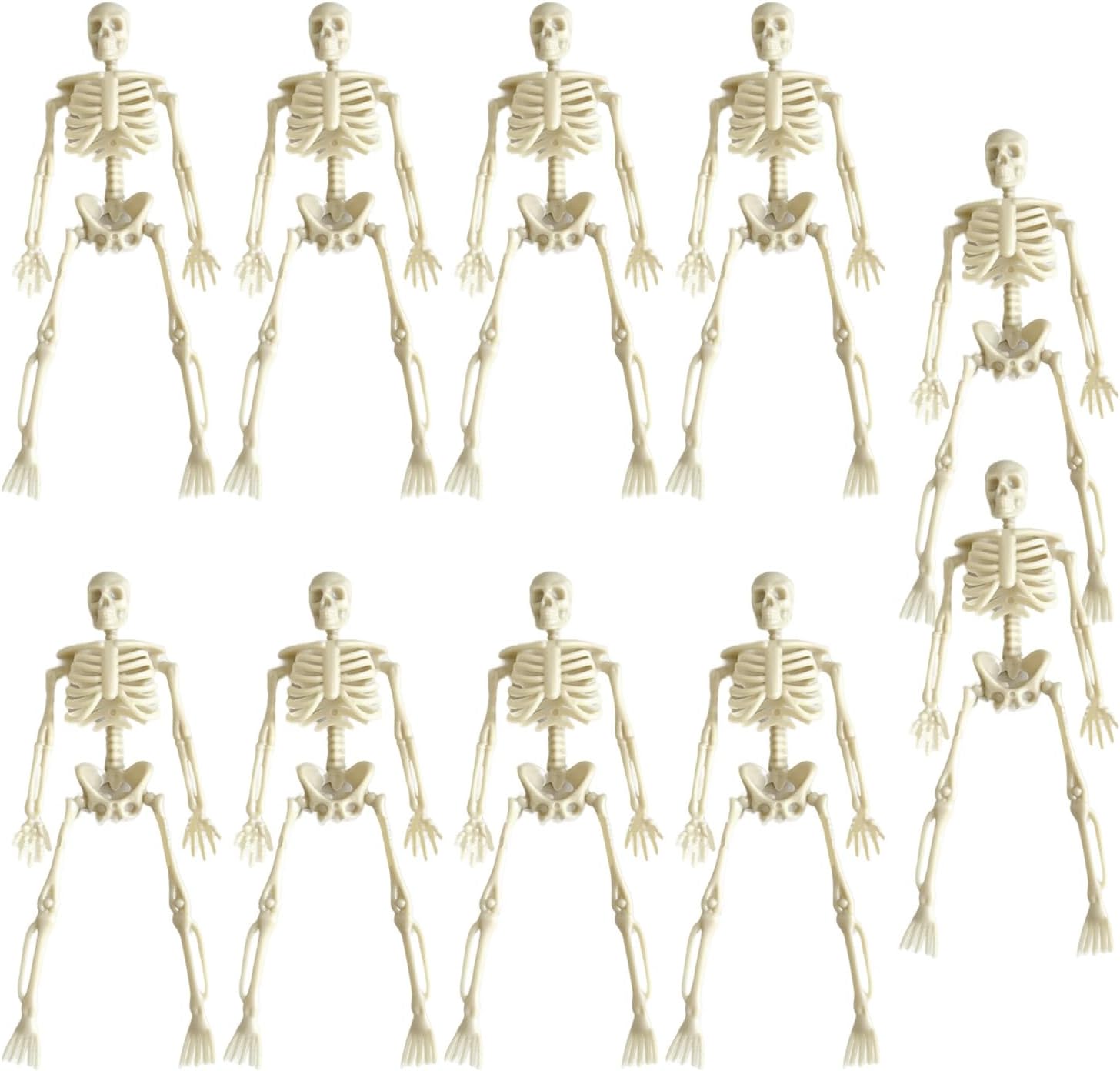 Migliora le tue decorazioni di Halloween con questo set di 10 figurine scheletro dal design complesso, adatte per creare un ambiente inquietante. Ogni scheletro mobile è realizzato in plastomero duro, presenta giunti mobili per pose personalizzabili per migliorare le decorazioni della tua casa infestante. Adatto per gli appassionati di Halloween di tutte le età, queste piccole figure scheletro sono un successo sia con bambini che adulti che cercano di aggiungere un tocco di divertimento spaventoso alla loro celebrazione. Queste decorazioni scheletro possono essere appese o messe strategicamente in casa, ufficio o luoghi di festa per un effetto refrigerante. Oltre ad Halloween, questi scheletri sono ideali per feste delicate o forniture creative per produzioni teatrali, portando un tocco di fascino in ogni occasione.