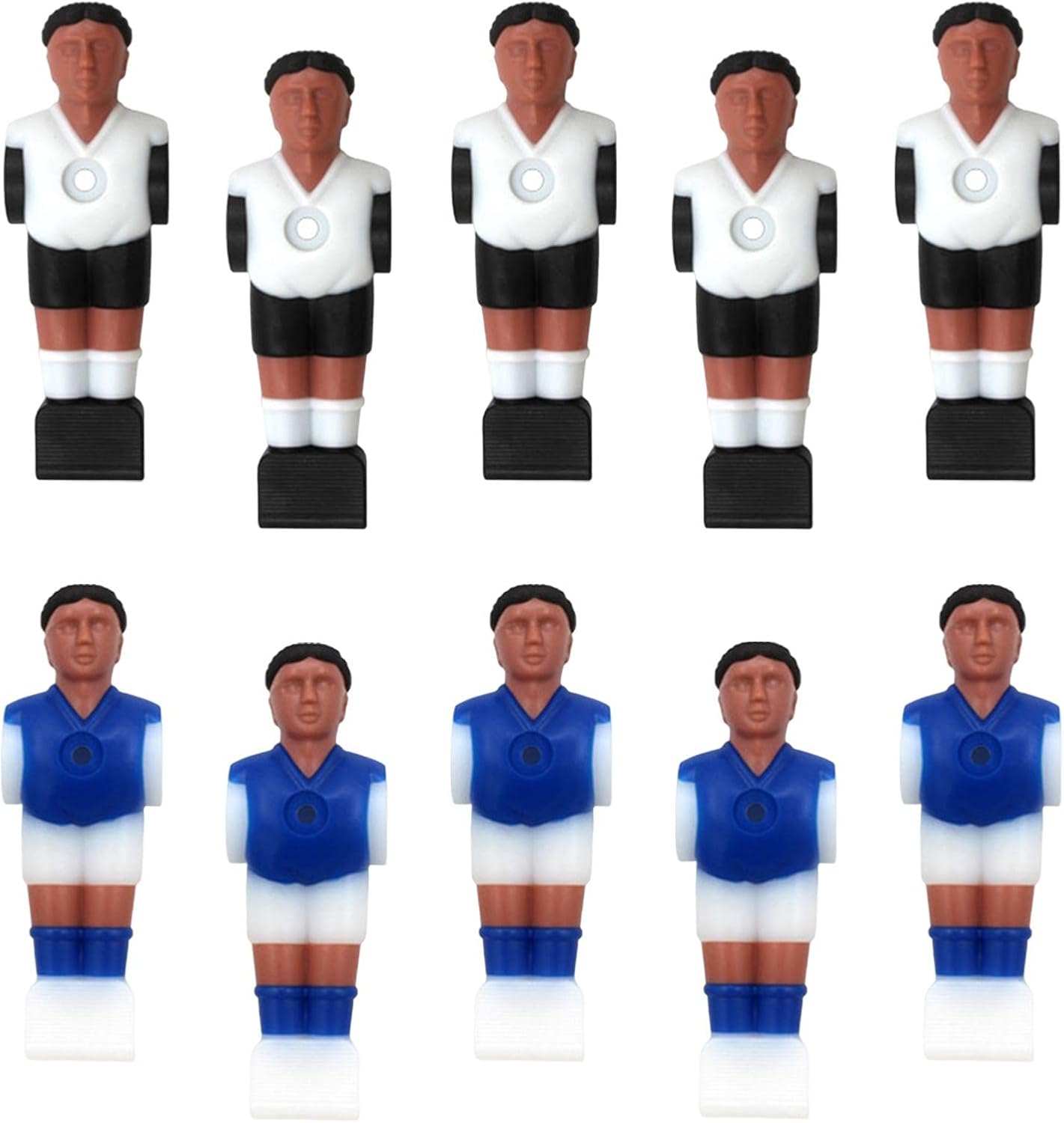 Giochi di calcio: ricambio per giocatori di biliardino, con squisita fattura e design vivido dei personaggi. Questi giocatori di calcio balilla sono ideali per le parti di ricambio degli uomini di calcio in stile torneo. La confezione include: 5 giocatori di calcio balilla bianco e nero e 5 giocatori di calcio balilla bianco e blu. Regalo perfetto per giocatori di calcio o amanti del calcio. Materiale durevole: i giocatori di calcio balilla sono realizzati in resina di alta qualità, pratico e di lunga durata. Dimensioni: altezza 11 cm; larghezza 3,7 cm, giocatore di calcio balilla di piccole dimensioni, portatile e leggero, facile da usare. Adatto per: il calciatore balilla è applicabile al biliardino con aste standard per biliardino. Ottimi accessori per giochi di calcio balilla.