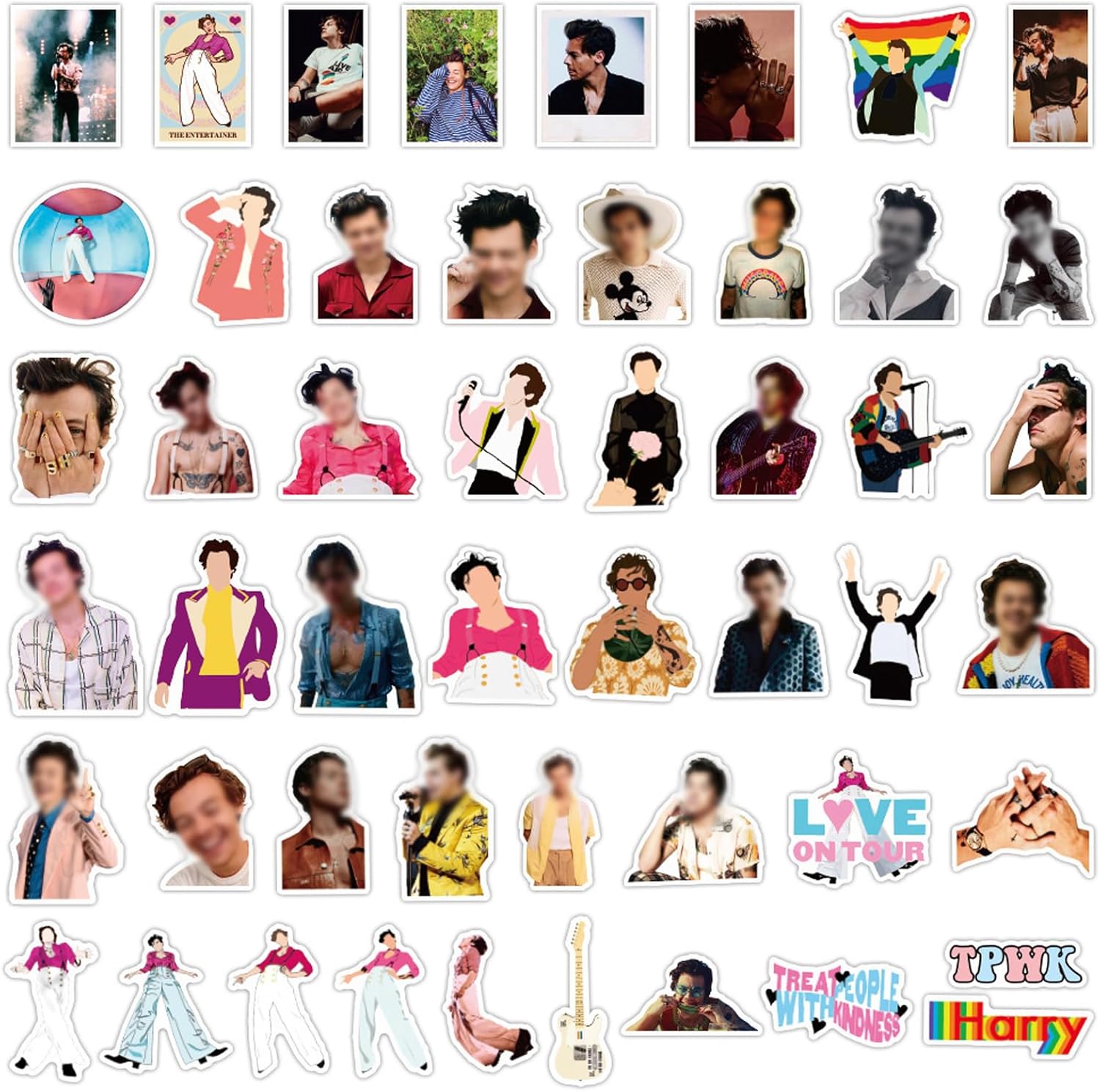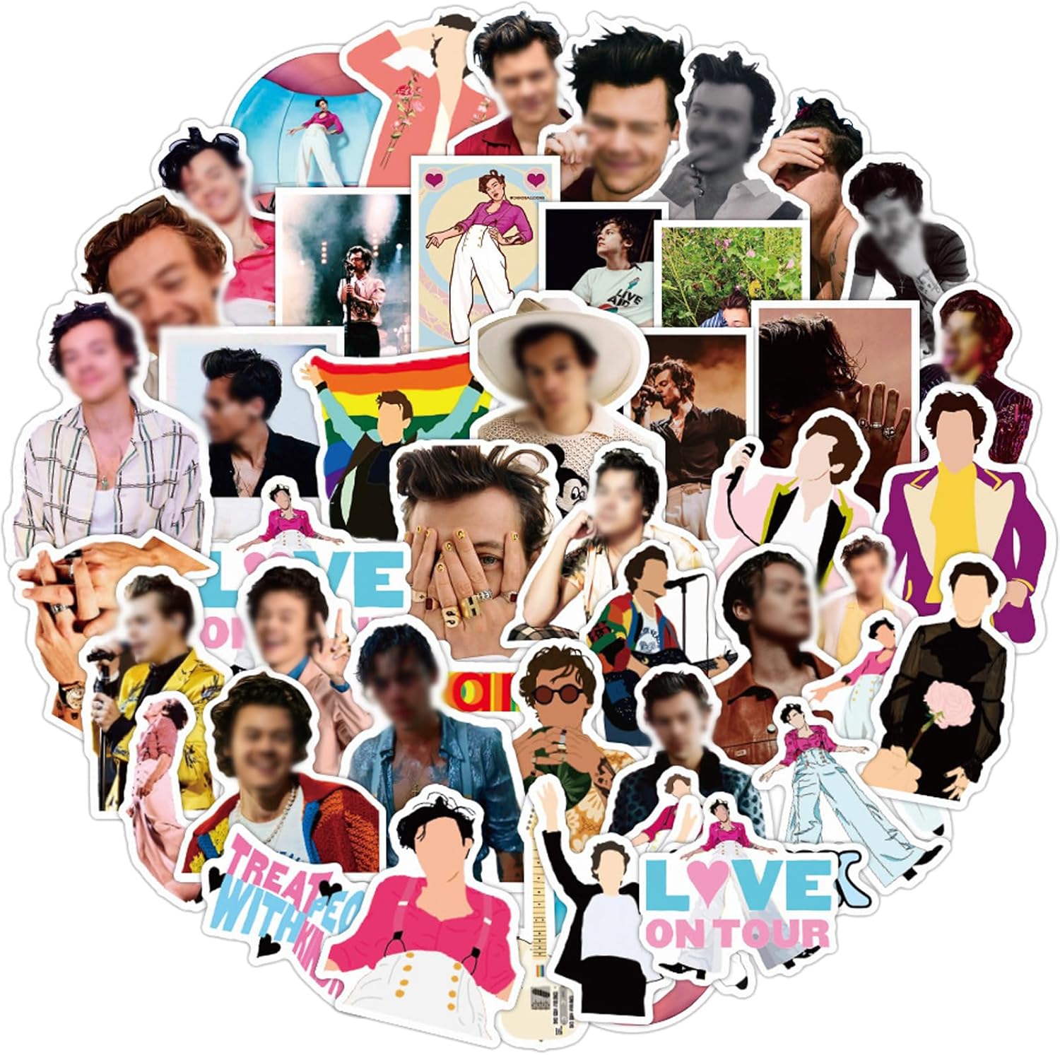 【IL FAVORE DEI FAN DI Harry Styles】Questa serie di adesivi, inclusi 100 pezzi, è stata progettata appositamente per Harry Styles. Ciò che ti sorprende è che non troverai mai due adesivi identici in una confezione! 【ALTA QUALITÀ】 Tutti i nostri adesivi per laptop sono realizzati in PVC di alta qualità. È impermeabile e resistente al sole. Il colore difficilmente sbiadisce, devi solo usare la tua immaginazione e lavorare con i nostri adesivi! 【REGALO A SORPRESA】 La nostra gamma di adesivi è la scelta giusta quando scegli un regalo per i tuoi amici, bambini. Queste toppe creative sono il miglior regalo per progettare una stanza bella o per la decorazione fai-da-te. 【FACILE DA USARE】 Prendi gli adesivi, pulisci la superficie, rimuovi la carta. Sentiti libero di personalizzare le tue cose. Tieni però presente che questi adesivi non sono applicabili su superfici ruvide e irregolari. 【ADESIVO Harry Styles】 Dimensioni: 4-8 cm. Perfetto per decorare laptop, trackpad, tastiere, zaini, skateboard, valigie, bottiglie d'acqua, album di ritagli, specchi, quaderni, riviste, automobili, paraurti, biciclette, camere da letto, borse da viaggio, motociclette, snowboard. Sentiti libero di personalizzare le tue cose, lascia risplendere la tua personalità!