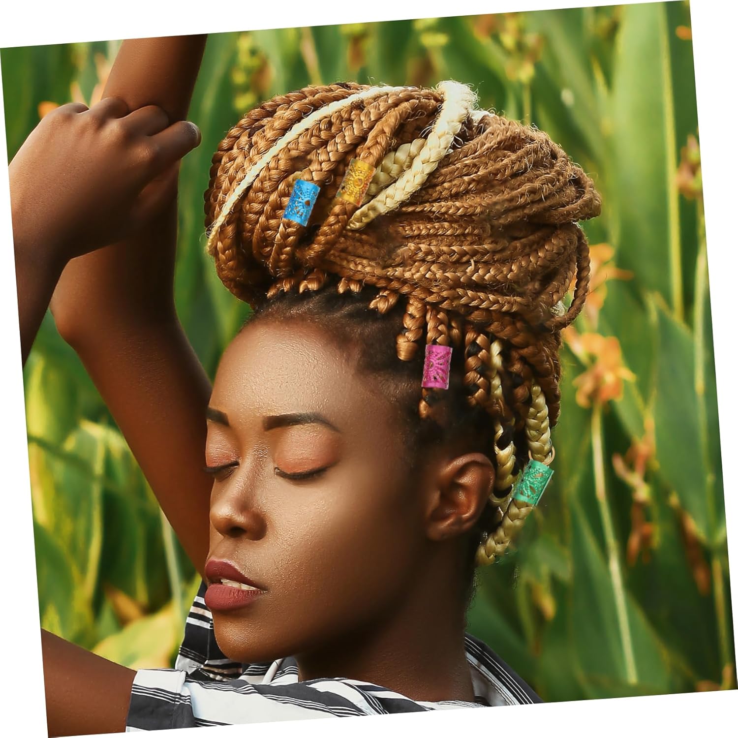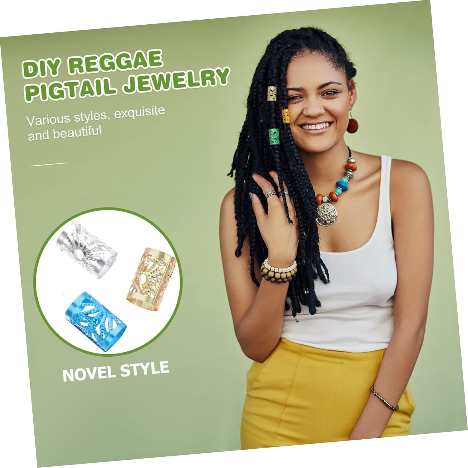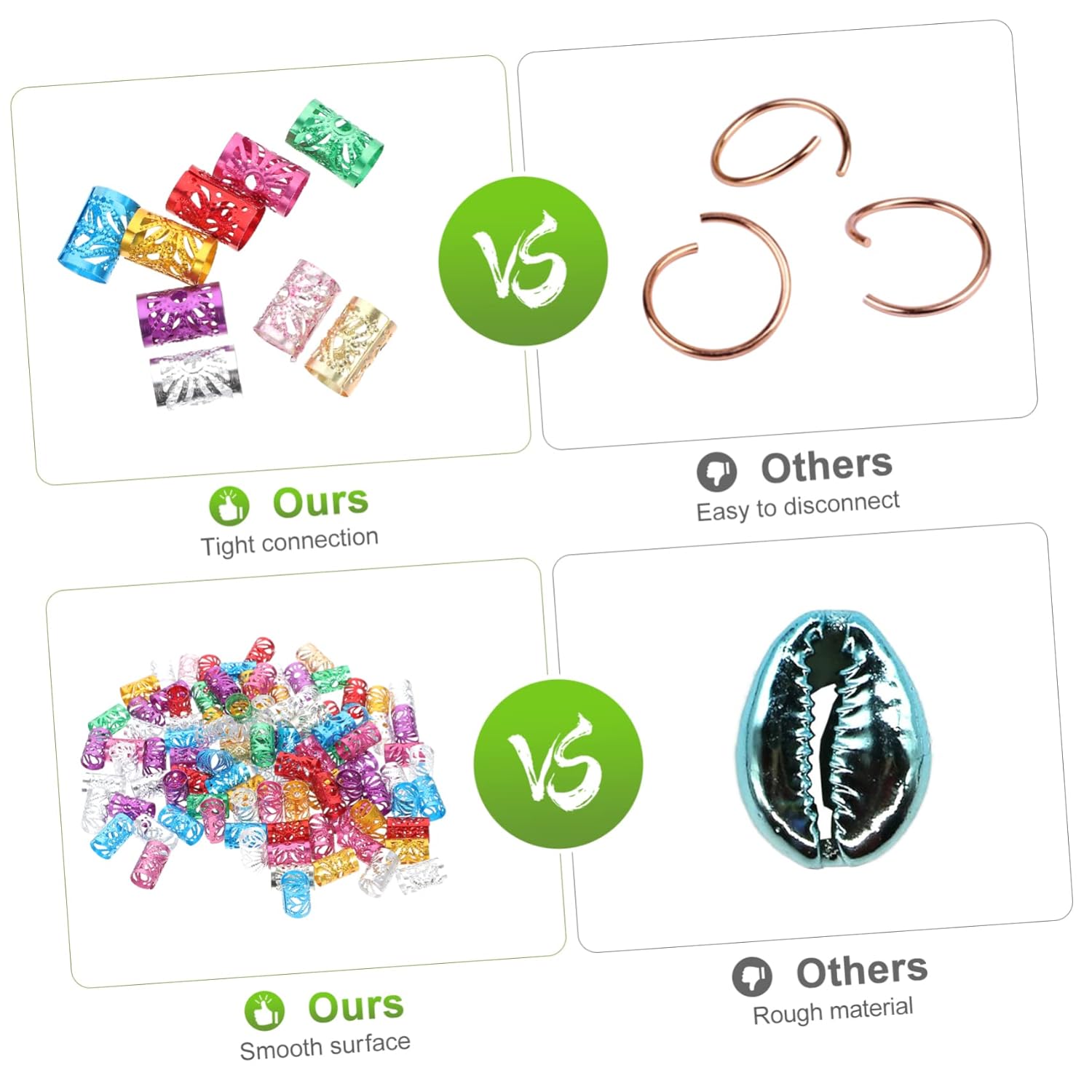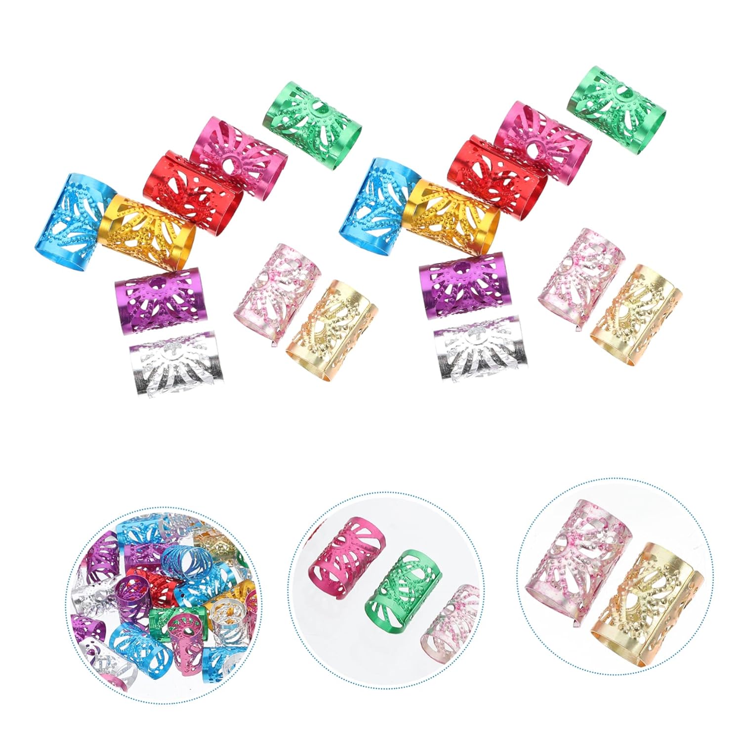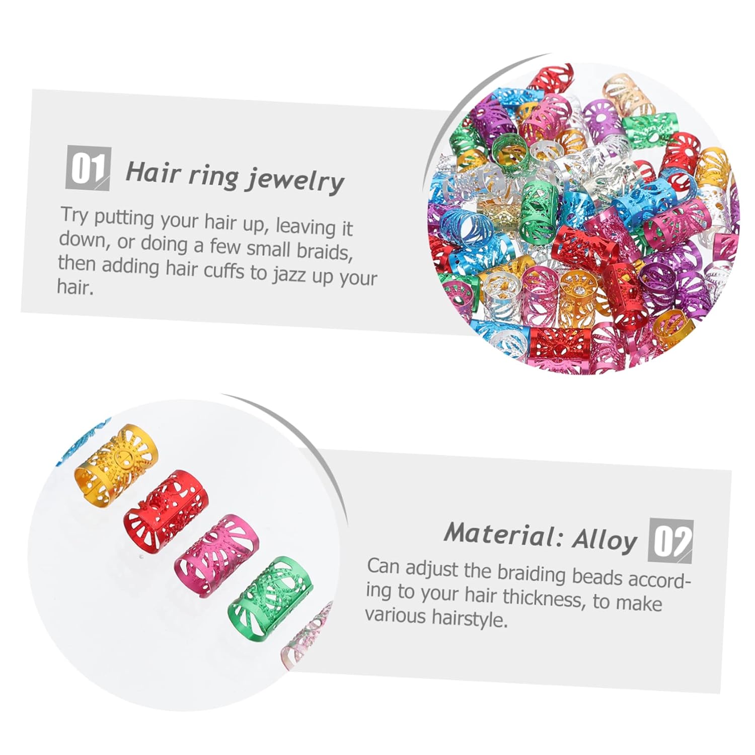 Polsini per capelli: la superficie interna è liscia, quindi puoi inserire facilmente i capelli o la barba nel foro delle perline per barba Anelli per estensioni dei capelli: possono essere utilizzati per intrecciare capelli, barbe, accessori per collane e braccialetti e sono dal design accattivante, Perline per barba Perline per tubi per capelli: prova ad appuntare i capelli, lasciandoli aperti o intrecciare alcune piccole trecce, quindi aggiungi polsini per capelli ai tuoi capelli Ravvivati intrecciando un anello per capelli Tubi delicati: funzionano bene per le trecce all'uncinetto, dreadlocks, capelli con piume, estensioni dei capelli con treccia all'uncinetto e anelli per trecce per capelli Perline per creare gioielli: prima intreccia i capelli, quindi apri l'anello per capelli e inseriscilo direttamente nei capelli, senza attrezzi, perline per baffi