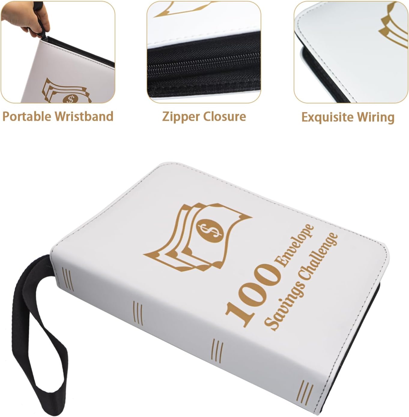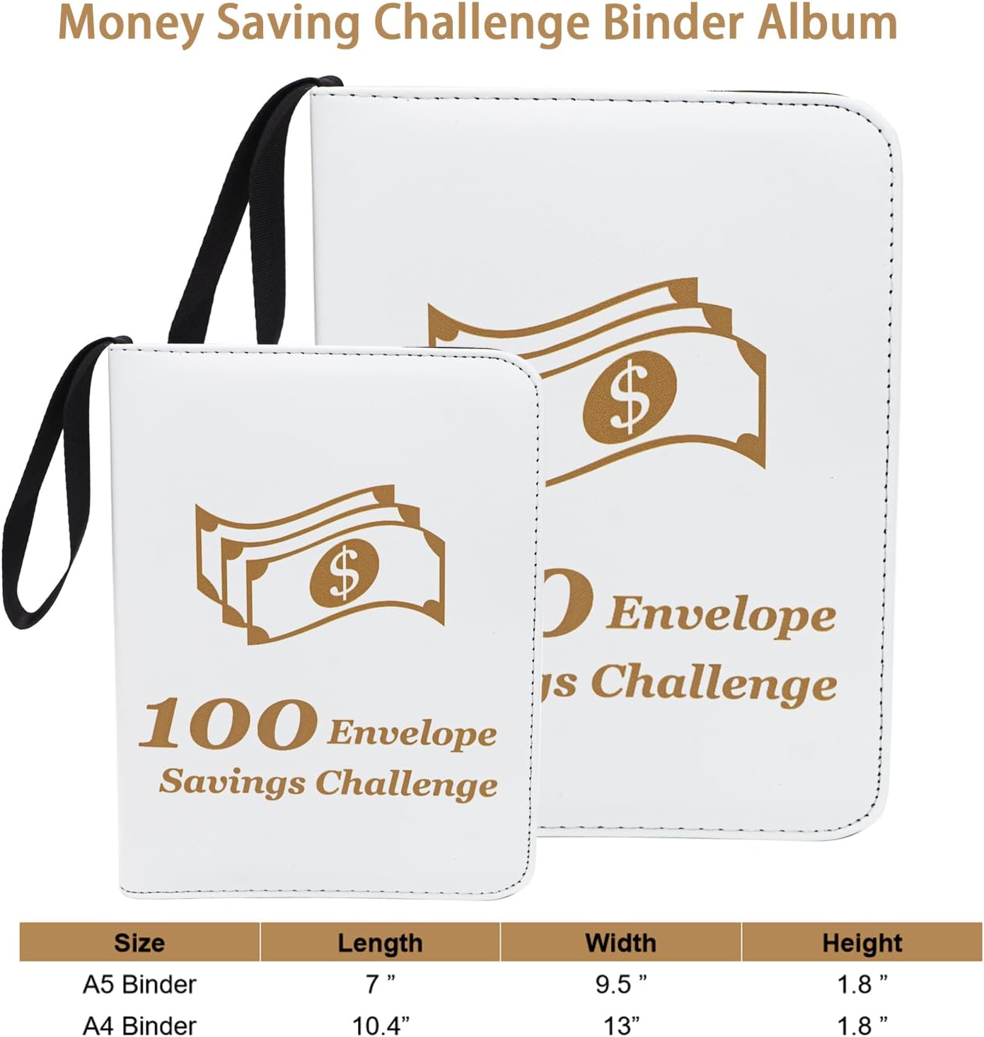 1, 100 buste Money Saving Challenge Album: la confezione contiene 1 raccoglitore A5 in pelle PU con cerniera, 25 pezzi 4 tasche 100 buste per risparmiare denaro e pagina tracker aggiuntiva e la sua protezione per foglio. Puoi fare la tua sfida di risparmio di denaro di 100 giorni con questo libro di sfide valutarie per risparmiare 5.050 2, inseguitore della sfida su entrambi i lati: la pagina del tracker è in cartone bifacciale, in modo da poter contrassegnare su di esso e fare la sfida due volte 3. Qualità premium: il raccoglitore con cerniera è realizzato in pelle PU di alta qualità, molto piacevole al tatto. Combinato con la cerniera, eviterà qualsiasi caduta del contenuto interno. E rende l'album per contanti impermeabile e antipolvere. Le custodie per carte di ricarica sono realizzate in polipropilene di qualità resistente, atossico, senza PVC 4. Portatile e facile da riporre: le dimensioni del nostro album sono 17,8 x 24,1 x 4,6 cm. E il cinturino sulla parte superiore lo rende più facile da trasportare e appendere al gancio 5, 6 opzioni per il regalo: il risparmio è un ottimo raccolto! Forniamo 6 opzioni per voi per fare la sfida di risparmio di denaro da 100 buste. Oppure puoi usarli come album di raccolta contanti
