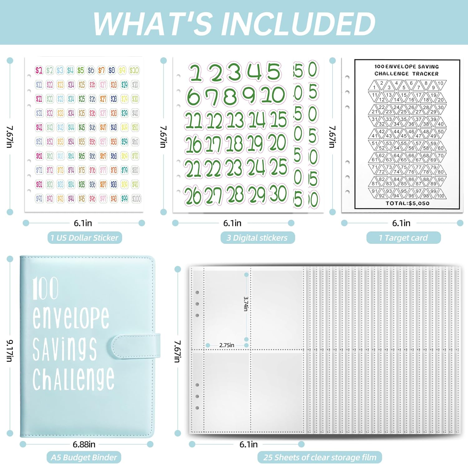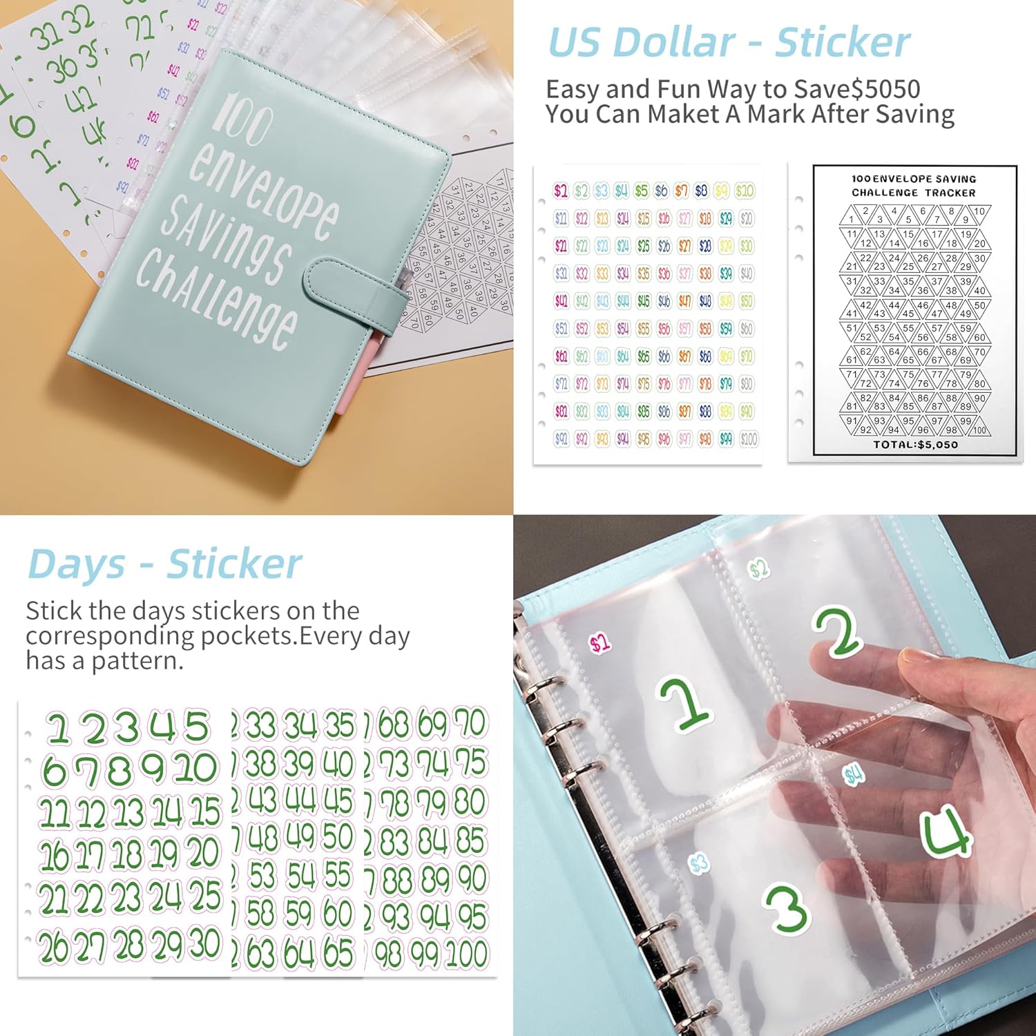 【 100 giorni money Saving Challenge】 Trasforma il tuo gioco di risparmio di denaro completo con la sfida di risparmio di denaro da 100 buste! Risparmia $5050 in soli 100 giorni con un metodo dinamico, coinvolgente e convalidato per fondi di emergenza, depositi auto, vacanze desiderate o pagamenti con carta di credito. Prova il brivido di questa strategia di ritiro ad alta tecnologia in profondità con il nostro speciale legante. Sei pronto ad accettare la sfida e trasformare i tuoi risparmi in un viaggio emozionante? Inizia il conto alla rovescia per il successo finanziario! 【 Riceverai】 Il raccoglitore contiene 1 fascetta in pelle PU A5, buste per denaro a 25-4 fori con numeri prestampati da 1 a 100, a un prezzo da $1 a 100. Facile da usare e trasportare: il libro A5 Spar Challenge può essere facilmente riposto in uno zaino o in una borsa, e la dimensione del fermasoldi è di 235,175 mm. Inoltre, è dotato di una tasca per carte di credito, tessere, carte di risparmio e molto altro ancora. Inoltre viene fornito con un posto per inserire una penna, quindi è conveniente per noi registrare in qualsiasi momento. Design elegante: la cartella economica consente di risparmiare denaro e di budget molto divertente. Uno per se stessi e uno per il bilancio familiare. Risparmia denaro per il prossimo anno! O se risparmi denaro per vacanze, auto, fondi di emergenza, rimborsi del debito, compleanni o qualcos'altro! Regalo pratico e interessante: la sfida delle buste da 100 è il regalo perfetto per i membri della famiglia, sia bambini che adulti. Questo è anche un buon modo per tutta la famiglia di impegnarsi nel risparmio, aiutarli a avviare obiettivi di risparmio alla moda e convenientemente e mantenere abitudini di risparmio a lungo termine.