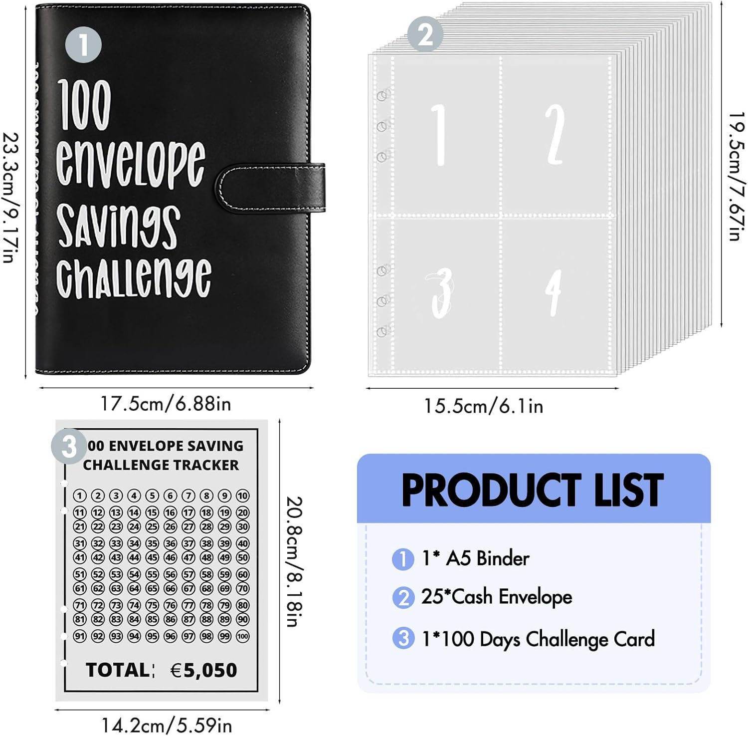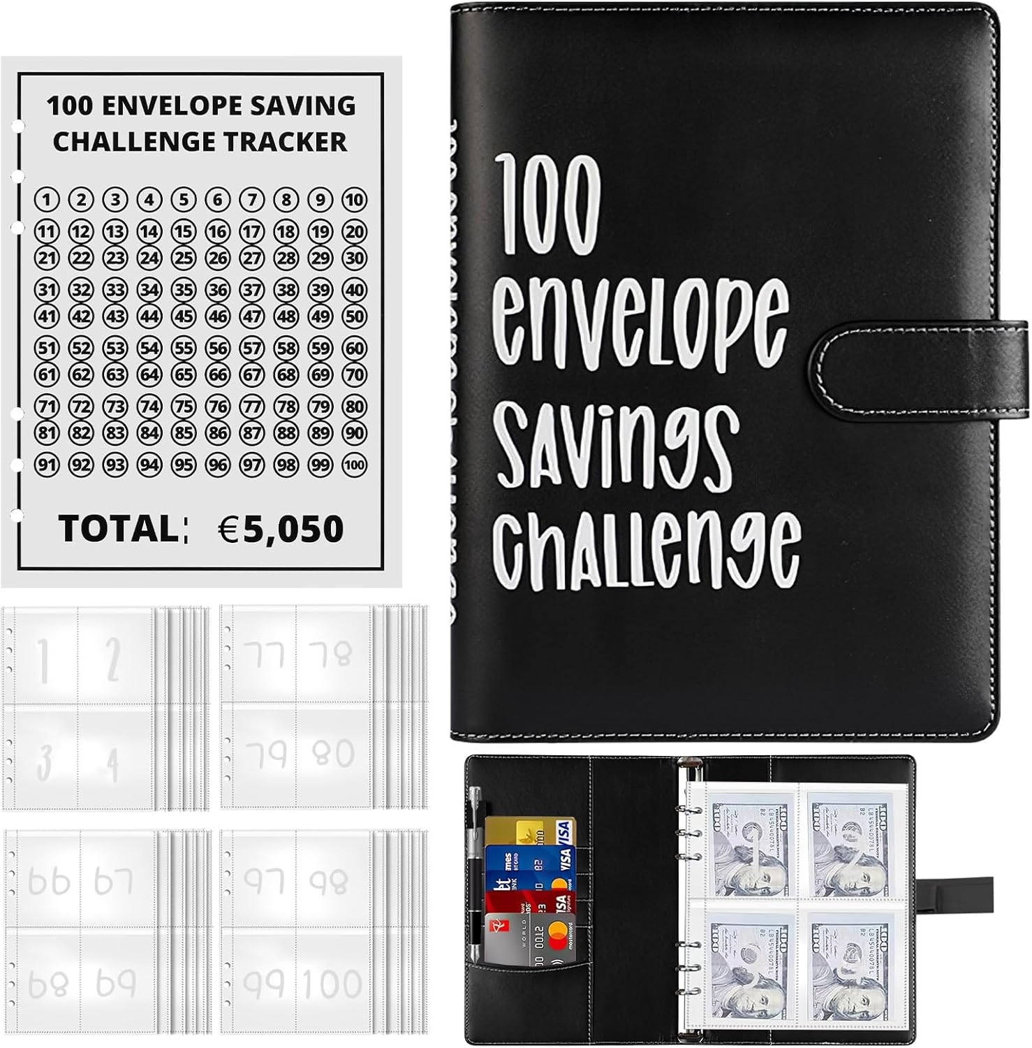 Salvadanaio A5 Budget Planner, un buon aiuto per risparmiare denaro: rivoluzionate il vostro gioco di risparmio con le 100 buste challenge binder! Utilizza un metodo dinamico, accattivante e comprovato per risparmiare 5050 euro in soli 100 giorni per un fondo di emergenza, un deposito per un'auto, una vacanza desiderata o un pagamento con carta di credito. Utilizza questa cartella per risparmiare denaro per raggiungere i tuoi obiettivi di budget. Cartella per risparmiare denaro: riceverete una cartella A5 per risparmiare denaro, 25 pagine con 100 buste per risparmiare denaro, 1-100 adesivi numerici, è possibile personalizzare e sviluppare un programma di risparmio che funziona individualmente per voi. Con la cartella Spar-Challenge con 100 buste puoi divertirti di più nella tua sfida di risparmio. Quando hai completato la sfida di risparmio di 100 giorni, risparmierai 5050 euro. Puoi gestire il tuo pianificatore e i tuoi risparmi in modo più efficiente Materiali di alta qualità & Design multifunzionale: il nostro planner economico presenta una copertina in pelle resistente agli strappi e ai graffi. Le tasche trasparenti in PVC proteggono i vostri oggetti da polvere e acqua. Dispone di diversi scomparti per carte di credito, documenti, fatture, penne, foto istantanee e molto altro ancora. Con questa cartella Sfida busta, un modo stimolante e divertente per risparmiare denaro. Portatile e facile da usare: il planner economico con una dimensione di 23,5 x 17,50 x 3 cm può essere riposto in borsa, nello zaino o sulla scrivania e puoi portarlo ovunque per pianificare il tuo budget. Questa cartella economica non è solo un ottimo strumento per organizzare le tue finanze, ma anche un portafoglio che funge da organizzatore di denaro e sistema di buste. Regalo elegante e pratico: il raccoglitore da 100 buste aiuta parenti e amici a sviluppare abitudini di risparmio, adatto per amici, familiari, colleghi, anziani, ecc. Puoi regalarlo per compleanni, festa del papà, festa della mamma, Natale e Capodanno e altre festività, e sarai sicuramente felice ed entusiasta di questo set di salvadanaio. Perché chiunque riceva questo regalo sarà in grado di risparmiare rapidamente 5.050 €.