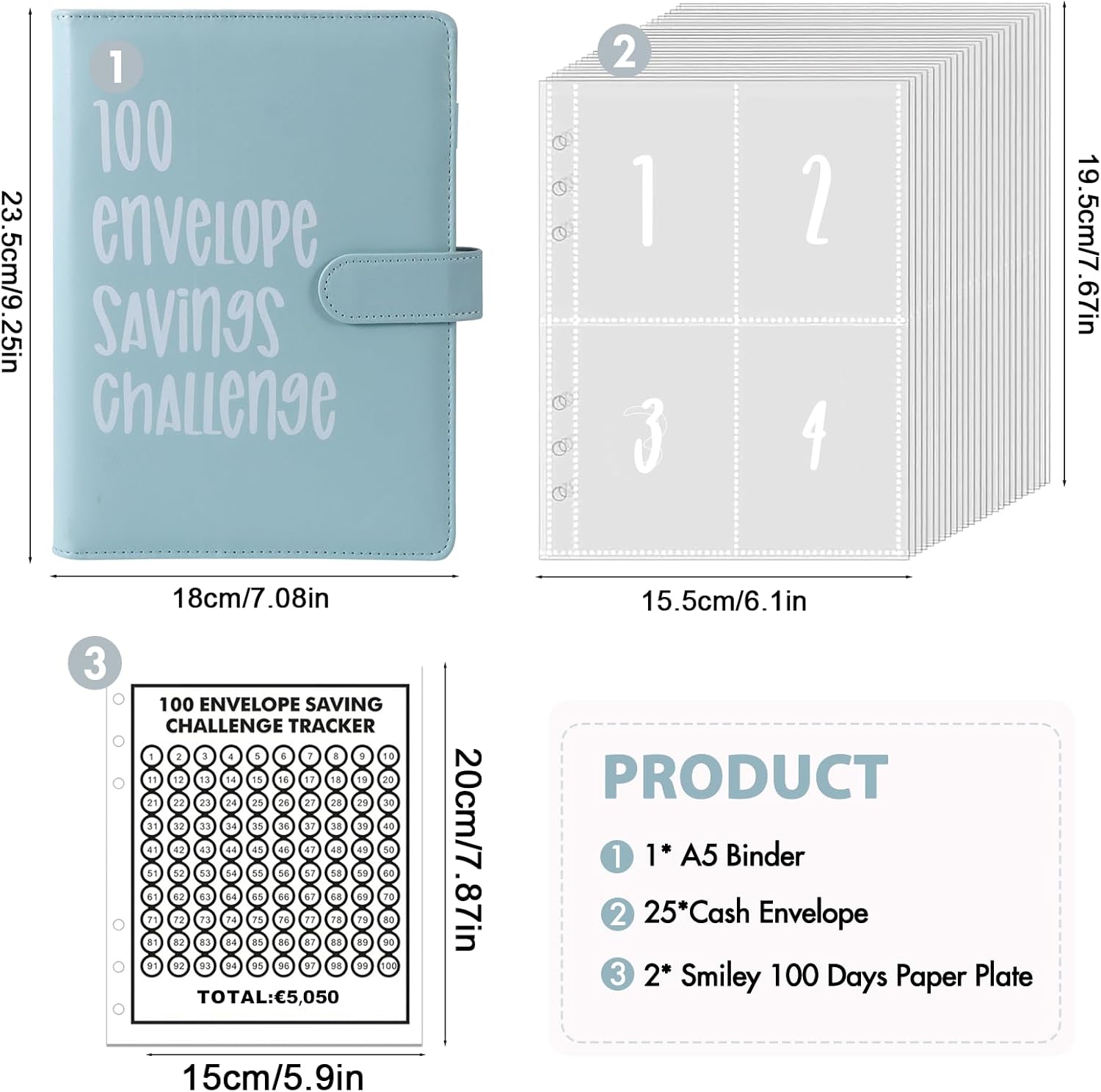 【Sfida di risparmio di 100 giorni】Rendi il tuo gioco di risparmio più interessante! Partecipa alla sfida di 100 giorni e con la cartella segna o strappa l'icona della busta corrispondente a ciascun deposito. Hai imparato la Sfida di Risparmia completandola con successo contrassegnando o demolendo tutti i simboli. Bella cosa. 【Design ben congegnato con accessori】il libretto misura 9,25 x 6,8 pollici e viene fornito con 25 pellicole a quattro griglie e 1 carta per carte progettata per i viaggi di 100 giorni. Il raccoglitore è formato A5 e può essere facilmente riposto in zaini e borse per un facile trasporto. 【 Sistema di risparmio di denaro conveniente】 Monitora facilmente il tuo viaggio con il nostro raccoglitore di denaro contante. Questo pratico strumento è un ottimo regalo per amici e parenti e ti aiuta a tenere traccia dei tuoi progressi di risparmio con un sistema interattivo facile da usare. 【Costruzione in pelle e PVC di alta qualità】questo libro Spar-Challenge è realizzato in pelle resistente e materiali in PVC, è elegante, resistente e comodo da tenere. La tonalità rosa aggiunge un tocco di raffinatezza alla tua pianificazione finanziaria. 【Versatile e facile da usare】questa agenda per budget è adatta per diverse occasioni e non è solo un regalo pratico, ma anche uno strumento efficace per la gestione finanziaria. Offre diverse opzioni di portafoglio e uno stile di carattere ben leggibile. Puoi utilizzare il budget raggiunto per andare in vacanza, comprare un'auto, costruire un fondo di emergenza, pagare i debiti o organizzare una festa di compleanno.