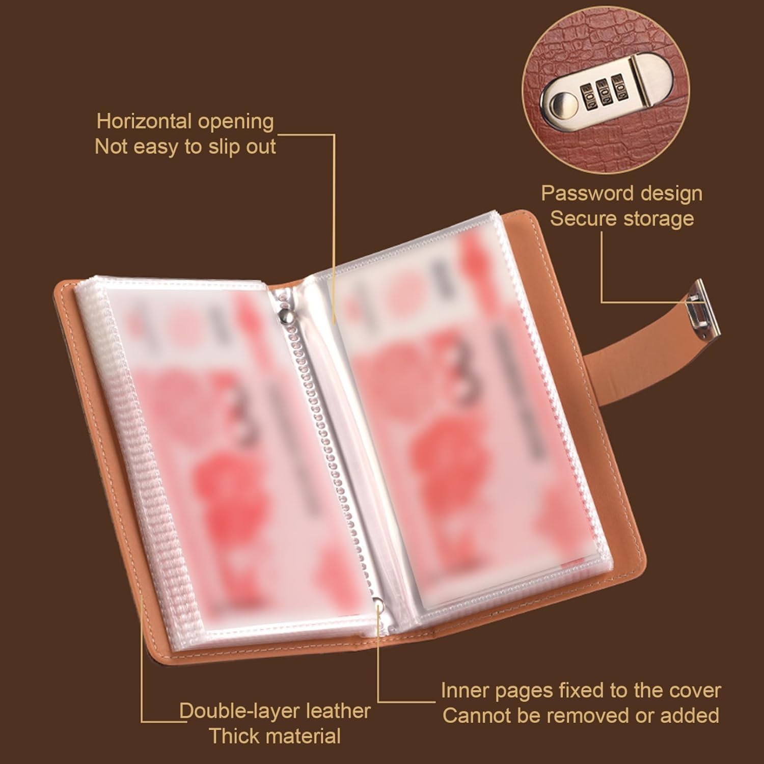 Presente per tutte le età: sia per gli adulti che vogliono costruire risparmi o per bambini che imparano la gestione del denaro, questa sfida è un regalo ponderato e pratico che incoraggia le abitudini di salvataggio migliori in modo divertente e interattivo. Risparmio sicuro ed elegante: il libro di risparmio di denaro PU viene fornito con una serratura codificata, garantendo che il tuo denaro rimanga al sicuro aggiungendo un aspetto elegante e moderno alla tua routine di risparmio..La sua copertura stabile protegge i tuoi soldi da danni e occhi indiscreti. Dimensioni compatte e convenienti: misurazione di 7,0x4,3 pollici, questo libro di risparmio di denaro è portatile e si adatta facilmente a borse o scrivanie, rendendolo il buon strumento per il risparmio in movimento o l'uso quotidiano a casa. Gestione organizzata in contanti: ogni busta è chiaramente progettata per lo stoccaggio di cassa sistematico, consentendo un facile monitoraggio dei tuoi progressi e rendendo la tua esperienza di risparmio più organizzata e gratificante. Sfida divertente e motivante: con 100 buste da riempire, questa sfida trasforma il risparmio di denaro in un gioco coinvolgente che motiva le abitudini di risparmio coerenti, aiutandoti a raggiungere i tuoi obiettivi finanziari senza sforzo.