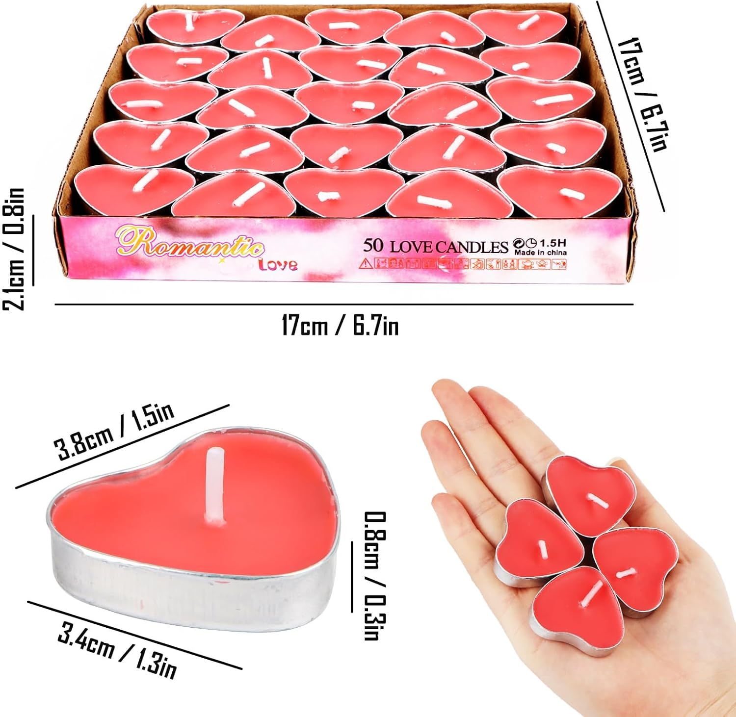 Set di candele decorative: il set di candele contiene 100 candele su 4 piani con 25 candele ciascuna, in modo da poter utilizzare tutte le candele che vuoi. Che si tratti di un matrimonio, un appuntamento, una festa o una festa in famiglia, è dolce e amorevole. Cera ecologica: realizzata in paraffina e nucleo in cotone biologico senza piombo, senza fumo e atossico, con un migliore odore. E diffondere la luce della chiarezza. Se la tua famiglia e gli ospiti arrivano, per favore dai loro una sorpresa. Decorazione per candele: la candela tealight a forma di cuore è comoda da usare, può garantire una lunga durata di 1 ora o più. Goditi una fiamma pulita, senza fumo e tremolante. I set regalo di candele tealight rosse sono ben decorate in soggiorno, camera da letto e giardino. Atmosfera romantica: è possibile posizionare le candele da tè sul tavolo o di lato, senza occupare troppo spazio. Con il suo simpatico design a forma di cuore e le sue dimensioni mini, puoi creare il tuo ambiente romantico e trascorrere una notte meravigliosa con la persona amata. Multiuso: queste candele tealight sono molto adatte per tutte le vostre occasioni speciali e celebrazioni. Molto adatto per banchetti di nozze, compleanni, regali per feste, decorazioni da tavolo, decorazioni per la casa, piscine, emergenze, celebrazioni e così via.
