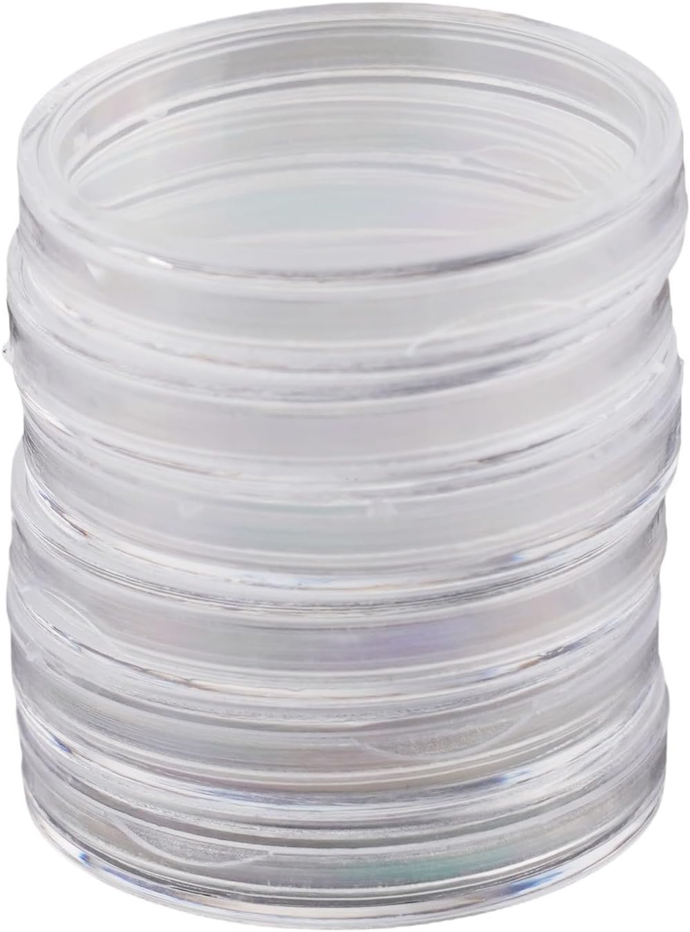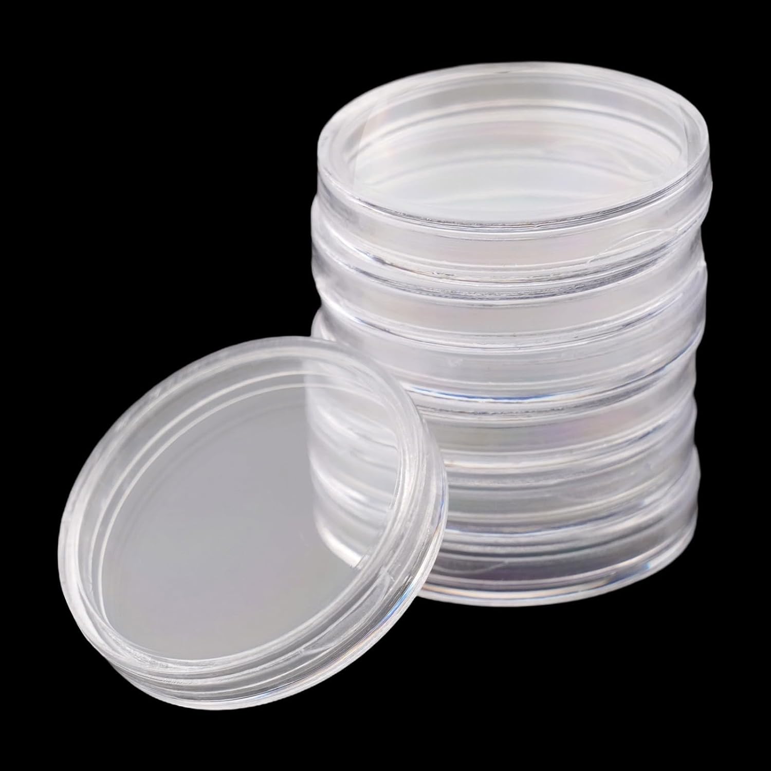 Protezione per collezioni di monete: queste capsule in plastica trasparente da 28 mm offrono una conservazione sicura e duratura per le tue preziose monete, proteggendole da polvere, graffi e danni mantenendo la visibilità. Set completo da 100 pezzi: questa confezione include 100 capsule singole per monete, fornendo ampio spazio per organizzare e proteggere un'intera collezione o più set di monete con facilità. Precisa misura da 28 mm: progettate con un diametro interno di 28 x 3 mm e dimensioni esterne di 32 x 5,6 mm, queste capsule contengono comodamente monete, movimento e potenziale di dimensioni standard. Display trasparente: realizzate in plastica trasparente, queste custodie consentono di visualizzare chiaramente entrambi i lati delle monete senza rimozione, perfette per la visualizzazione e l'ispezione dettagliata. Design sicuro a scatto: ogni capsula è dotata di un affidabile meccanismo di chiusura a scatto che mantiene le monete saldamente in posizione, offrendo tranquillità per la manipolazione, il trasporto o la conservazione.