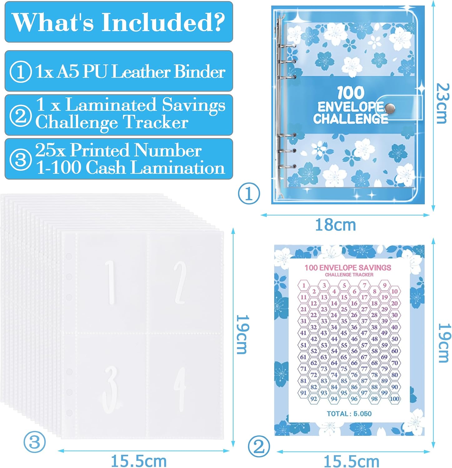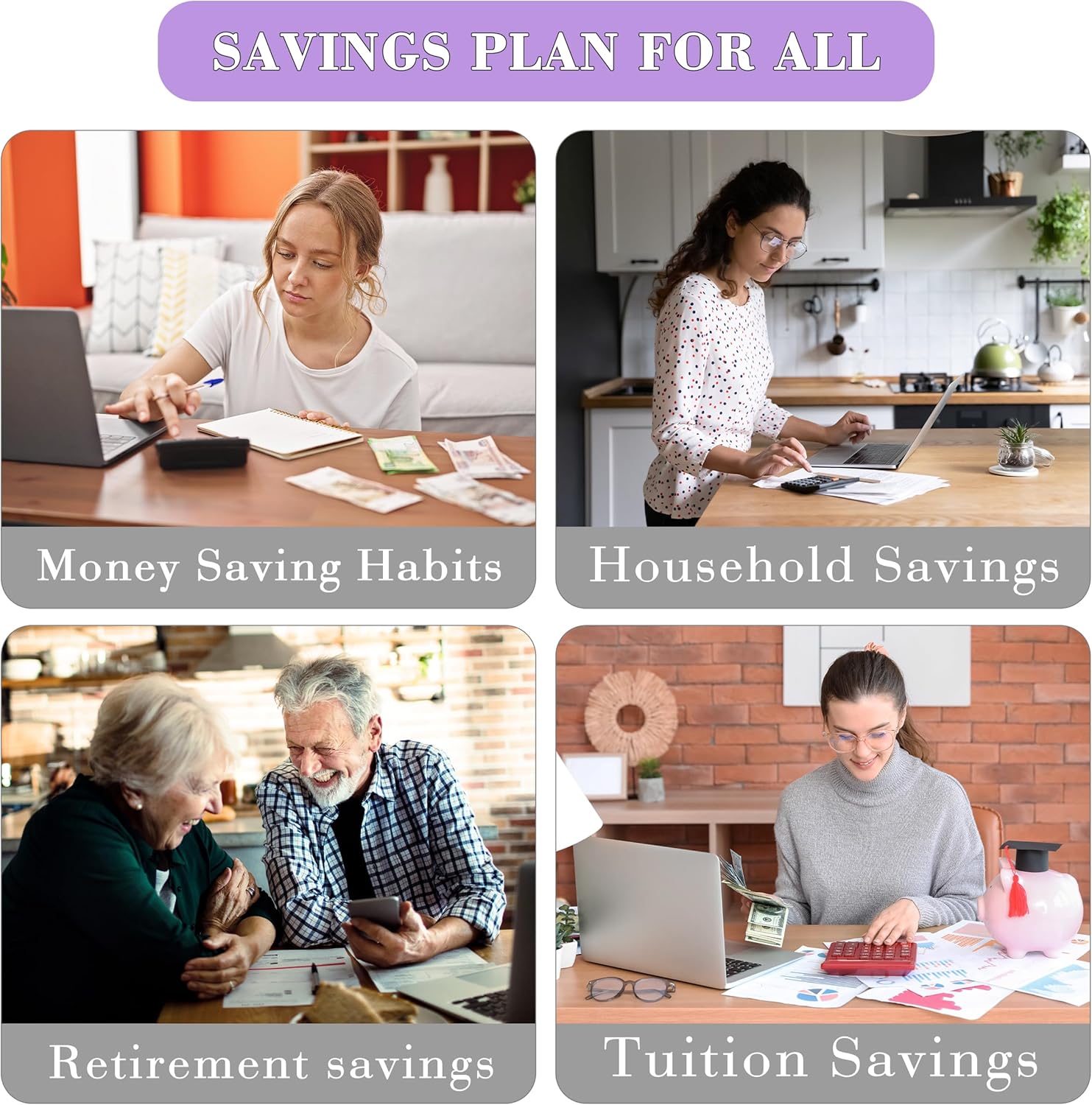 Come risparmiare: questo è un modo perfetto per risparmiare denaro e raggiungere gli obiettivi per risparmiare su spese impreviste o brutti momenti. È più di una semplice cartella, è un modo divertente per trasmettere abitudini di risparmio. Imbarcati nell'avventura di risparmio con il nostro Money Challenge Binder – dove gli obiettivi finanziari diventano un viaggio gratificante! Contenuto della confezione: 1 raccoglitore in PVC A5, 25 pagine per buste per contanti con numeri da 1 a 100 (4 tasche per pagina), 1 carte Challenge Tracker, perfette per budget personali e familiari, per aiutarti a risparmiare per diversi obiettivi come auto, viaggi, emergenze e molto altro ancora Buste impermeabili e per contanti: questo raccoglitore ha 25 inserti, per un totale di 100 buste per contanti in materiale resistente, la sua caratteristica antistrappo e priva di acidi mantiene i vostri soldi impermeabili e antipolvere Custodia in PVC ispessito: la custodia è realizzata in PVC di alta qualità, è altamente trasparente e luminosa, resistente ai graffi e durevole. La funzione impermeabile protegge anche i tuoi oggetti di valore, il che lo rende ideale per conservare denaro, monete, banconote, ecc. per risparmiare spese impreviste o brutti tempi. È più di una semplice cartella, è un modo divertente Regalo ideale: il libro sfidato Cash Envelope Challenge è una scelta migliore per aiutarti ad acquisire l'abitudine di risparmiare denaro e prepararti per i brutti momenti. È un buon regalo per amici, colleghi, anziani e parenti per compleanno, giorno del Ringraziamento, Natale e San Valentino.