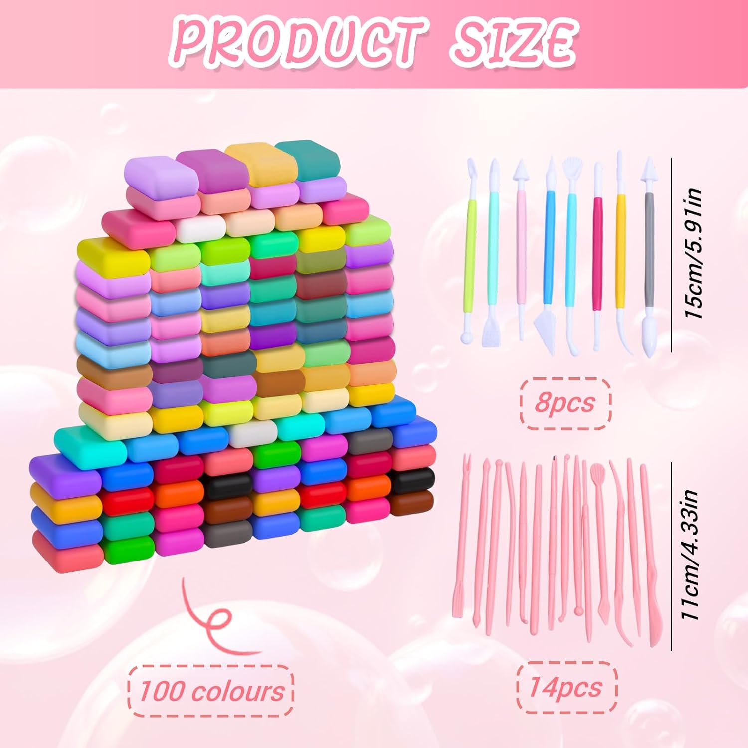 1. Kit completo di creazione artistica: questo kit include 100 colori diversi di argilla da modellare, offrendo una tavolozza varia per stimolare la tua creatività. Accompagnato da 22 strumenti per scultura a doppia estremità, questo set è perfetto per scolpire, tagliare, levigare e modellare forme complesse come fiori, petali o disegni dettagliati. 2. Strumenti multifunzione per risultati precisi: i 22 strumenti di modellazione a doppia estremità includono forme diverse come teste di ombrelli, petali, palline, ossa, lame, foglie, pettini, coni e molto altro. Questi strumenti sono ideali per creare decorazioni per torte, sculture di marzapane o opere d'arte in argilla, offrendo grande precisione e finiture pulite. 3. Materiali durevoli e di alta qualità: gli strumenti da intaglio sono realizzati in plastica resistente e leggera, garantendo facilità d'uso e longevità. Questi strumenti non solo sono durevoli, ma sono anche sicuri ed ecologici, rendendoli adatti all'uso regolare per i tuoi progetti creativi. 4. Design pratico e facile da usare: gli strumenti sono leggeri e maneggevoli, offrendo una presa piacevole anche durante lunghe sessioni di lavoro. Grazie al loro design ergonomico potrai realizzare decorazioni per torte e modellare sculture in creta senza fatica, beneficiando di un'ottima precisione ad ogni utilizzo. 5. Versatilità e molteplici applicazioni: ideale per varie applicazioni come modellazione di torte, artigianato in argilla, scultura in pasta di zucchero o creazione di decorazioni di marzapane. Questo set è adatto sia ai principianti che ai professionisti ed è perfetto per le famiglie o le scuole che desiderano esplorare l'arte del modellare e della scultura.
