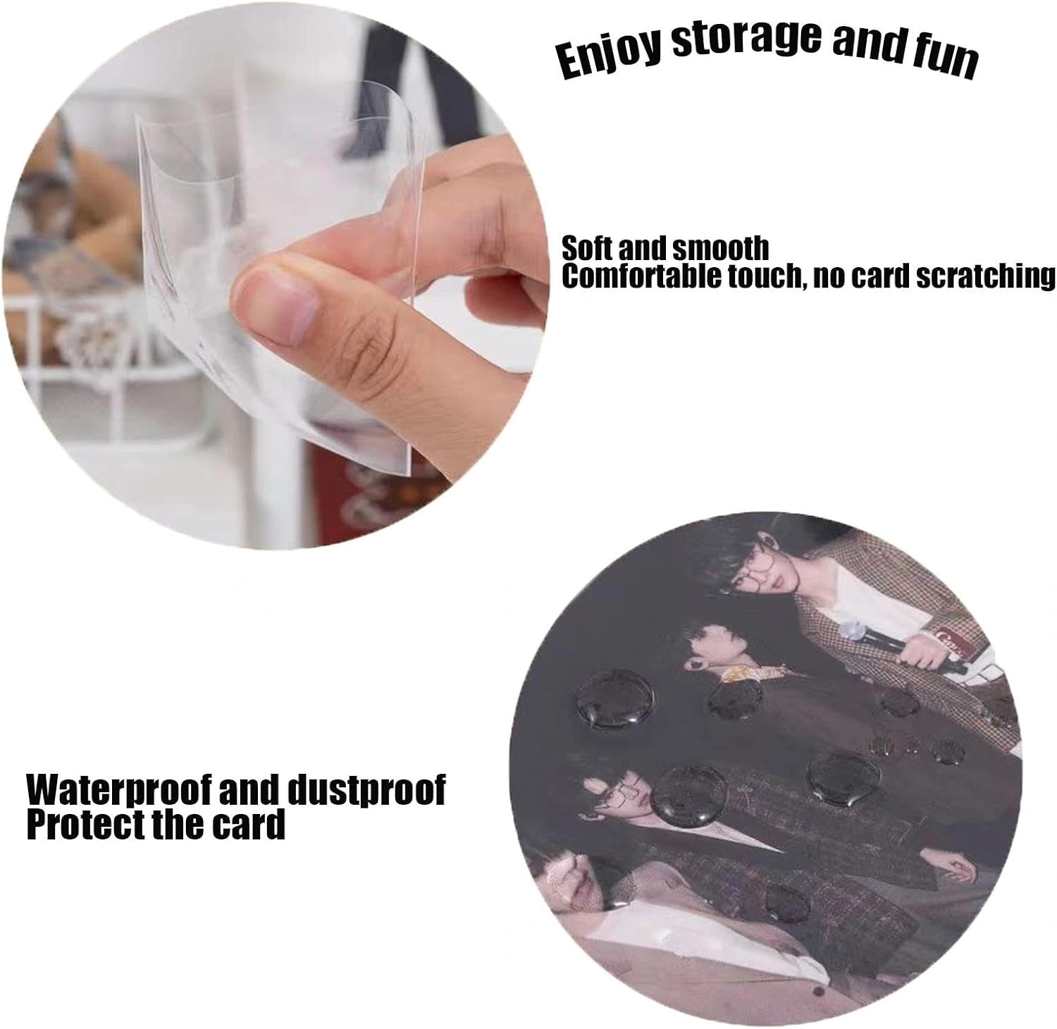 Protezione ultra spessa e durevole: realizzate in policarbonato di alta qualità da 200 micron, queste custodie per carte offrono una protezione superiore contro graffi, piegature e umidità, mantenendo le tue preziose carte in perfette condizioni. Dimensioni perfette per molteplici usi: misurano 58 x 89 mm, queste custodie si adattano a carte fotografiche Kpop, carte collezionabili, carte d'identità, carte di credito e biglietti da visita, rendendole versatili per i collezionisti e l'uso quotidiano. Trasparente e resistente alle sbavature: il design ad alta trasparenza assicura che le carte rimangano visibili senza distorsioni, mentre la superficie liscia previene impronte digitali e macchie. Sicuro e facile da organizzare: la confezione da 100 custodie consente di riporre e organizzare l'intera collezione in modo efficiente. Ideale per raccoglitori, scatole di immagazzinaggio o protezione in movimento. Ideale per collezionisti e appassionati di carte: che tu stia conservando fotocard Kpop, carte da gioco o documenti importanti, queste custodie offrono una protezione affidabile contro usura, polvere e danni accidentali.