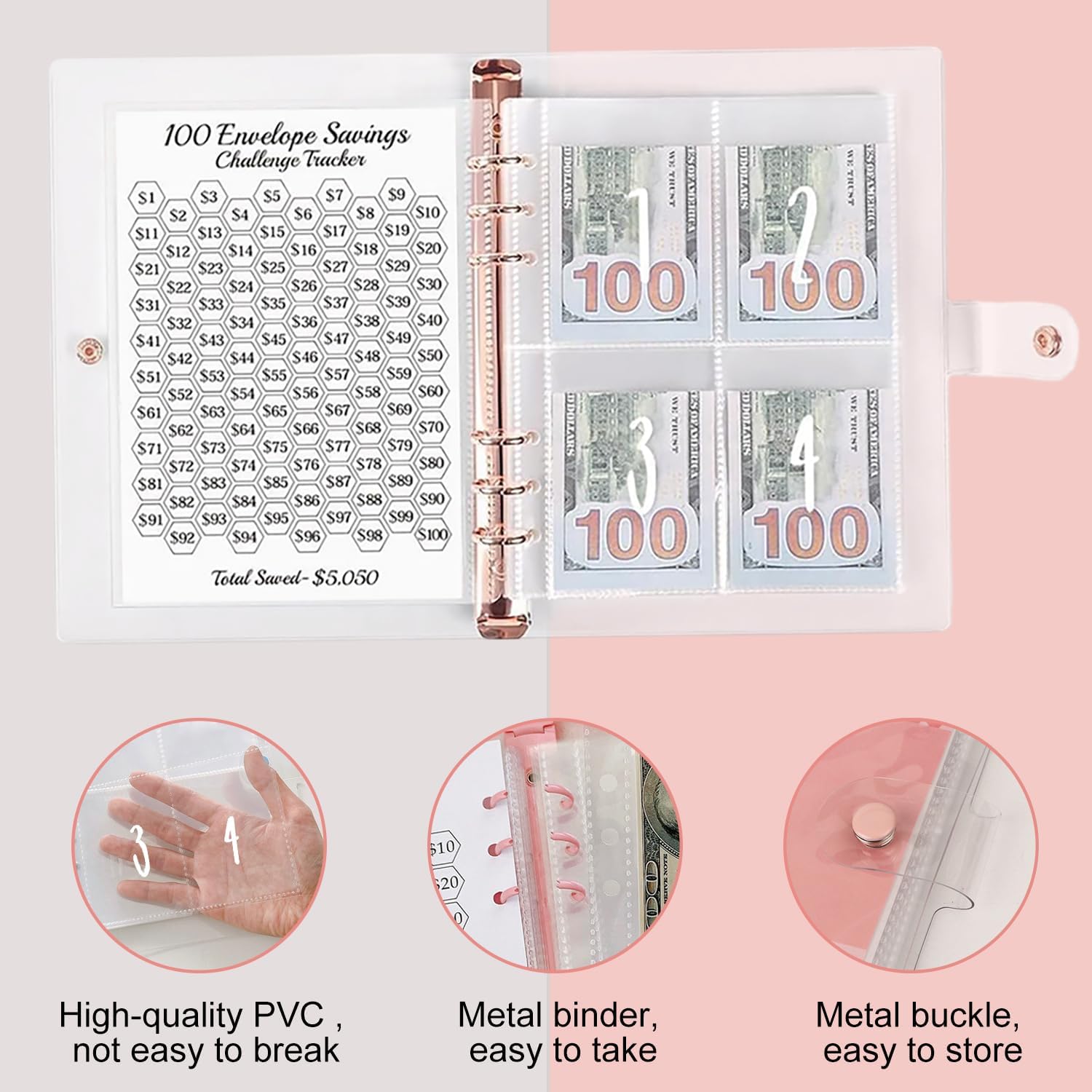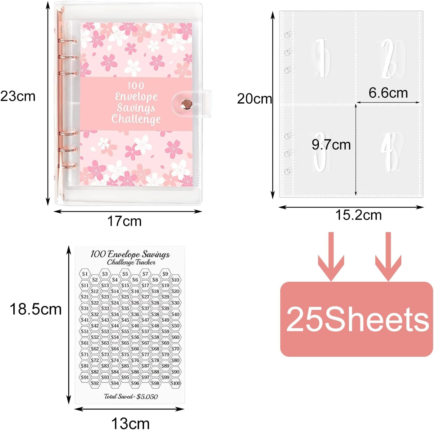 【Modo Semplice E Divertente Per Risparmiare 5050】Il Salvadanaio Per Soldi Inizia Con 1 Il Primo Giorno E Raddoppia i Tuoi Risparmi Ogni Giorno Fino A Raggiungere 5.050 Dopo 100 Giorni. Questo approccio progressivo rende il risparmio di denaro più interessante e motivante. 【Guscio in PVC ispessito】Il guscio è realizzato in materiale PVC di alta qualità, altamente trasparente e luminoso, il guscio è resistente ai graffi e durevole, la caratteristica impermeabile protegge anche i vostri oggetti di valore, ideale per conservare contanti, monete, banconote e altri oggetti. 【Facile da Trasportare】Il raccoglitore A5 Budget misura 23,5 cm/9,3 pollici x 18,5 cm/7,3 pollici, leggero e facile da trasportare, adatto a borse, zaini, ecc, ideale per la pianificazione finanziaria in viaggio 【Risultato Impressionante】Alla Fine Della Sfida Di 100 Giorni Hai Salvato Una Somma Considerevole Di 5.050. Questo Successo È Descritto Come "Cosa Piuttosto Bella" E Sottolinea La Sensazione Di Prestazioni E Soddisfazione Che Viene Con Il Completamento Della Sfida. 【Otterrai】1 x raccoglitore in PVC rosa A5, 25 pagine interne numerate da 1 a 100 (4 tasche per il denaro per pagina), 1 carte di tracciamento della sfida, perfette per i bilanci personali e familiari per aiutarvi a risparmiare per una varietà di obiettivi come auto, viaggi, emergenze e altro ancora!