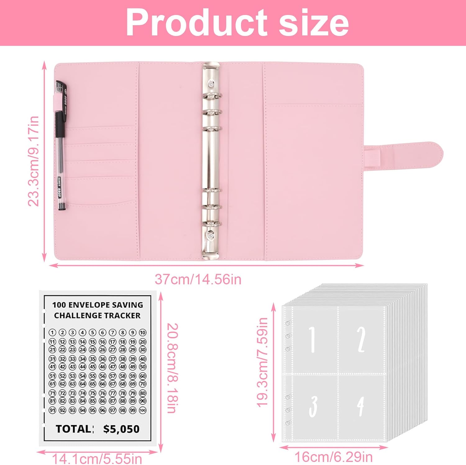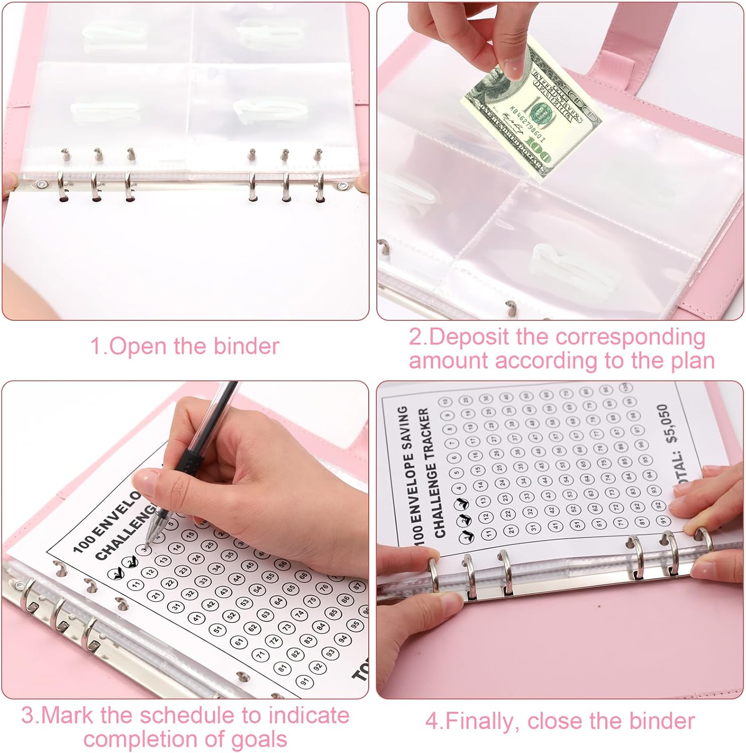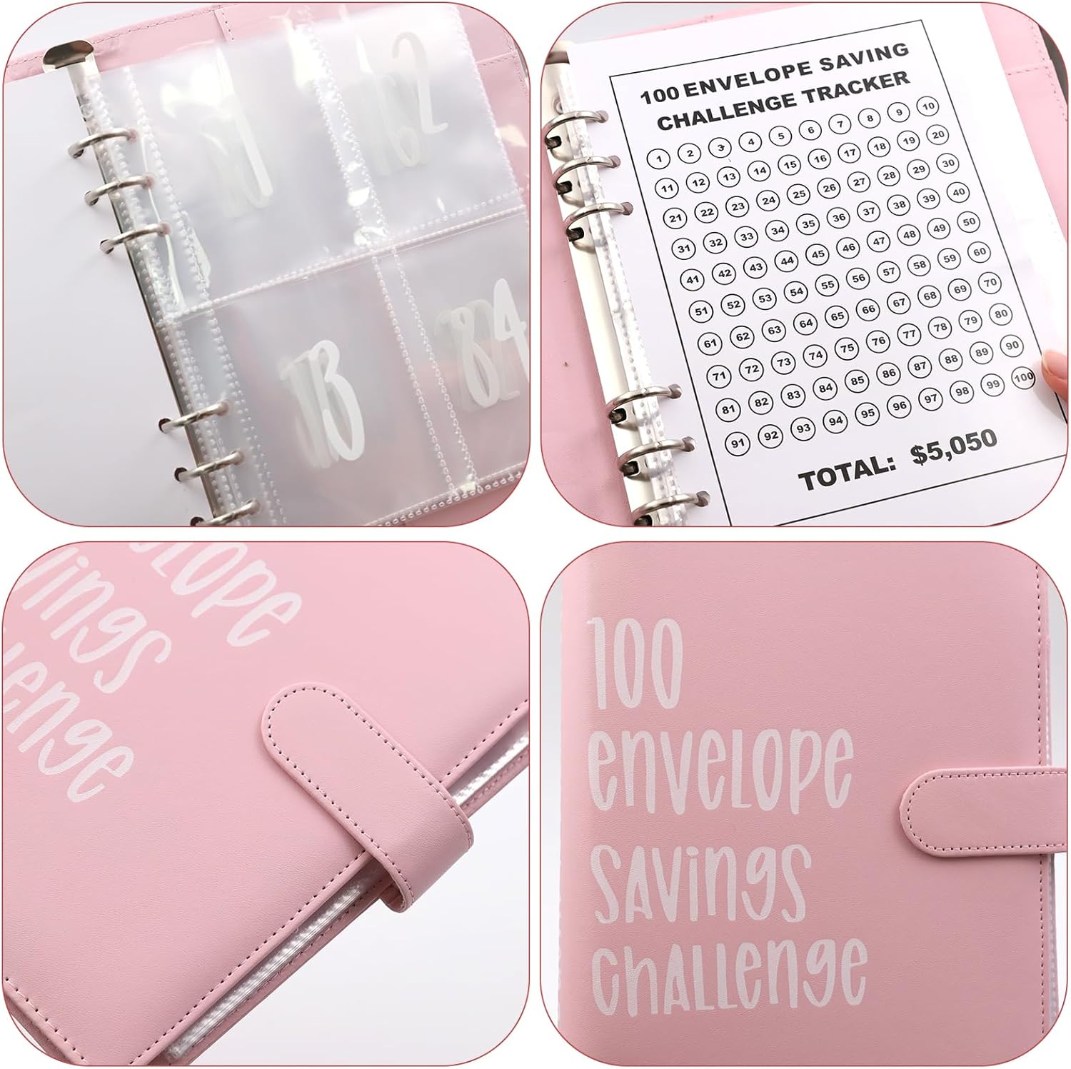 Sfida di 100 giorni, divertente sfida: inizia la tua sfida di risparmio con la cartella Challenge da 100 buste, che utilizza il metodo di sfida di 100 giorni come ciclo, ogni busta rappresenta un giorno e gli obiettivi di risparmio vengono raggiunti registrando in un cinema di pollice. Questo è un libro per te e una sfida per risparmiare per la tua famiglia. Risparmia per il prossimo anno! Oppure risparmia per una vacanza, un'auto, un fondo di emergenza, il rimborso del debito, un compleanno o qualcos'altro. 100 buste in materiale di alta qualità, ottima protezione: il nostro planner per la casa è realizzato in pelle PU morbida e resistente, impermeabile e antigraffio per una presa confortevole. Le buste per risparmio di denaro sono trasparenti, impermeabili e antipolvere, per mantenere al sicuro contanti, appunti o carte. Il libro per la casa è ideale per riporre contanti. Materiali privati e di qualità: il libro per la casa ha un design speciale con chiusura a bottone magnetico per garantire che i dati della famiglia siano protetti privatamente e non possano essere facilmente visti da altri, mentre è comodo e facilmente accessibile. Inoltre, è realizzato in PVC di alta qualità, impermeabile e resistente agli strappi per garantire la migliore protezione per le banconote e i contanti. Strumento di pianificazione budget: questo raccoglitore per risparmiare denaro è più di un semplice libro; è il tuo compagno per raggiungere i tuoi obiettivi finanziari. Utilizza il suo quadro strutturato per pianificare e gestire efficacemente il tuo budget per garantire stabilità finanziaria e successo. (Contiene: 25 diapositive a quattro lati + un foglio di carta da 100 giorni + cartella A5). Versatile e facile da usare: adatto per una varietà di occasioni, questo set di 100 fascette non è solo un pratico regalo, ma anche uno strumento efficace per gestire le vostre finanze. Con diverse opzioni di compartimento di currency e stili facili da leggere, il risparmio garantisce un'esperienza utente senza assassi.