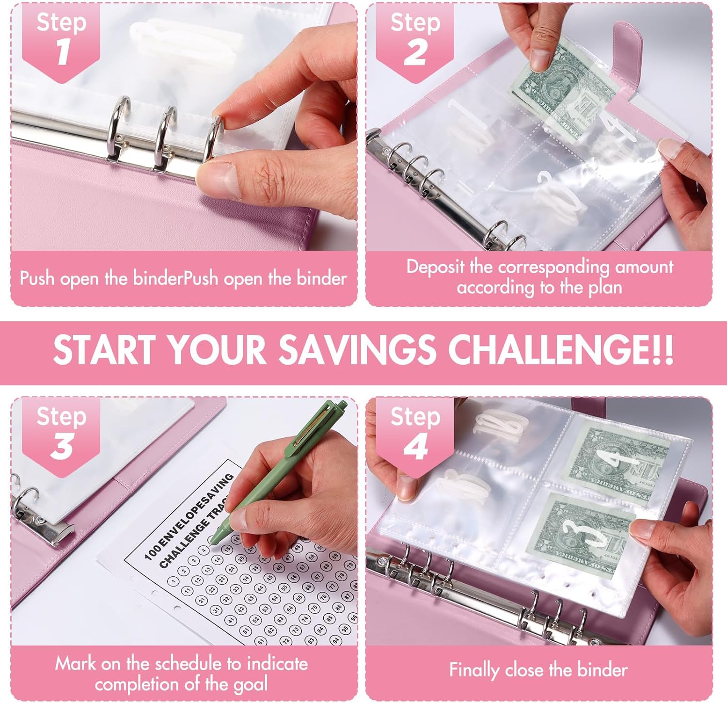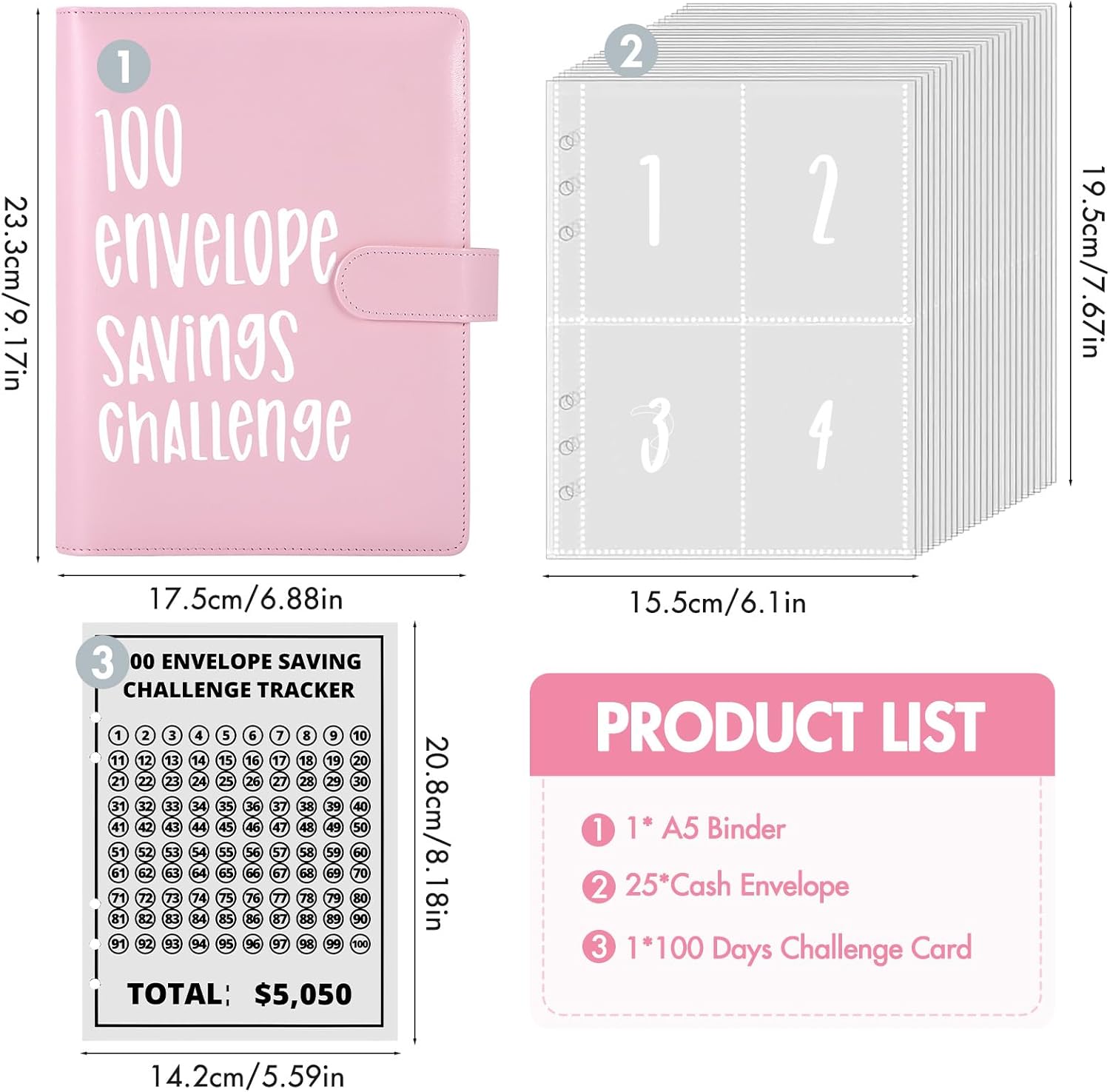😀【Sfida di 100 Giorni, Sfida Divertente】Inizia la tua sfida di risparmio! La cartella della sfida da 100 buste utilizza un metodo di sfida di 100 giorni come ciclo, in cui ciascuna busta rappresenta un giorno e raggiunge l'obiettivo di risparmio registrandolo in un flipbook. Questo è un libro adatto a te stesso e ad una sfida di risparmio familiare. Risparmia soldi per il prossimo anno! Oppure risparmia denaro per vacanze, automobili, fondi di emergenza, rimborso dei debiti, compleanni o altre cose. 💰 【Set Di Risparmio Completo, Risparmia In Modo Più Efficiente】 La sfida di risparmio delle buste include una cartella compatta A5, un'agenda da 100 giorni e un set di tasche che può contenere 100 oggetti. Le tasche trasparenti ti consentono di monitorare chiaramente i progressi dei tuoi risparmi giornalieri. Segui passo passo per completare la sfida e risparmiare € 5.050 in modo tradizionale. 💶【Borsa Organizer Multifunzionale Per Carte Per Riporre In Modo Organizzato】 La borsa salvadanaio è dotata di una pratica borsa organizer per carte. Questa borsa organizer per carte può aiutarti a riporre carte bancarie, carte di credito, banconote, assegni, carte, francobolli e altri piccoli oggetti. Rendi più ordinato l'intero processo di risparmio di denaro. 👍【Privacy E Materiali Di Alta Qualità】La cartella salvadanaio ha un design speciale con chiusura a bottone magnetico per garantire che i dettagli del tuo budget siano protetti privatamente e non facilmente visibili da altri pur essendo comodi e di facile accesso. E realizzato con cura in materiale PVC di alta qualità, impermeabile e resistente agli strappi, che garantisce la migliore protezione per fatture e contanti. 🎁【Una Sfida Divertente E Il Regalo Perfetto】I portafogli salvadanaio facilitano il risparmio. Trasforma il risparmio di denaro in una sfida per risparmiare buste e rendi la gestione finanziaria non più noiosa. Questo è un ottimo modo per coinvolgere tutta la famiglia nel risparmio ed è il regalo perfetto per insegnare ai tuoi figli come risparmiare denaro.