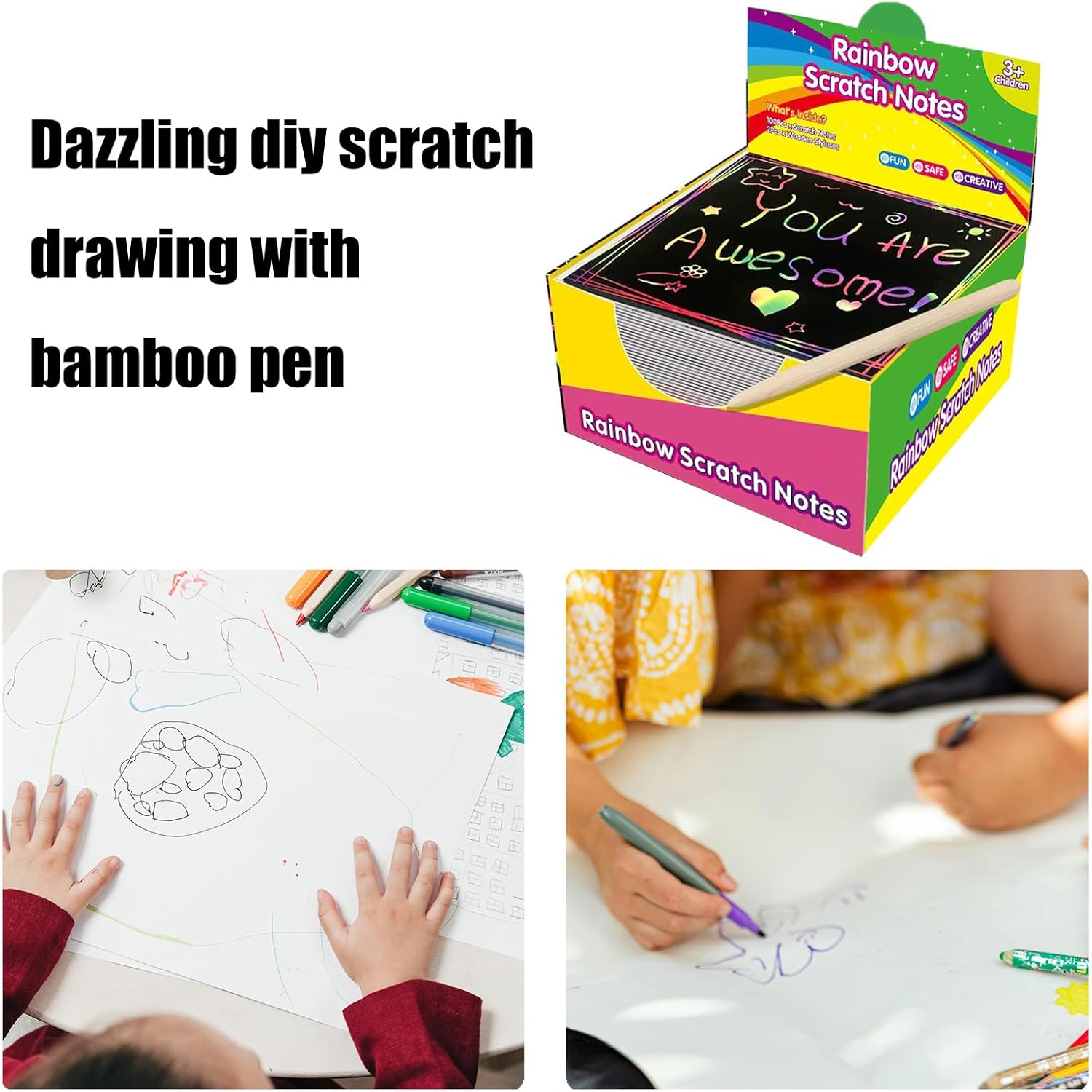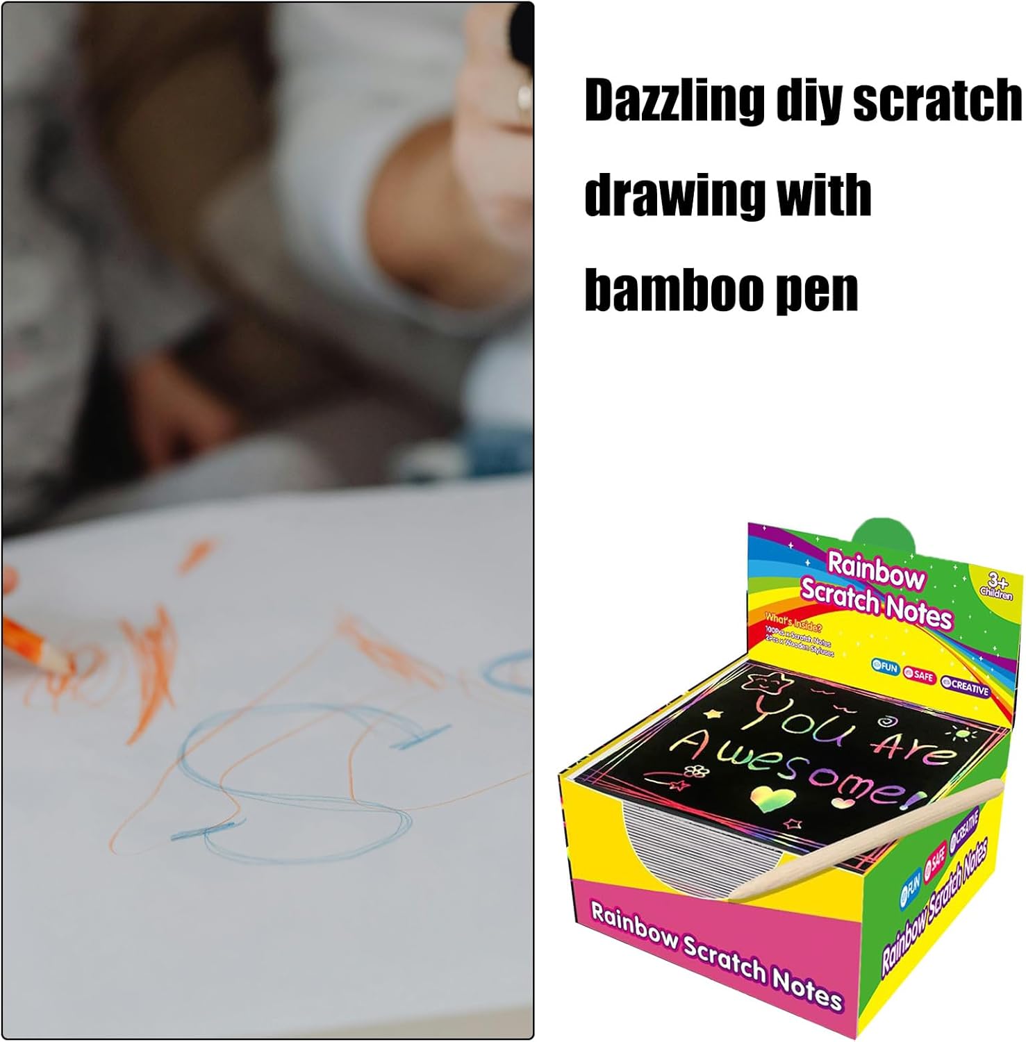 Disegnare con il nostro set di Scratch Note, con 100 fogli colorati che promettono possibilità artistiche Per progetti scolastici, lezioni d'arte o semplicemente come hobby rilassante, questa carta da grattare offre un modo unico per godersi il disegno Adatto per bambini, adolescenti e adulti che amano il disegno e l'artigianato, questa nota da grattare si rivolge ad artisti di tutti i livelli di abilità Ogni scatola include 100 pezzi di carta e penna facili da graffiare, che consentono di rivelare un arcobaleno di colore sotto per opere d'arte personalizzate Esplora l'arte e trasforma semplici schizzi in arte che attirano l'immaginazione di ogni artista in erba