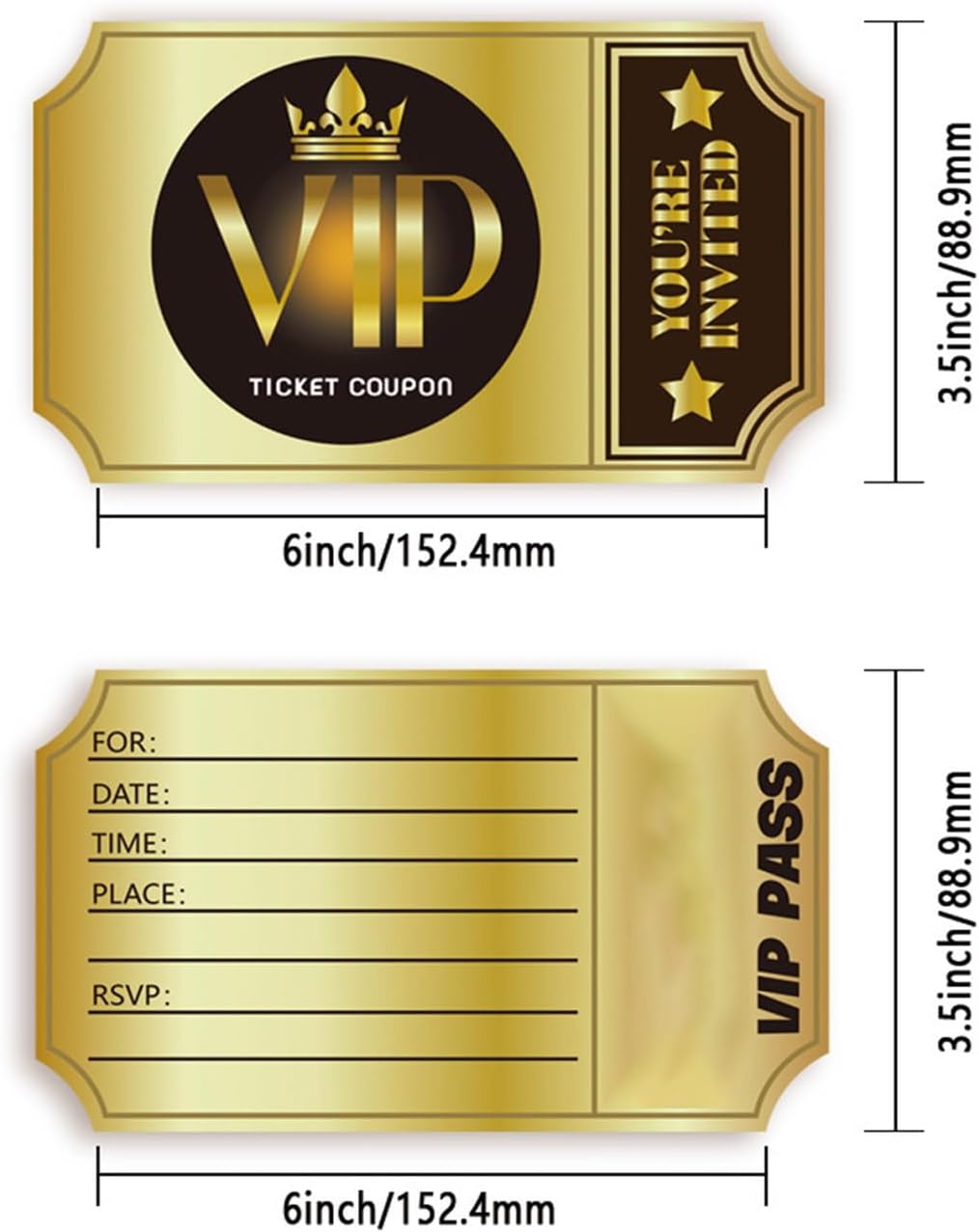 Adatto per una varietà di eventi come feste di compleanno, addii al nubilato, matrimoni, lauree, inviti a feste e feste aziendali, così puoi invitare familiari, amici e colleghi. Stupisci i tuoi amici e la tua famiglia e i tuoi ospiti si divertiranno con questi inviti unici. Accessori essenziali per qualsiasi evento indimenticabile Il nostro set di biglietti d'invito VIP contiene 100 biglietti scrivibili fronte-retro, quantità sufficiente per soddisfare le esigenze di feste e celebrazioni. Ideale per organizzatori di feste, organizzatori di eventi e ospiti di compleanni che hanno bisogno di invitare ospiti nelle loro occasioni speciali. Ogni biglietto misura 8,9 x 15,2 cm. Grandi dimensioni per bambini e adolescenti. Questi biglietti d'invito in carta sono realizzati in carta e presentano design eleganti che illumineranno qualsiasi festa di compleanno a tema.