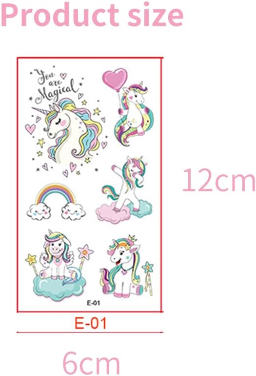 Scintillante sotto il sole - Ogni design di tatuaggio è decorato con colorati glitter per far brillare i tuoi piccoli al sole. Nota: A causa del processo di applicazione della polvere glitter, il tatuaggio stesso diventa più spesso e può staccarsi più facilmente rispetto ai normali tatuaggi. Non sfregare il tatuaggio con le mani dopo l'applicazione! Tatuaggio per bambini 100% sicuro per la pelle - Tutti i nostri tatuaggi per bambini sono realizzati con coloranti naturali ed ecologici. Abbiamo coperto la superficie dei tatuaggi per bambini con un materiale trasparente naturale puro. Assicuriamo che le paillettes del tatuaggio non si stacchino, sono completamente impermeabili e anti-sudore. I bambini possono indossarli in sicurezza in spiaggia, sotto la doccia o in piscina. Rapidi e facili da usare - Kit di Tatuaggi Glitter per Bambini: Ritaglia il disegno desiderato, stacca la pellicola protettiva trasparente, posiziona il disegno sulla posizione desiderata, bagna completamente l'adesivo del tatuaggio con acqua, premi delicatamente, attendi 10-20 secondi e stacca. Il tuo bambino può farlo da solo. Questi colorati tatuaggi per bambini possono essere rimossi facilmente strofinando con alcol, olio per bambini, olio d'oliva o sapone. Set di tatuaggi unicorno lampeggianti per bambini - Lascia che la fantasia dei tuoi bambini voli con questo set di tatuaggi temporanei impermeabili. Ogni confezione contiene 100 adesivi per tatuaggi unicorno, perfetti per feste di compleanno, regali o semplicemente per divertirsi. I tuoi piccoli si divertiranno un mondo con questi magici tatuaggi! Creati per l'avventura - Questi adesivi per tatuaggi sono adatti per ogni occasione. Sono ideali per feste, giochi, festival, vacanze e molto altro. I tuoi bambini potranno esprimere la propria personalità con stile e divertimento!