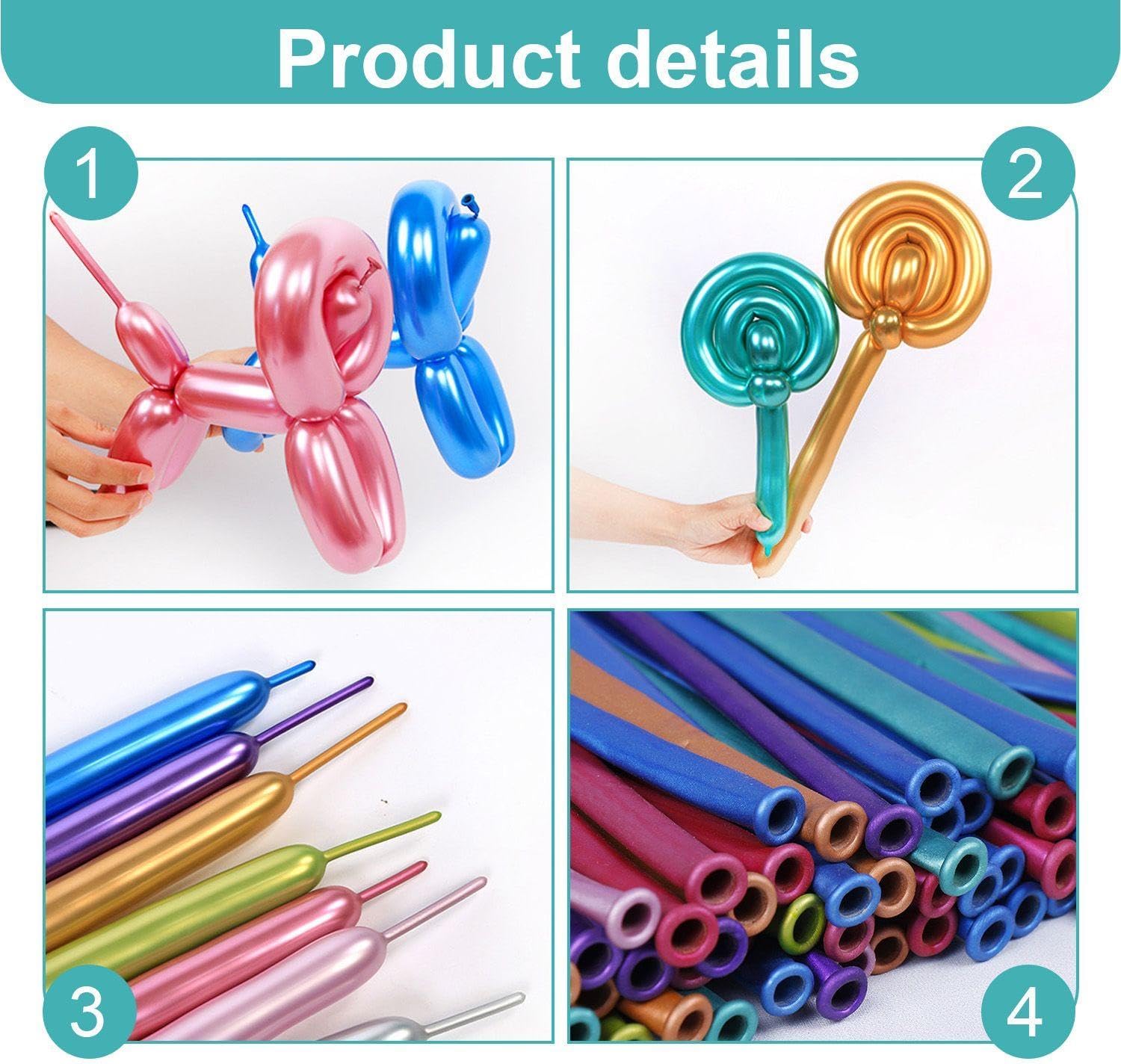 【Contenuto Del Prodotto】 Ottieni 100 Palloncini Lunghi E 2 Pompe. Il Colore Del Palloncino Lungo È Metallico, La Dimensione È Di 30 Cm Prima Di Soffiare E 100 Cm Dopo Aver Soffiato; La Dimensione Della Pompa È Di 16, 5*2, 4 Cm E Il Colore È Casuale E Adatto Per Lo Stile Fai -Da -Te E La Decorazione Delle Feste. 【Materiale Del Prodotto】 Questo Prodotto È Costituito Da Materiali Di Alta Qualità, Il Palloncino È Duro E Resistente E La Pompa Dell'Aria È Facile Da Usare. Il Design Metallico Rende Il Pallone Più Bello E Più Adatto A Vari Bisogni Creativi E Decorativi. 【Design Creativo】 Questo Prodotto È Progettato In Modo Univoco E Include Palloncini Lunghi In Colori Diversi E Una Pompa Portatile. I Palloncini Sono Adatti A Varie Forme Come Animali, Fiori, Ecc. Per Dare Divertimento E Creatività Alla Tua Festa O Agli Eventi. 【Facile Da Usare】 Questo Prodotto È Facile Da Usare. La Pompa Corroborante È Leggera E Portatile, Il Che Rende Comodo Gonfiare Il Palloncino In Qualsiasi Momento. Dopo Aver Gonfiato Il Palloncino, Può Conservare Una Lunga Benzina E Non È Facile Da Leccare Ed È Adatto A Varie Attività Interne E All'Aperto. 【Ampliato】 Questo Prodotto È Molto Adatto Per Feste Di Compleanno, Matrimoni, Celebrazioni, Festival E Altre Occasioni. Indipendentemente Dal Fatto Che Tu Decori Il Luogo Dell'Evento O Sia Un Giocattolo Per I Bambini, Il Tuo Evento Darà Gioia E Colore.