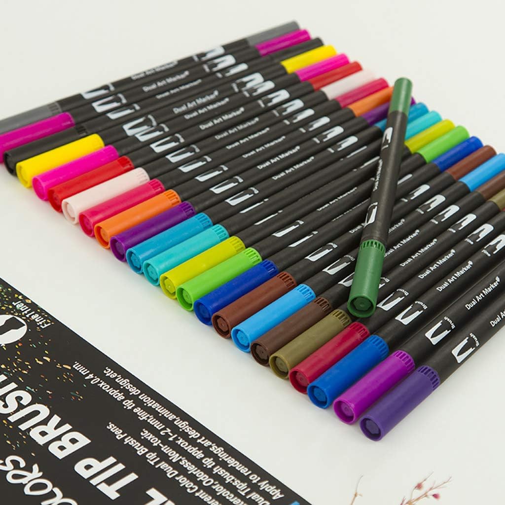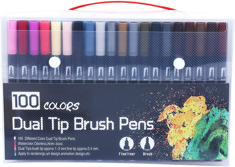 Penne a doppia punta FELSSIBILE, doppio valore 100 pennarelli artistici con punta colorata sono un set di penne a pennello con punta ultra fine per il tuo prossimo capolavoro. Punta fine da 0,4 mm e punta a pennello da 1-6 mm per linee spesse e sottili. Funziona bene senza saltare o problemi 100 splendidi colori e lunga durata Dimentica la ricerca tra le forniture artistiche cercando di trovare il set di penne a pennello per le tue creazioni artistiche. Questo set completo di pennarelli artistici con penna a pennello viene fornito con 100 opzioni di colori unici e vivaci tra cui scegliere. Ideale per libri da colorare per adulti, disegni, colorare, schizzi, scarabocchi e qualsiasi altra cosa Asciugatura rapida: inchiostri a base d'acqua, inodore e senza acidi. i colori possono essere dispersi e mescolati con acqua. Non c'è bisogno di preoccuparsi di macchie e macchie. Per adulti, insegnanti, studenti universitari, principianti e per l'utilizzo a scuola e in viaggio