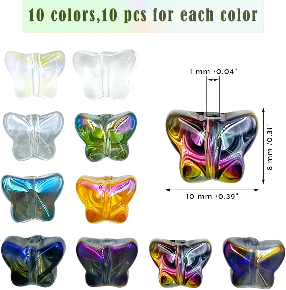 Colori vivaci: goditi un set di 100 perline colorate in vetro a forma di farfalla che aggiungono un tocco vivace ai tuoi gioielli e progetti artigianali. Uso versatile: perfette per realizzare bracciali, collane e vari mestieri, queste perline sono sia per uso personale che per regali. Realizzazione facile: ogni perlina è accuratamente progettata per facilitare la tessitura e l'infilatura, migliorando la tua esperienza di artigianato. Qualità di cui ti puoi fidare: realizzate in vetro di alta qualità, queste perline sono resistenti e splendidamente realizzate, garantendo una bellezza duratura in tutti i progetti. Ottima idea regalo: sorprendi i tuoi cari con un regalo unico che offre divertimento e creatività; ideale per hobbisti, artigiani e famiglie.
