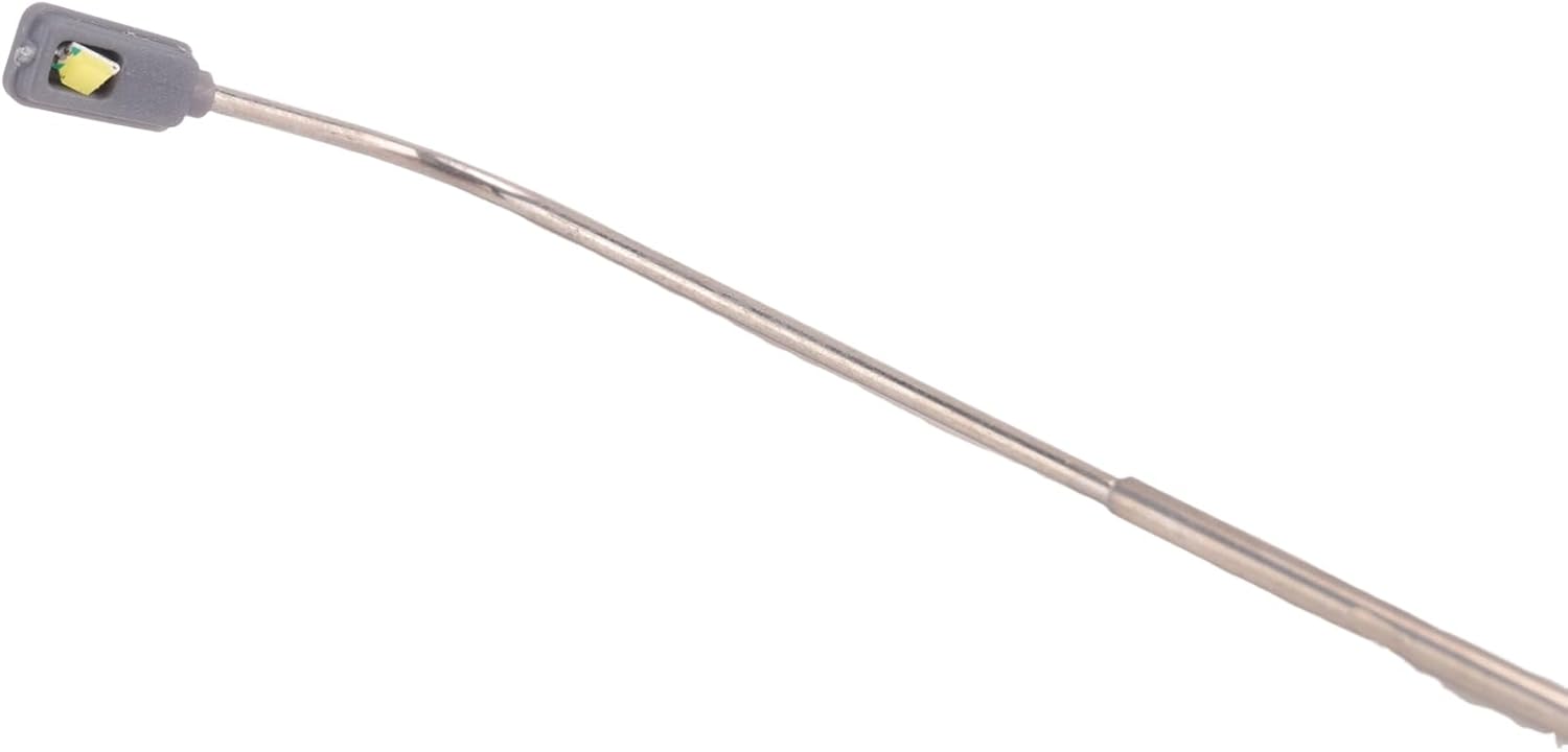 Queste delicate lanterne di strada modello sono utilizzate principalmente nell'insegnamento, nella fotografia e in vari tipi di modelli scenici. Utilizzato principalmente per decorare il layout del modello. Ognuno di essi è dotato di fili e ha una singola testa, che può accendersi con un alimentatore da 3 V. Una confezione di 5 lampioni a LED. Illumina il tuo modello di piano con questo grande LED!