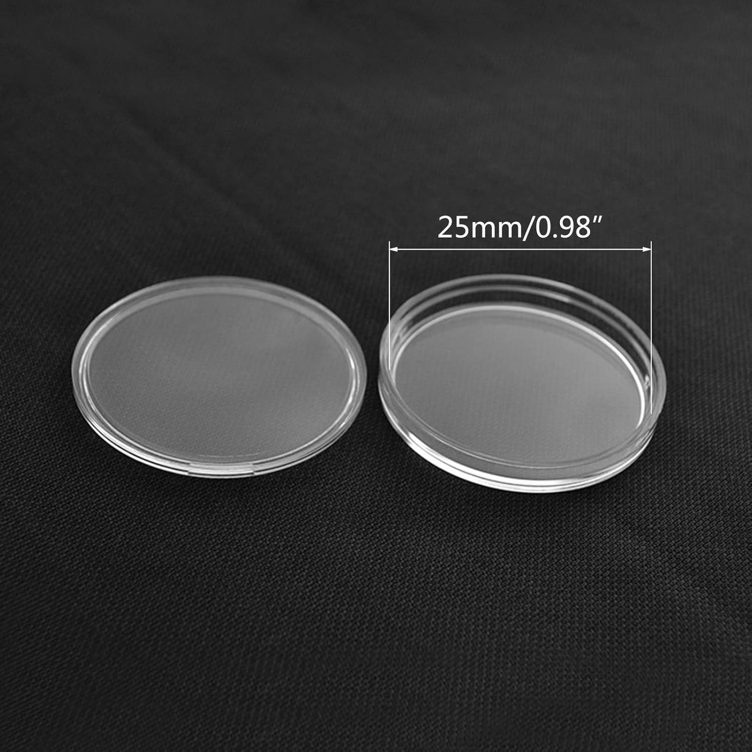 Facile da aprire, buona tenuta, non facile da cadere. Questo ti terrà sicuro e protetto Un esperto o amante della grande collezione La dimensione di ogni scatola di monete è di 25 mm. Si prega di notare che non si possono mettere calze dollari e dollari La confezione include una scatola di monete rotonda da 25 mm e 1 scatola di immagazzinaggio trasparente per conservazione, protezione e visualizzazione Sottile trasparenza, può vedere l'interno e proteggere efficacemente l'ossidazione