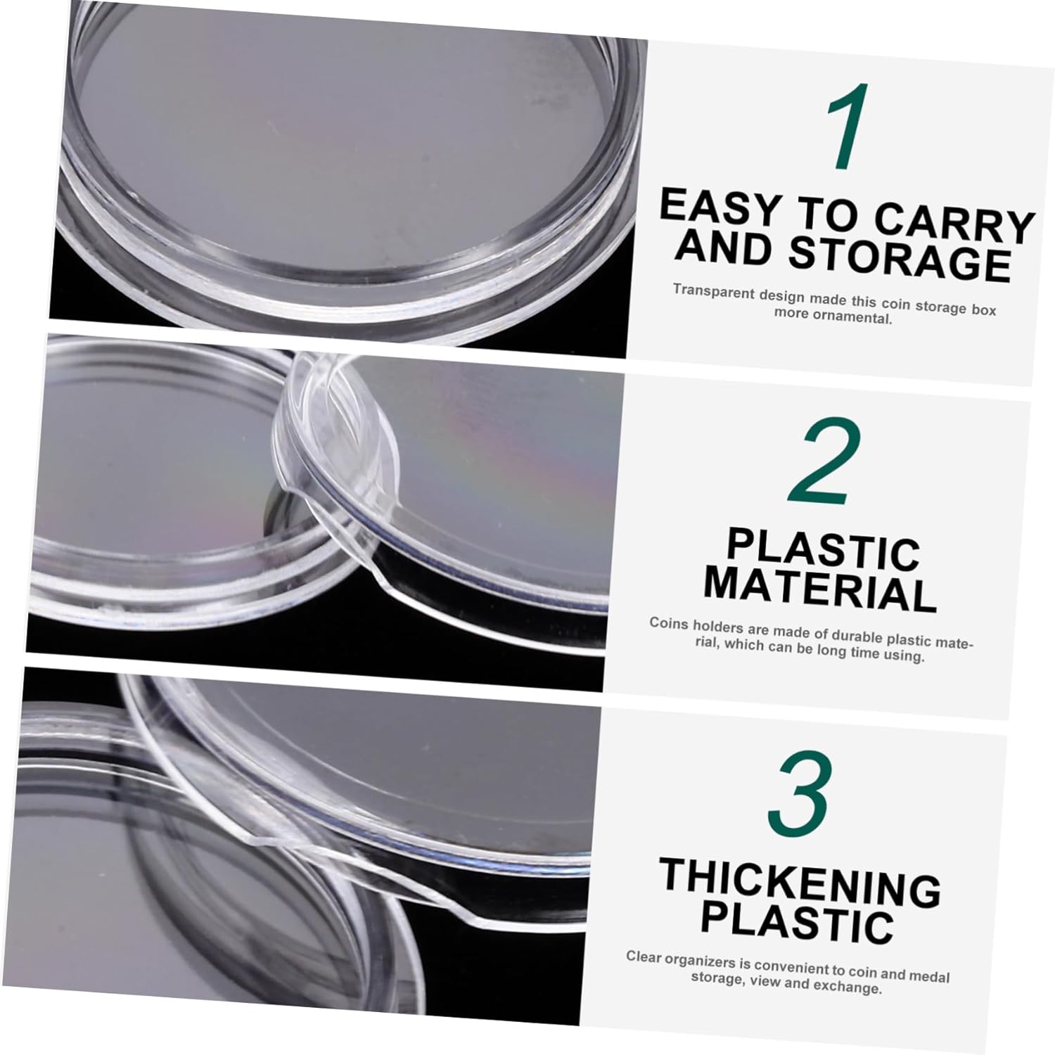 Monete : gli organizzatori trasparenti sono comodi per conservare, visualizzare e scambiare monete e medaglie, per monete Protezione per monete: con aspetto , non solo protegge le tue monete, ma è buona decorazione , capsula per monete Portamonete: il design è un buon per esporre le tue monete, molto e comodo, monete Accessorio per monete: realizzato in materiali plastici di qualità e addensanti, resistente all'ossidazione, comodo monete Capsula per monete: è facile e chiaro esporre la tua collezione di monete e monete da collezione, protezione per monete