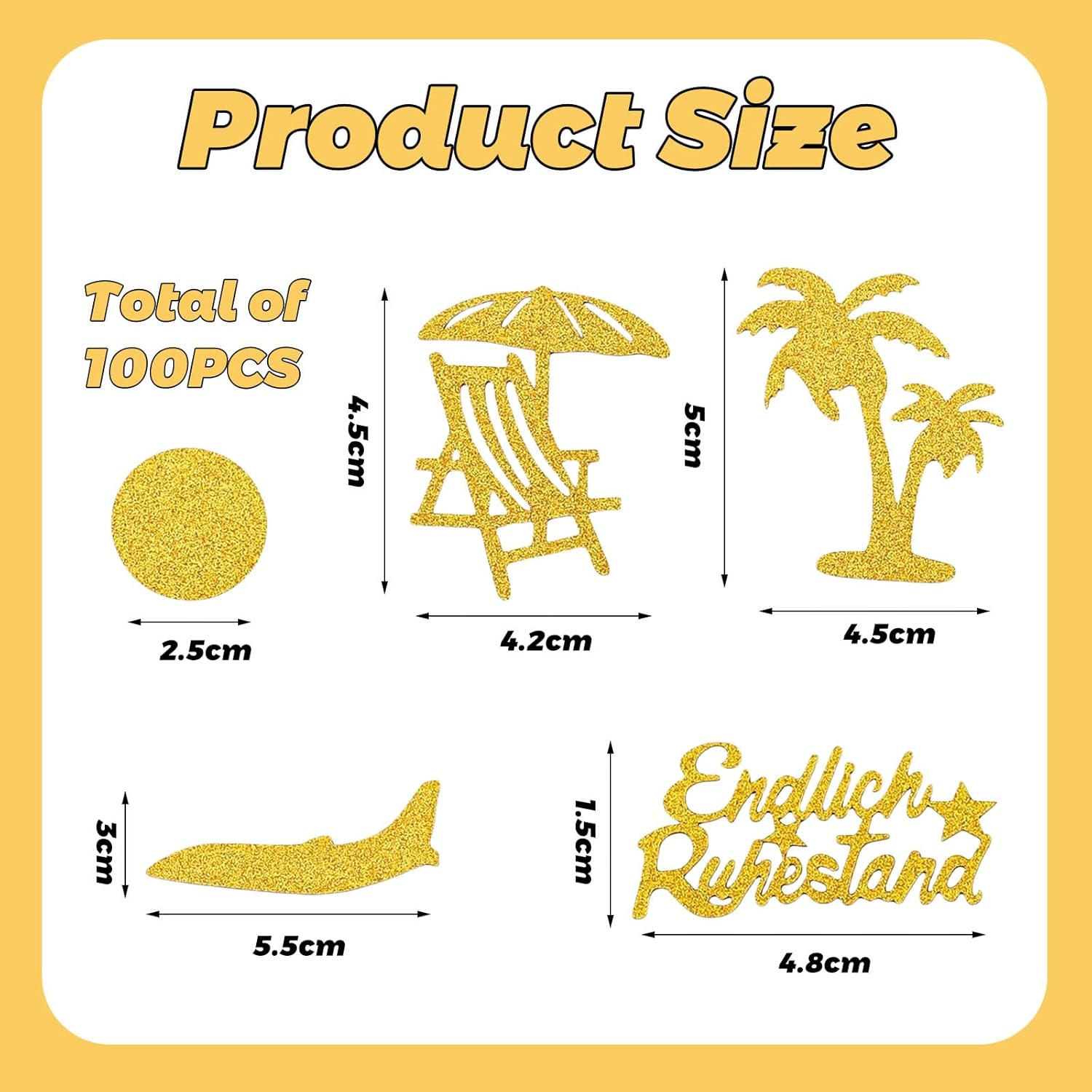 Elenco degli imballaggi per le decorazioni della tavola per la pensione: riceverai circa 100 pezzi di coriandoli decorativi per la pensione. Include sedia a dondolo, coriandoli rotondi, lettere d'addio, albero di cocco e altri elementi classici e semplici. Decorazione glitterata con coriandoli d'addio: la nostra decorazione per tavolo da pensionato è realizzata in cartone fronte-retro di alta qualità. È ecologico, robusto, resistente agli strappi e brilla alla luce. Mette in risalto il tema della tua festa e rende la tua festa accattivante. Perfetto per riempire scatole regalo e bottiglie trasparenti, nonché per decorare torte, dessert o tavoli. Grandi coriandoli per la pensione: la nostra grande decorazione di coriandoli per la festa della pensione misura circa 2,5 cm - 5,5 cm di lunghezza e 1,5 cm - 5 cm di larghezza. Anche sul tavolo, sul pavimento, sul letto, sulla tovaglia o gettato in aria, non scompare e attira davvero l'attenzione. I nostri coriandoli per la pensione sono anche facili da pulire, raccogliere e riutilizzare. DECORAZIONE RIUTILIZZABILE: I nostri coriandoli d'addio per la pensione sono realizzati con una combinazione di elementi dorati classici e semplici per ragazzi, ragazze, uomini e donne. Puoi usarli non solo come decorazioni per la tavola di una festa di pensionamento, decorazioni per l'ufficio, oggetti di scena per feste, oggetti di scena per foto, ma anche riutilizzarli per matrimoni, battesimi, Natale, Capodanno e altre celebrazioni. Servizio clienti Muorruo: sosteniamo i nostri prodotti e offriamo un servizio clienti 24 ore su 24. Se hai domande, non esitare a contattarci e ti forniremo una soluzione soddisfacente
