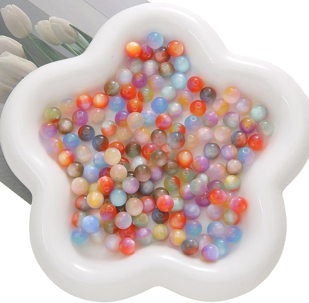 Perline colorate rotonde a forma di occhio di gatto, dimensioni: 8 mm, diametro del foro: circa 1 mm, 100 pezzi/confezione, numero sufficiente di perline per soddisfare le tue varie esigenze di perline fai da te Queste perle colorate a forma di occhio di gatto sono realizzate in resina con superficie liscia, leggere, comode al tatto, non sbiadiscono facilmente e possono essere utilizzate a lungo Le perle in resina occhio di gatto sono ricche di colori, tra cui rosso, blu, verde, viola, rosa e altri colori, con superficie opaca o liscia e lucida, rendendo i tuoi lavori con perline più affascinanti e unici Queste perline rotonde colorate a forma di occhio di gatto sono molto adatte per tutti i tipi di creazione di gioielli, braccialetti, collane, orecchini, artigianato fai da te fatto a mano, accessori per la decorazione di abbigliamento e borse Queste perle in resina a forma di occhio di gatto hanno fori per un facile utilizzo e possono essere combinate con altre perle distanziatrici, perle di vetro, perle o pendenti per arricchire il tuo design di perline