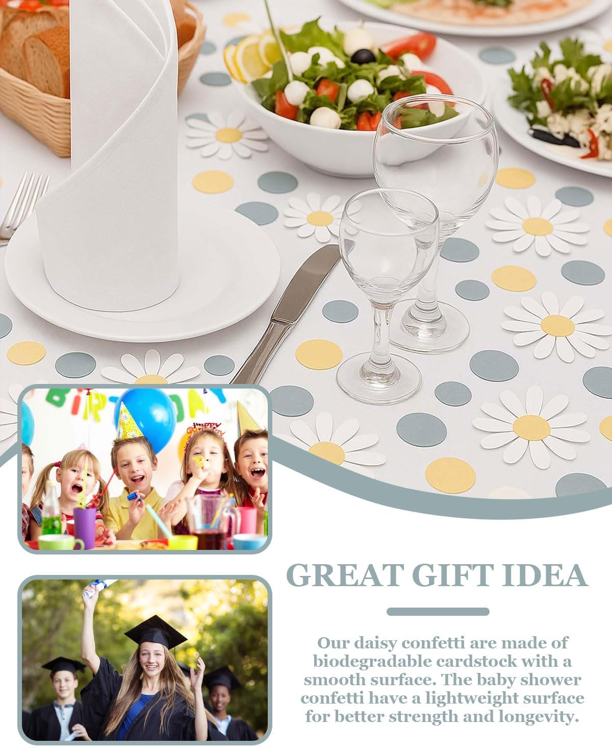 Cosa riceverai: Acquistando il nostro set di 100 pezzi di festoni con coriandoli a forma di margherita, riceverai una confezione completa di coriandoli floreali perfetti per decorare la tua festa con stile e allegria. Materiale di alta qualità: I coriandoli sono realizzati con carta di alta qualità, resistente e leggera, che garantisce una decorazione elegante e duratura. Design e caratteristiche: Ogni coriandolo ha una forma di margherita ben definita e un colore vivace, ideali per creare un’atmosfera festosa e colorata. Facili da distribuire e posizionare, sono perfetti per ogni tipo di decorazione. Ideale per: Ottimi per decorare torte, tavoli e ambienti per compleanni, lauree e altre celebrazioni. Adatti a tutti, dai bambini agli adulti, aggiungono un tocco floreale e festivo a qualsiasi evento. Grazie per il tuo acquisto: Ti ringraziamo sinceramente per aver scelto i nostri coriandoli a forma di margherita! Siamo entusiasti di offrire un prodotto che renderà le tue celebrazioni ancora più speciali e siamo sempre disponibili per qualsiasi ulteriore assistenza.