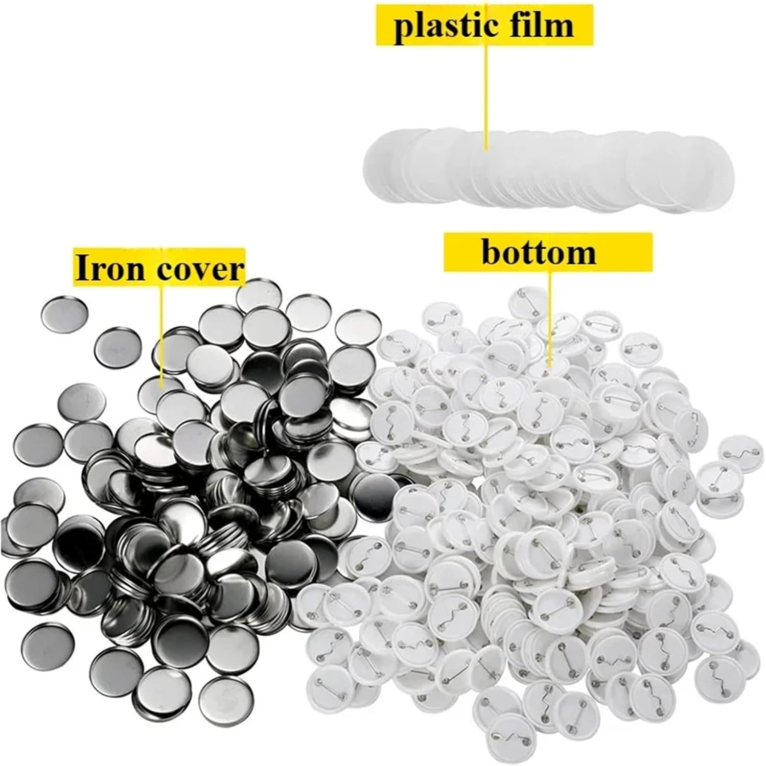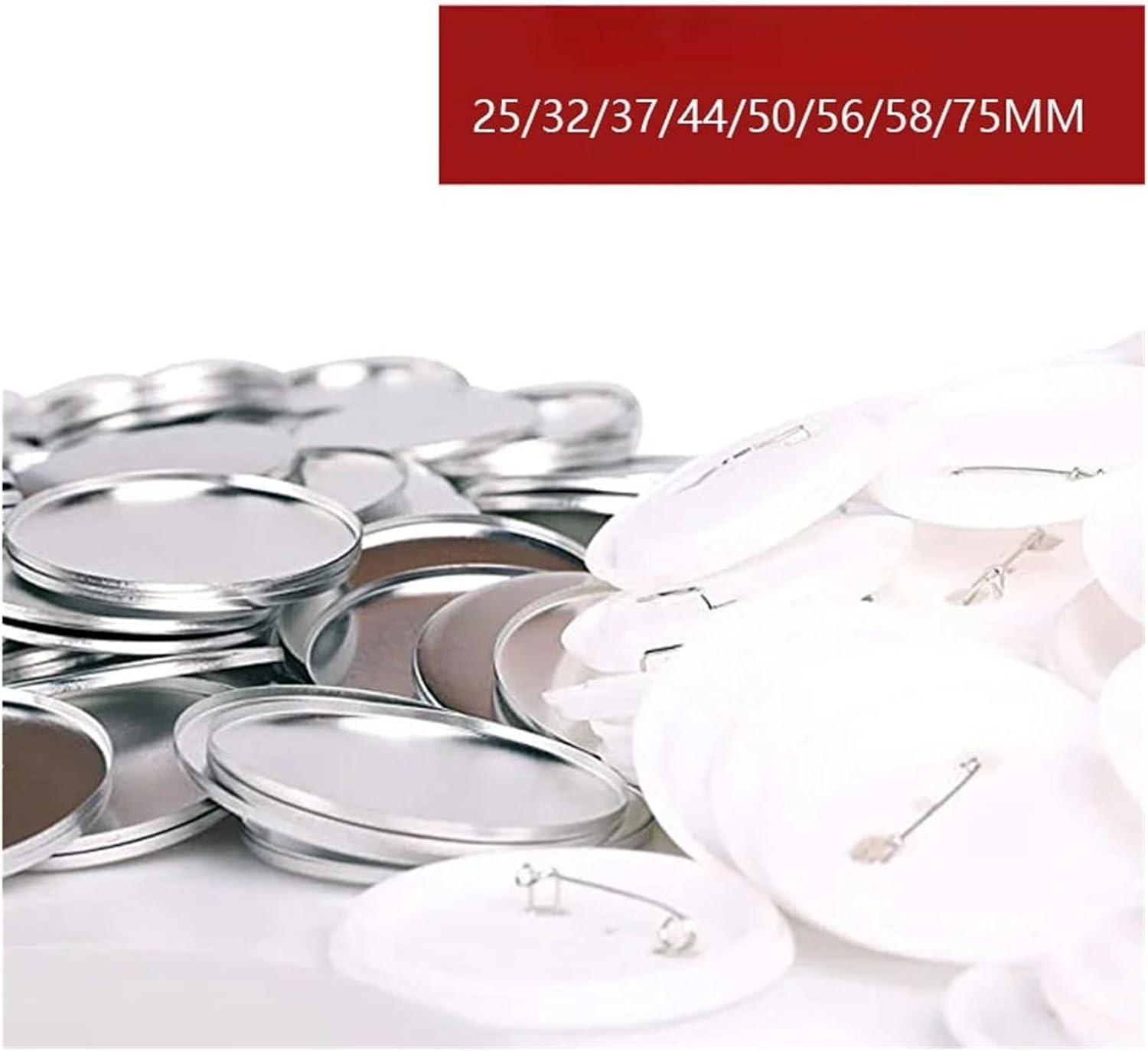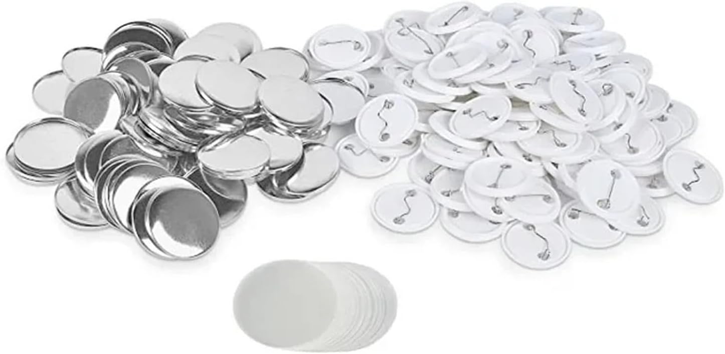 1. Realizzato in banda stagnata, leggero 2. Superficie liscia, struttura fine 3. Dorso con perni inseriti 4. 20 set totali di materiali per la creazione di badge, possono essere utilizzati a lungo termine 5. Le parti del badge da 25-75 mm funzionano con la macchina per badge