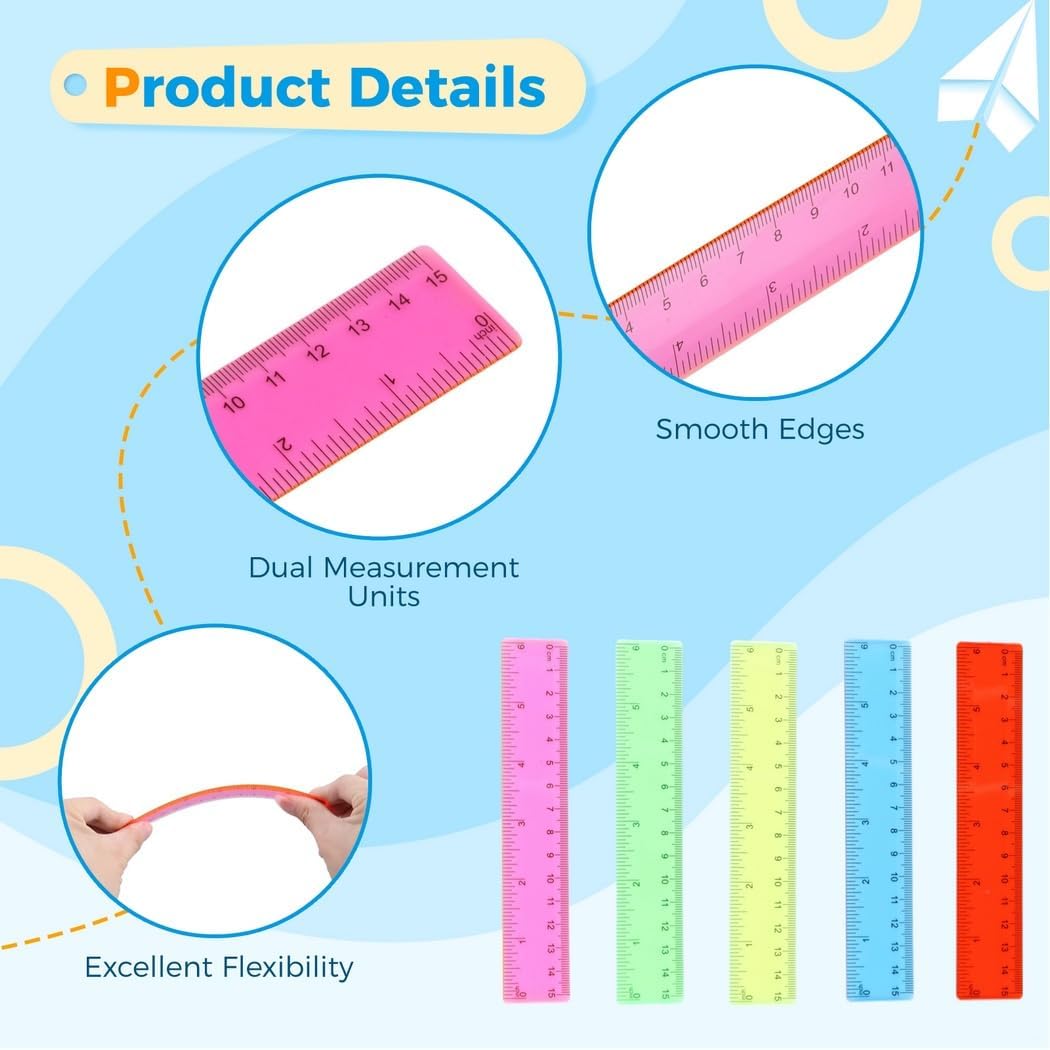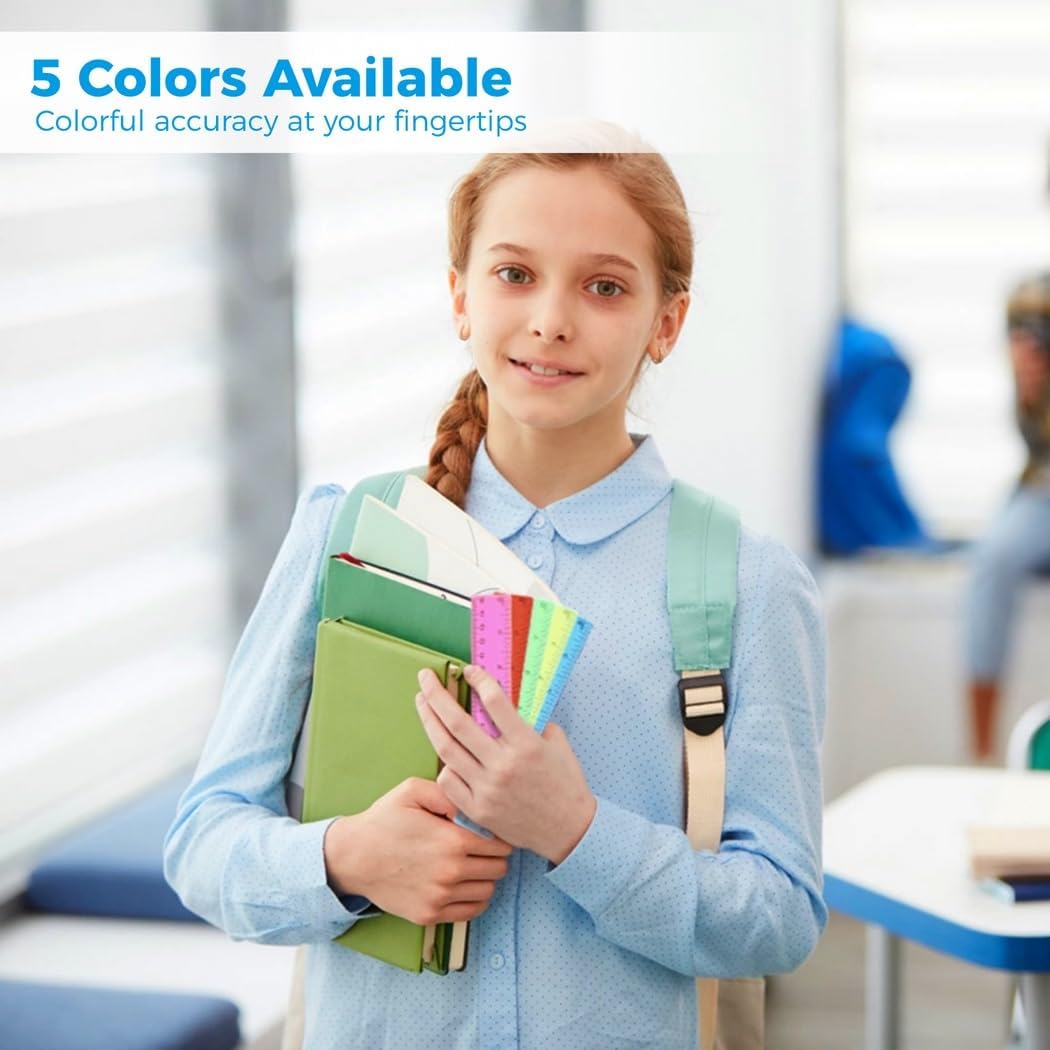 Varietà colorata: include 100 righelli in rosso, verde, rosa, giallo e blu; ogni colore è disponibile in un set di 20; per aule e uso condiviso Visibilità chiara: il materiale trasparente consente di vedere chiaramente attraverso il righello per la misurazione Doppia unità: dispone di misure in pollici e centimetri; bordi arrotondati per un uso sicuro e regolare Qualità durevole: struttura in plastica resistente e flessibile che resiste alla rottura o allo sbiadimento; si piega senza danni Applicazione versatile: ideale per insegnanti, studenti, architetti e ingegneri; per scuola, ufficio o uso domestico