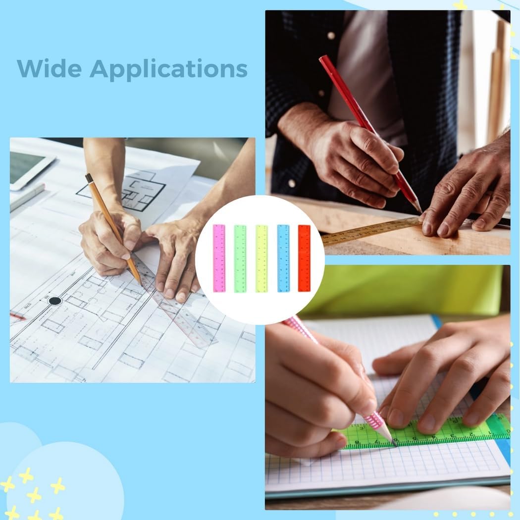 Ogni esigenza, confezione assortita: scopri l'abbondanza grazie alla nostra confezione di cento righelli in plastica da 15,2 cm; include colori di rosso vivace, rosa, verde, blu e giallo; ne dispone di venti ciascuno; soddisfare la sostituzione, le esigenze quotidiane e condividere i desideri Numeri facilmente visibili: utilizza la chiarezza grazie ai nostri righelli trasparenti in plastica, permettendoti di leggere numeri e lettere senza sforzo; misurare gli oggetti e poi disegnare linee con precisione grazie al design migliorato Doppia comodità, doppia unità: con scale centimetriche e scale di pollici, abbraccia la comodità grazie ai nostri piccoli righelli in plastica; durante l'applicazione, affidati al design arrotondato di entrambe le estremità che garantisce sicurezza Servizio duraturo, costruzione solida: con i nostri righelli per bambini in materiali plastici, investi nella qualità; evitare deformazioni, rotture o sbiadimento è la struttura; l'applicazione a lungo termine è garantita dalla flessibilità di piegatura, senza sacrificare la costruzione Per tutti, strumento versatile: pratica di misurazione grazie a questi righelli trasparenti in plastica ideali per insegnanti, studenti, designer, ingegneri o architetti; questi strumenti ampiamente si applicano in aule scolastiche, uffici o case, sono strumenti di misurazione nella pratica di cui hai bisogno