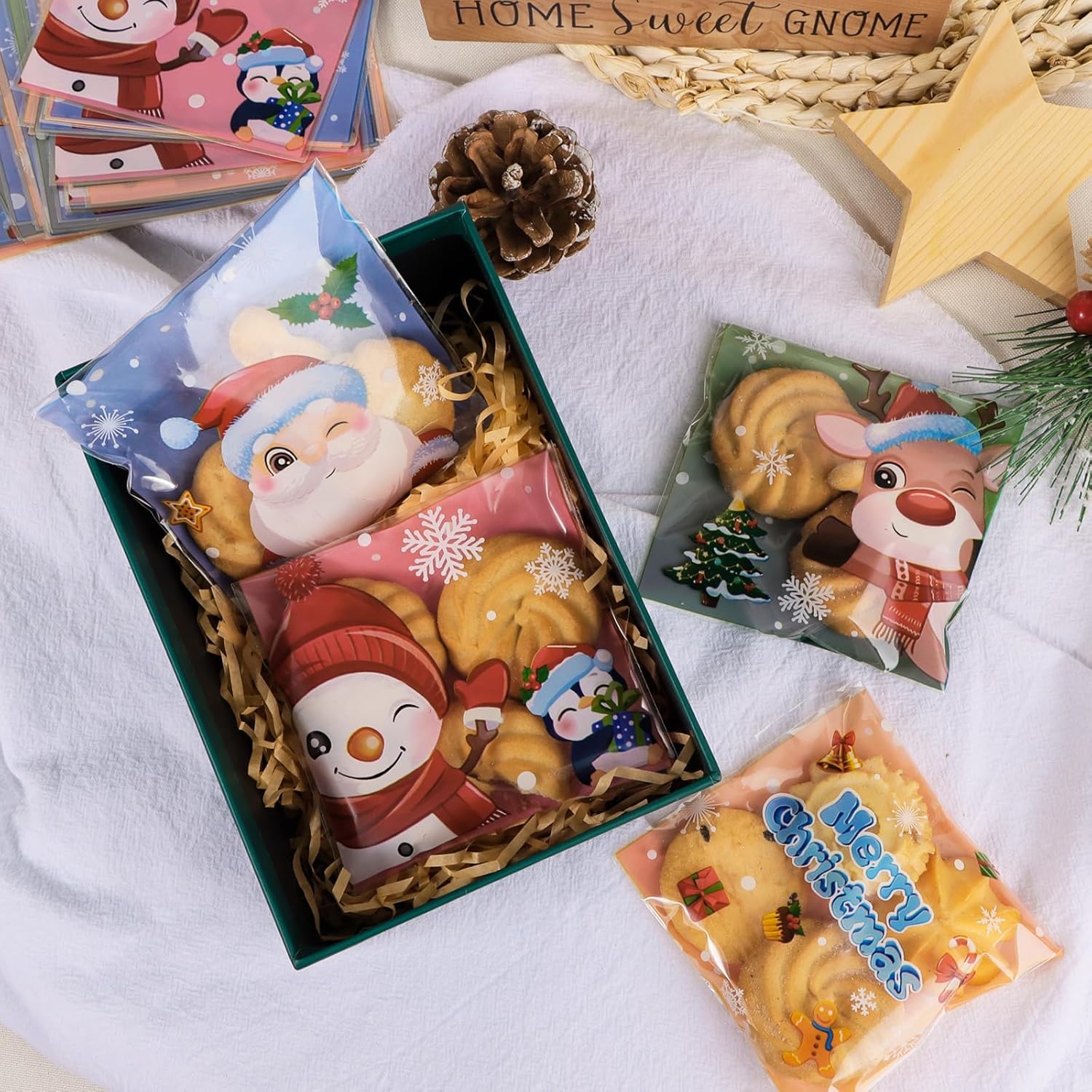 🍬 Il pacchetto include: sacchetti natalizi autoadesivi da 100 pezzi 🎁 Materiale: plastica autoadesiva, resistente e confortevole 🍬 Design per Natale: con disegni di Babbo Natale, pupazzi di neve e molti altri, questi graziosi sacchetti saranno molto apprezzati dai bambini durante il periodo natalizio! 🎁 Dimensioni: 10x11 cm, la larghezza del sigillo è 3 cm. I nostri sacchetti piccoli sono sicuri per regali, pane, riso soffiato, waffle gelato, barrette di cioccolato, caramelle, caramelle, cioccolatini, piccoli regali, ecc. 🍬 Utilizzo: perfetti per piccoli regali per gli ospiti a Natale, ma anche per compleanni, baby shower o qualsiasi altra festa a tema invernale. Adatto anche per piccoli regali come: caramelle, biscotti, dolcetti, piccoli giocattoli, ecc.
