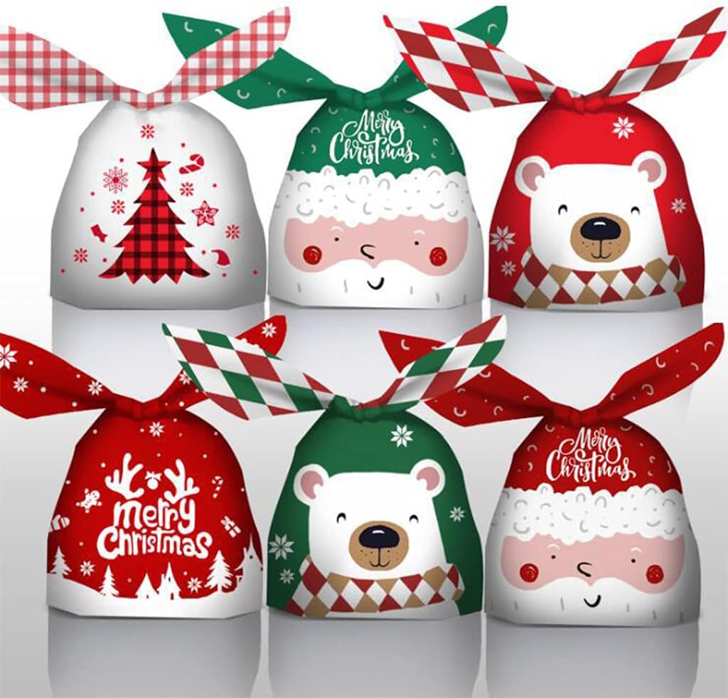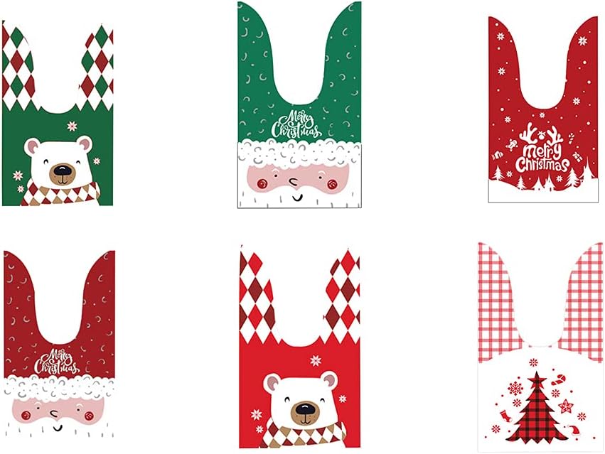 1 set contiene 100 sacchetti I sacchetti possono essere ampiamente utilizzati per contenere caramelle, giocattoli e giochi divertenti Materiali facili da trasportare Fantasie interessanti e colori classici aumentano l'atmosfera festosa del Natale Questa borsa è riutilizzabile, è adatta a tutte le età