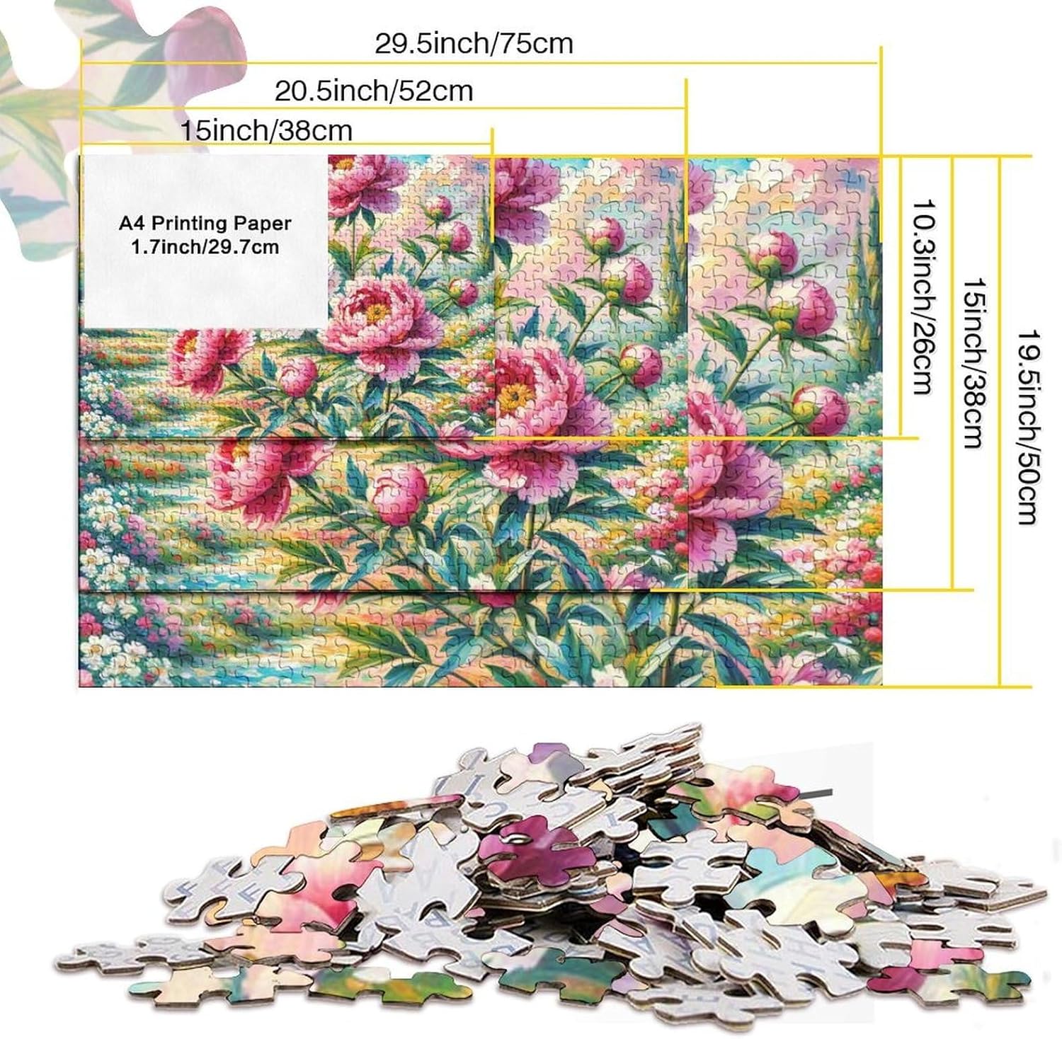 🌸GIOCHI PER ADULTI: una sfida emozionante da regalare a tutti li appassionati di puzzle e amanti dell'arte, ideale per uomo, donna o ragazzi; i puzzle aiutano a esercitare la memoria, migliorano la concentrazione e stimolano l'intuizione 🌸QUALITÀ PREMIUM: il massimo del divertimento con prodotti di altissima qualità in termini di materiali, motivi e design; realizzati in legno tagliati con fustelle fatte a mano, per un risultato impeccabile 🌸Buon regalo: il flower puzzle finito misura 38x26cm/1000pcs una volta completato. I migliori regali per ragazzi e ragazze dai 14 anni in su per compleanni o festività (Natale, Halloween, Ringraziamento, ecc.) 🌸Concediti una piacevole pausa relax! La nostra linea di puzzle da Peony 1000 pezzi è il regalo perfetto per chi ama ritagliarsi un momento di svago e di relax mettendo alla prova le proprie abilità logiche e di concentrazione 🌸I nostri Puzzle ti offrono un'ampia scelta d'immagini capace di soddisfare i gusti di tutti: grazie alla qualità dei materiali riciclati, la robustezza e resistenza dei singoli pezzi insieme alla brillantezza dei colori, ti garantiamo un risultato impeccabile e privo di riflessi