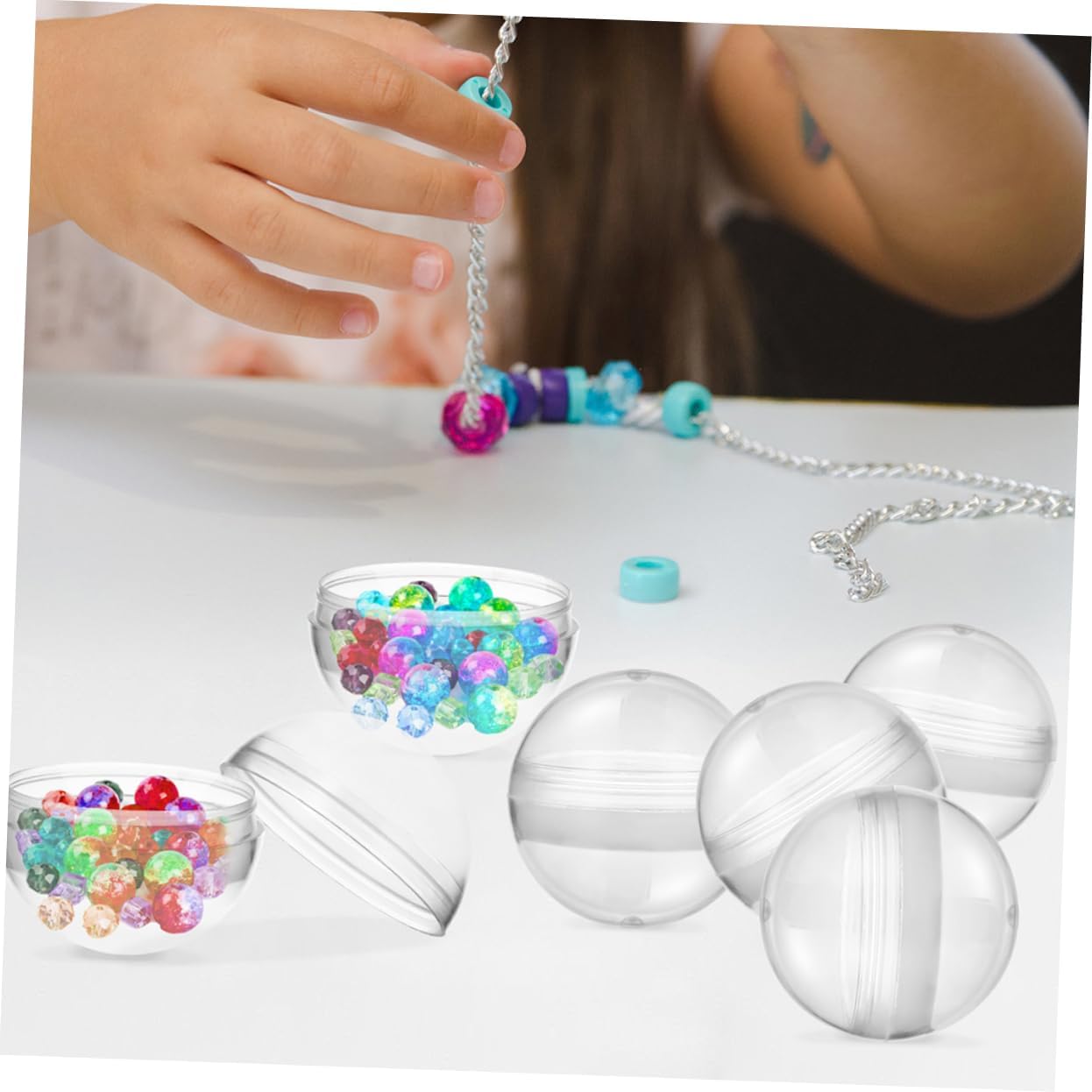 Materiale trasparente: mostra i tuoi oggetti da collezione con il design chiaro di queste capsule rotonde, rendendo i display della tua macchina per caramelle gommose più accattivanti Design di archiviazione compatto: conserva e proteggi in modo efficiente capsule e perline giocattolo, rendendoli facili da trasportare e organizzare Durata riutilizzabile: realizzate con materiali durevoli, queste capsule possono essere utilizzate ripetutamente, garantendo un'utilità duratura Uso versatile: oltre alle macchinette per caramelle gommose, queste capsule servono per esporre piccoli giocattoli, perline e altri ninnoli, offrendo molteplici usi Funzionamento semplice: progettate per la semplicità, queste capsule sono facili da usare, rendendole adatte a utenti di tutte le età senza passaggi complicati